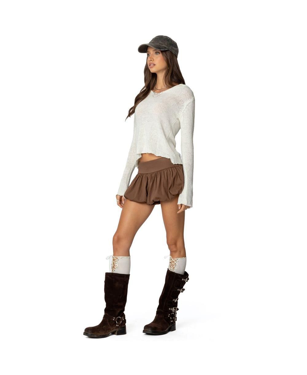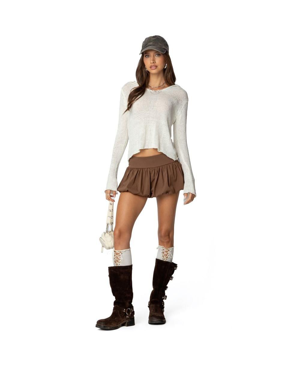 Edikted Womens Mai Hooded V Neck Sweater