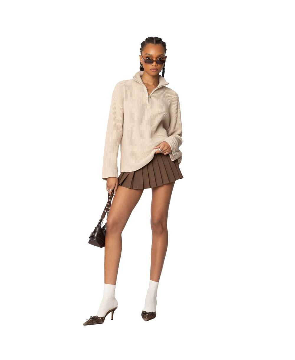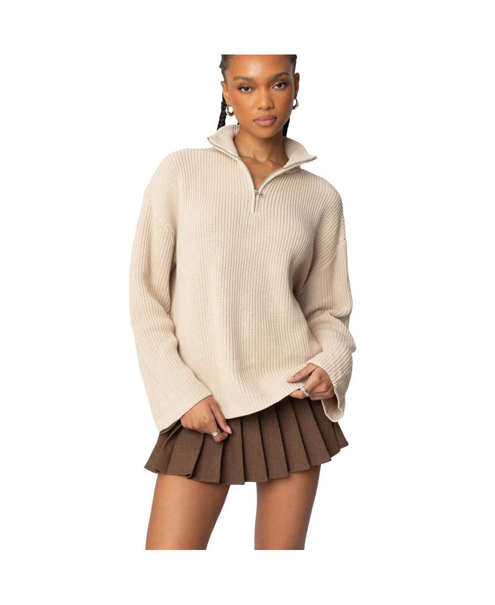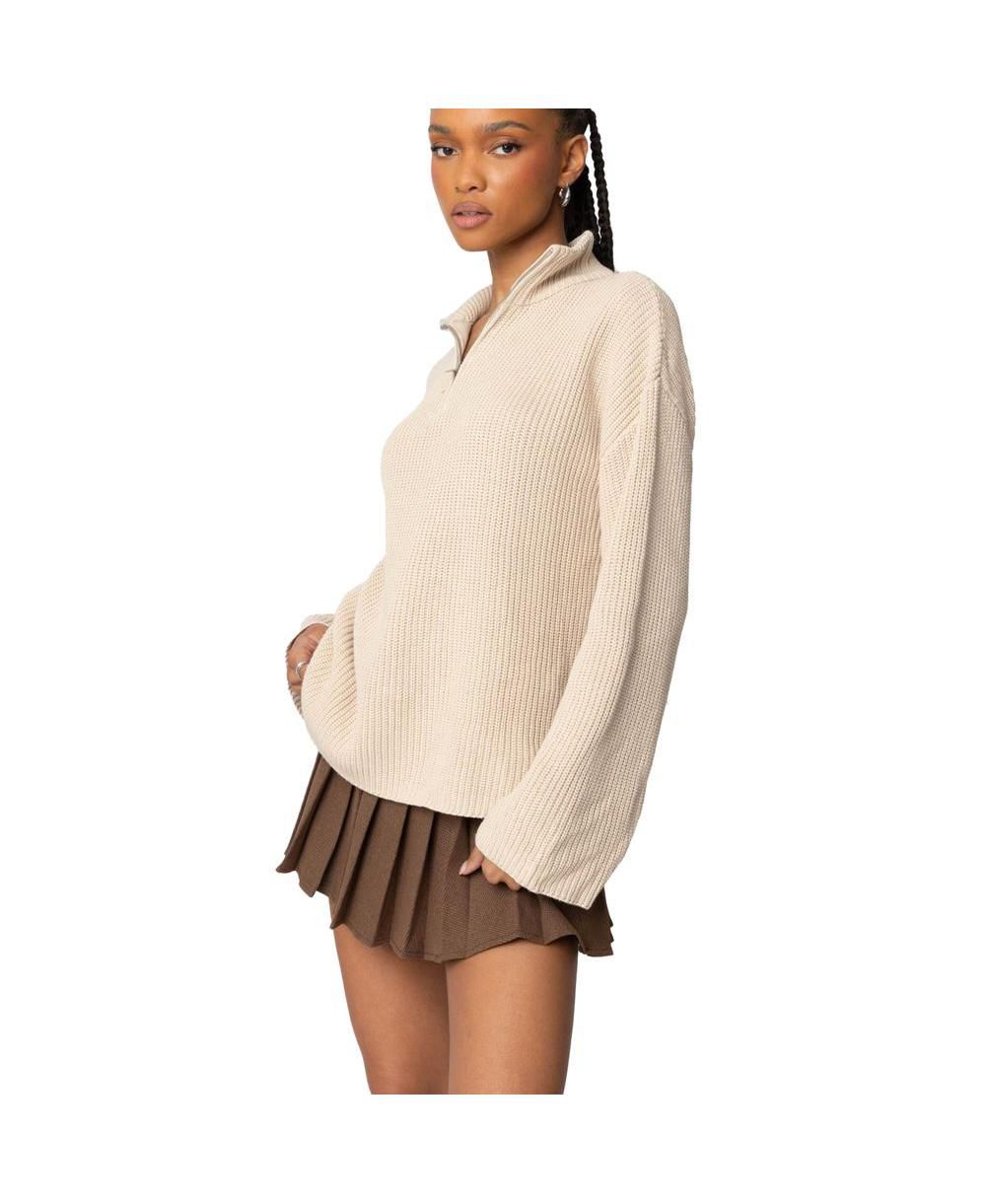 Edikted Womens Oversized Quarter Zip High Neck Rib Sweater