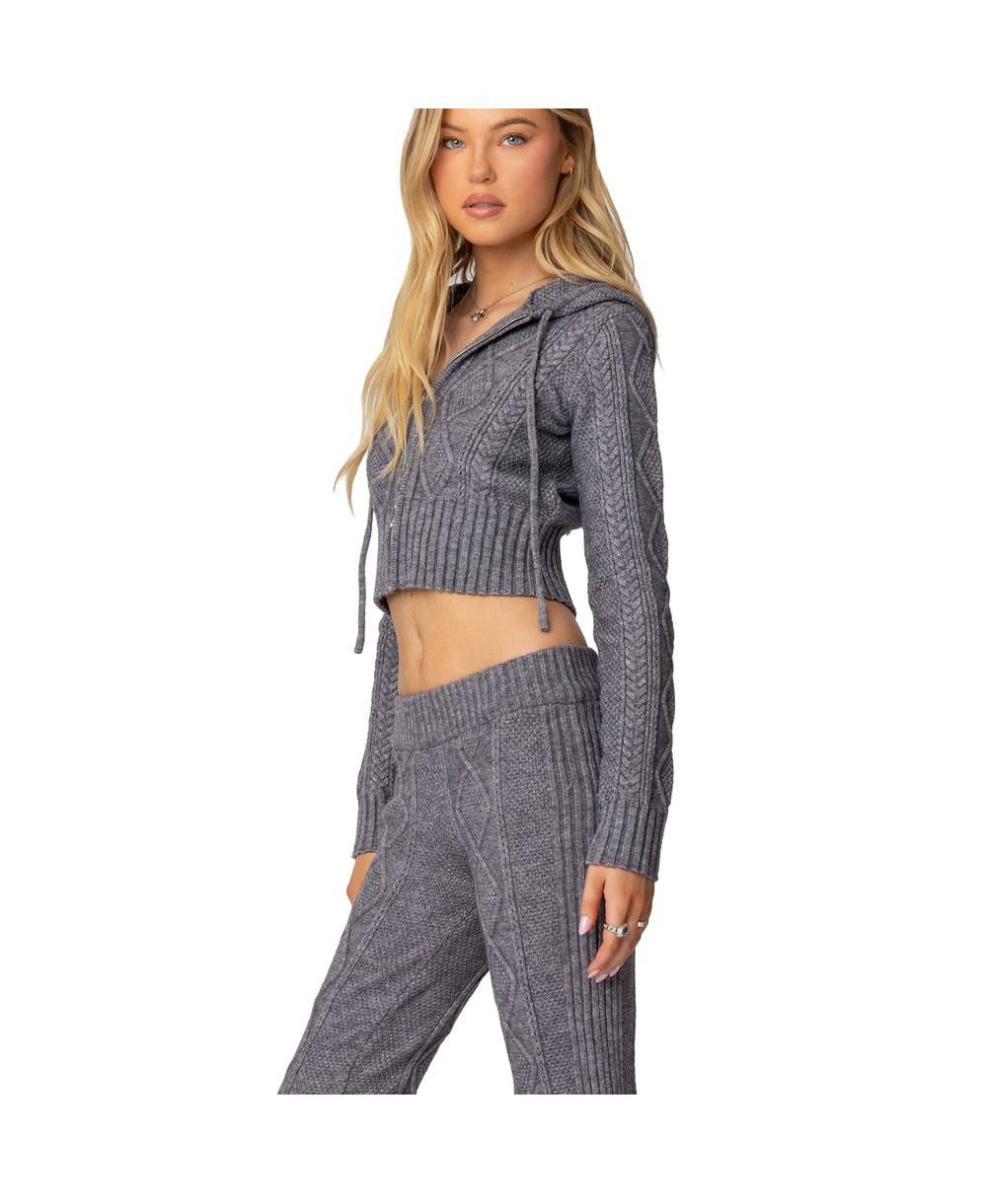 Edikted Womens Ray Cable Knit Hooded Cardigan