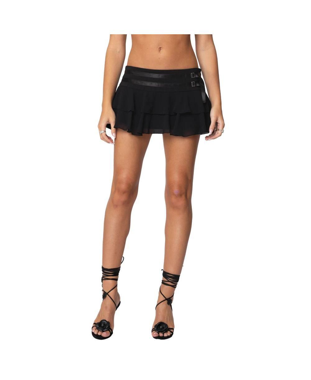 Edikted Womens Double Belt Ruffled Chiffon Mini Skort