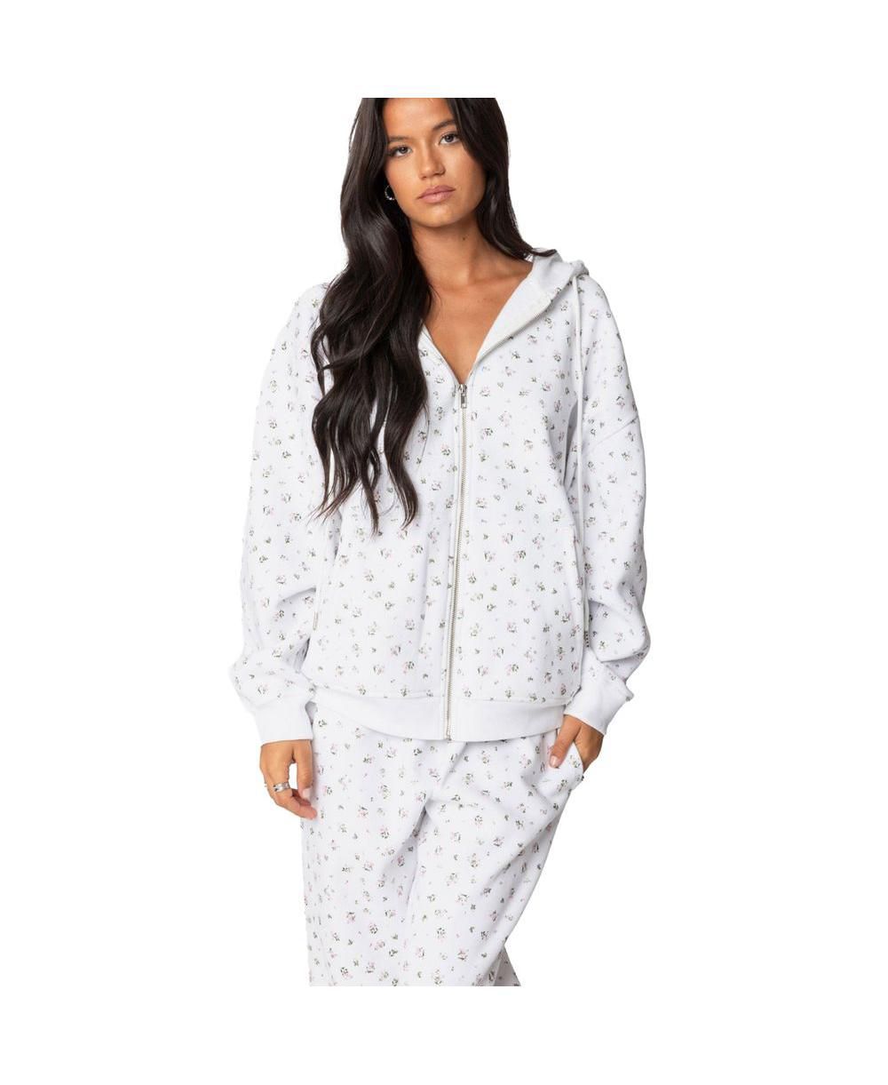 Edikted Womens Bouquet Oversized Zip Up Hoodie