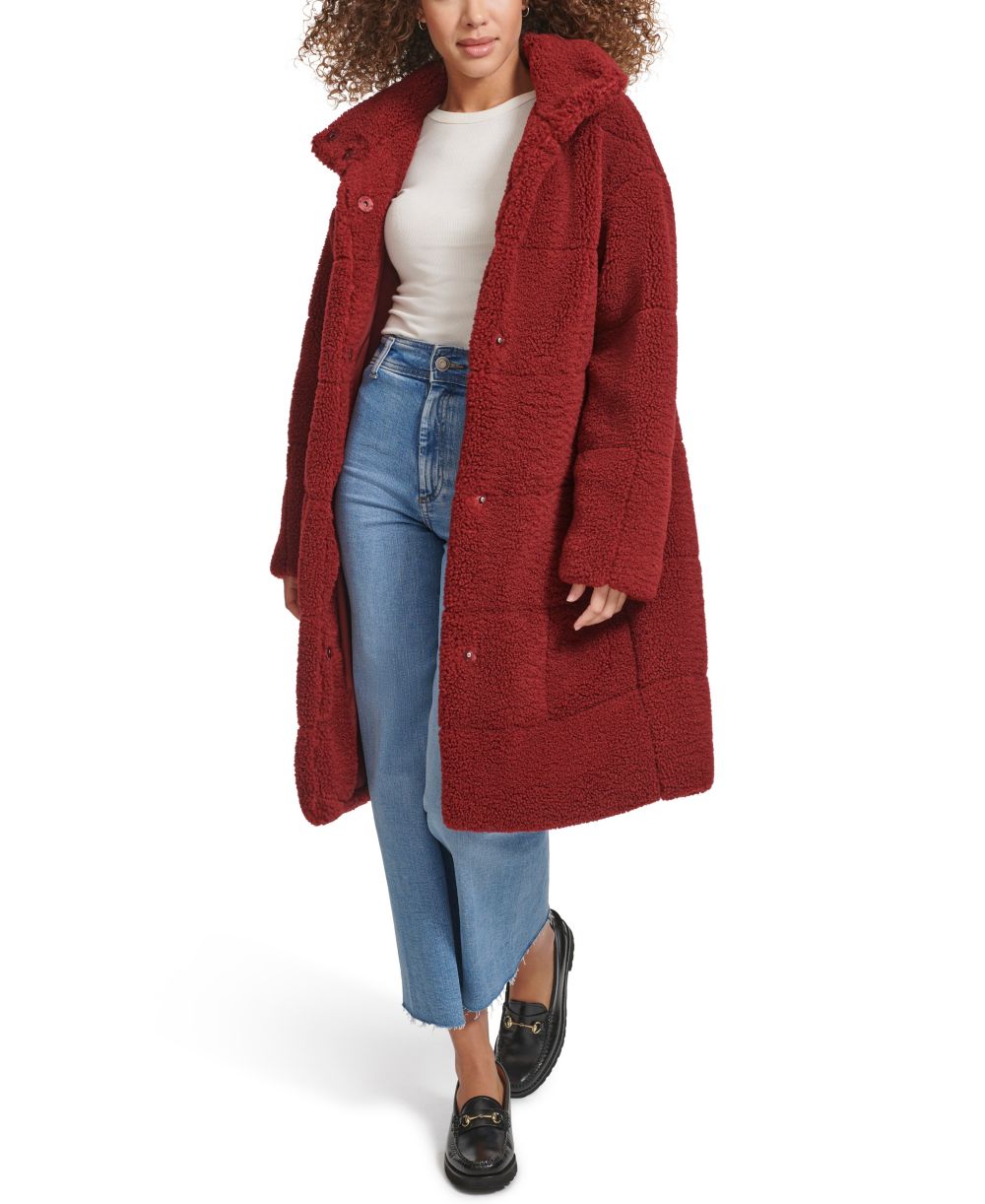 Levis Womens Long Sherpa Snap Closure Teddy Coat