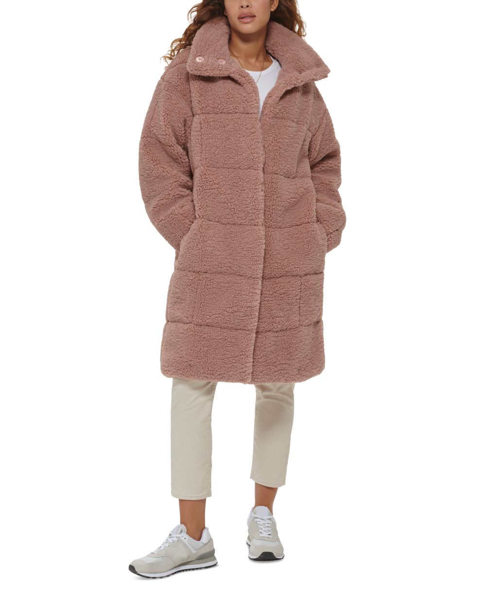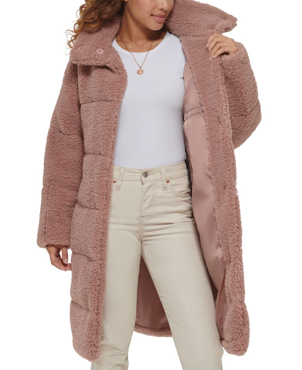 Levis Womens Long Sherpa Snap Closure Teddy Coat