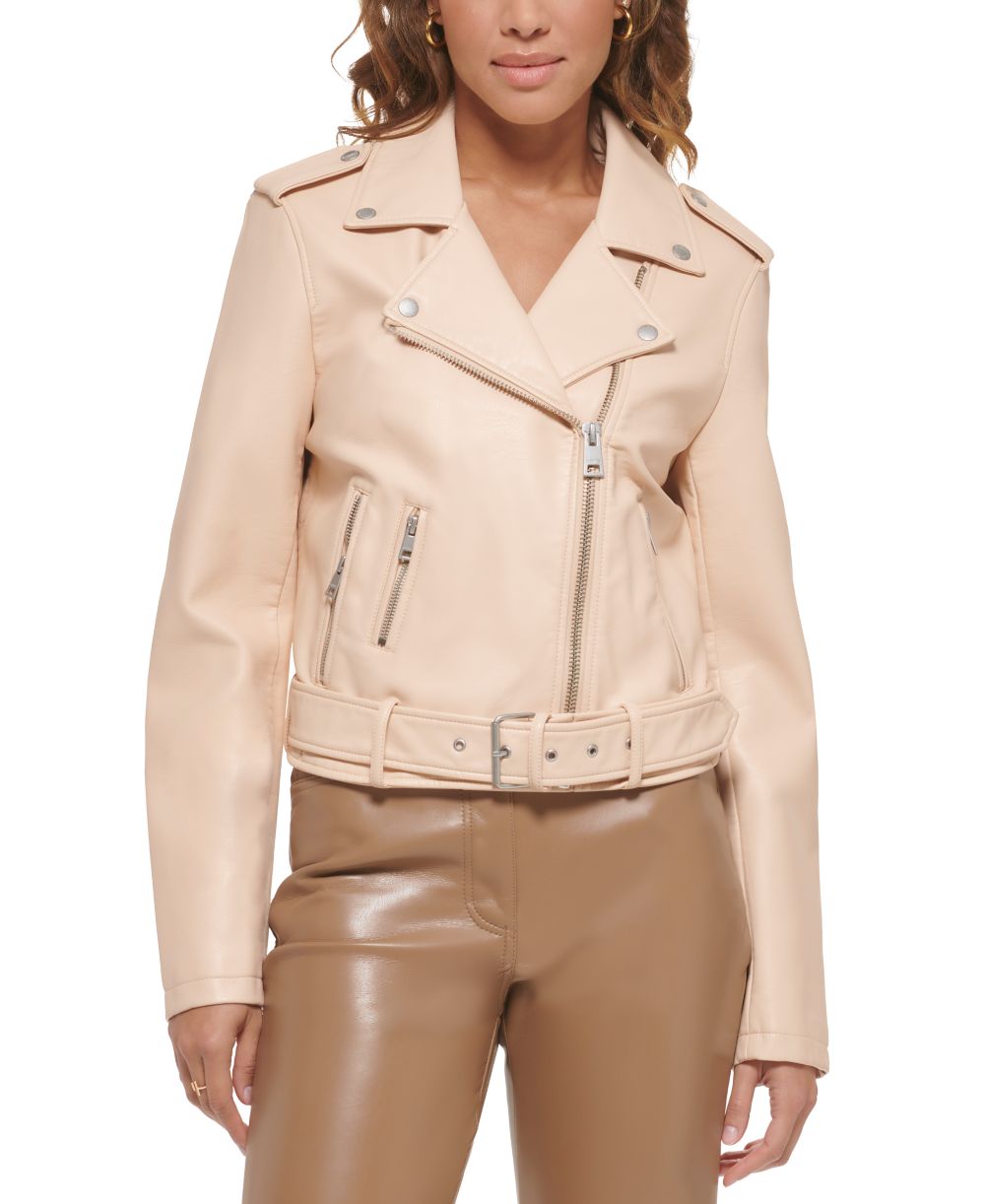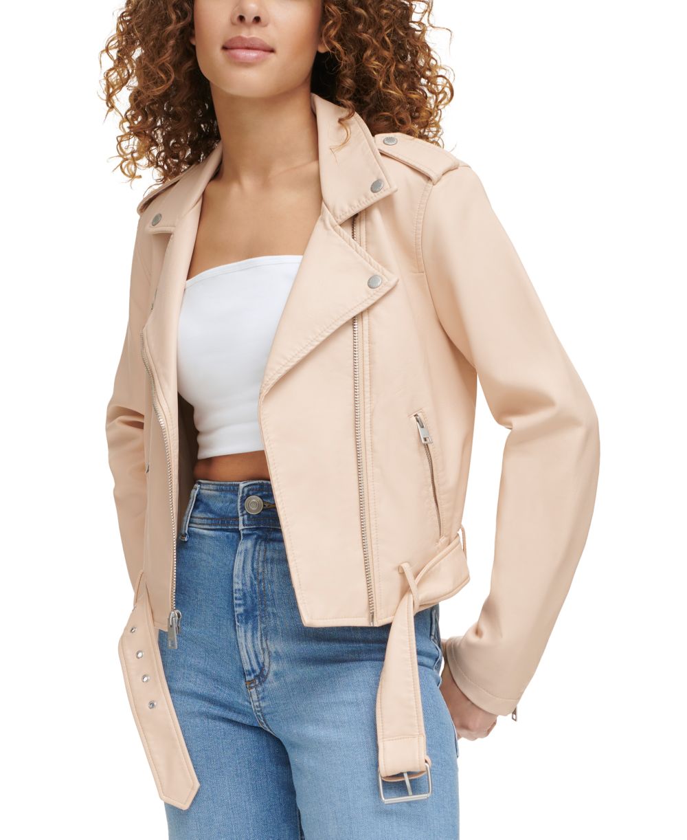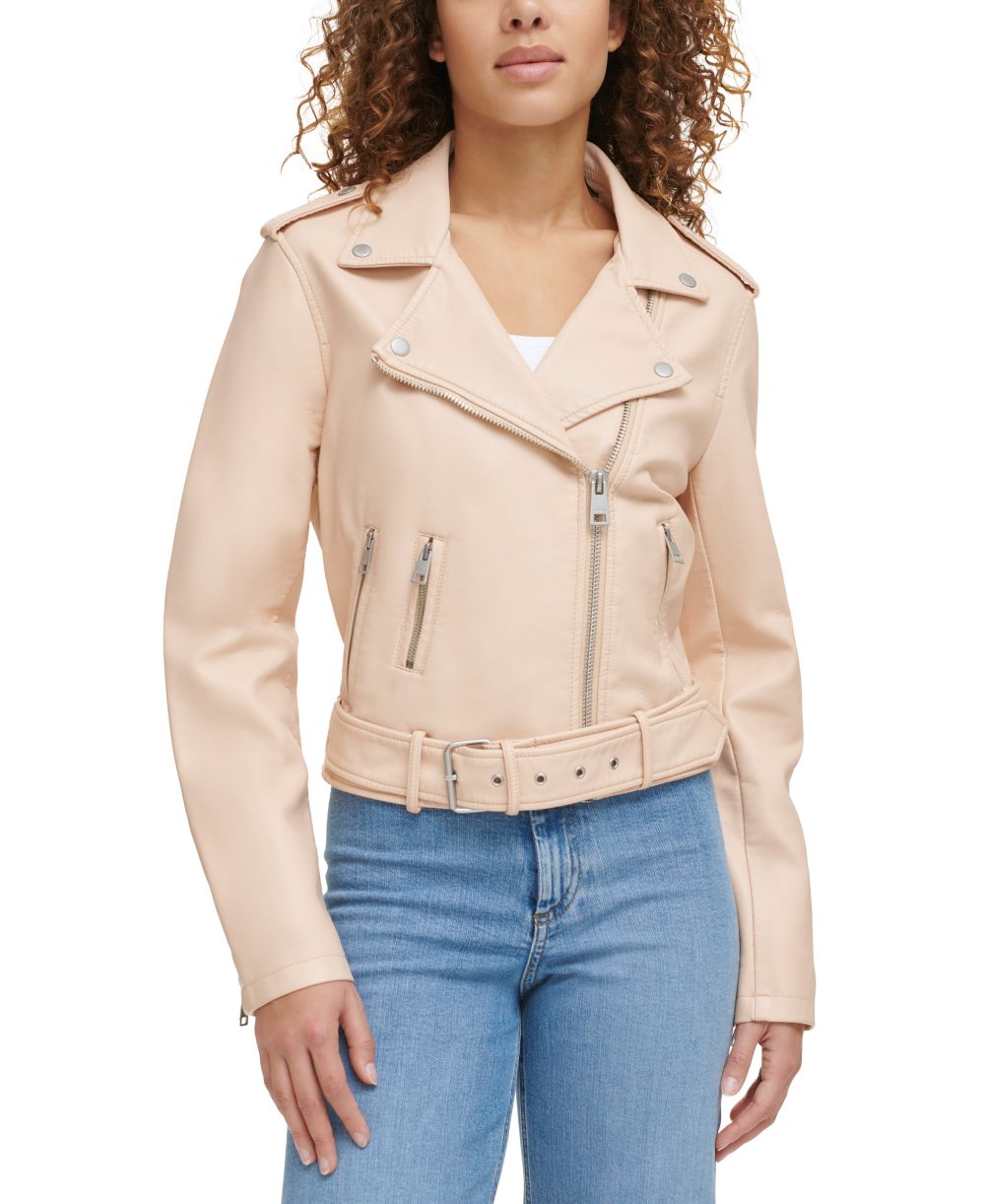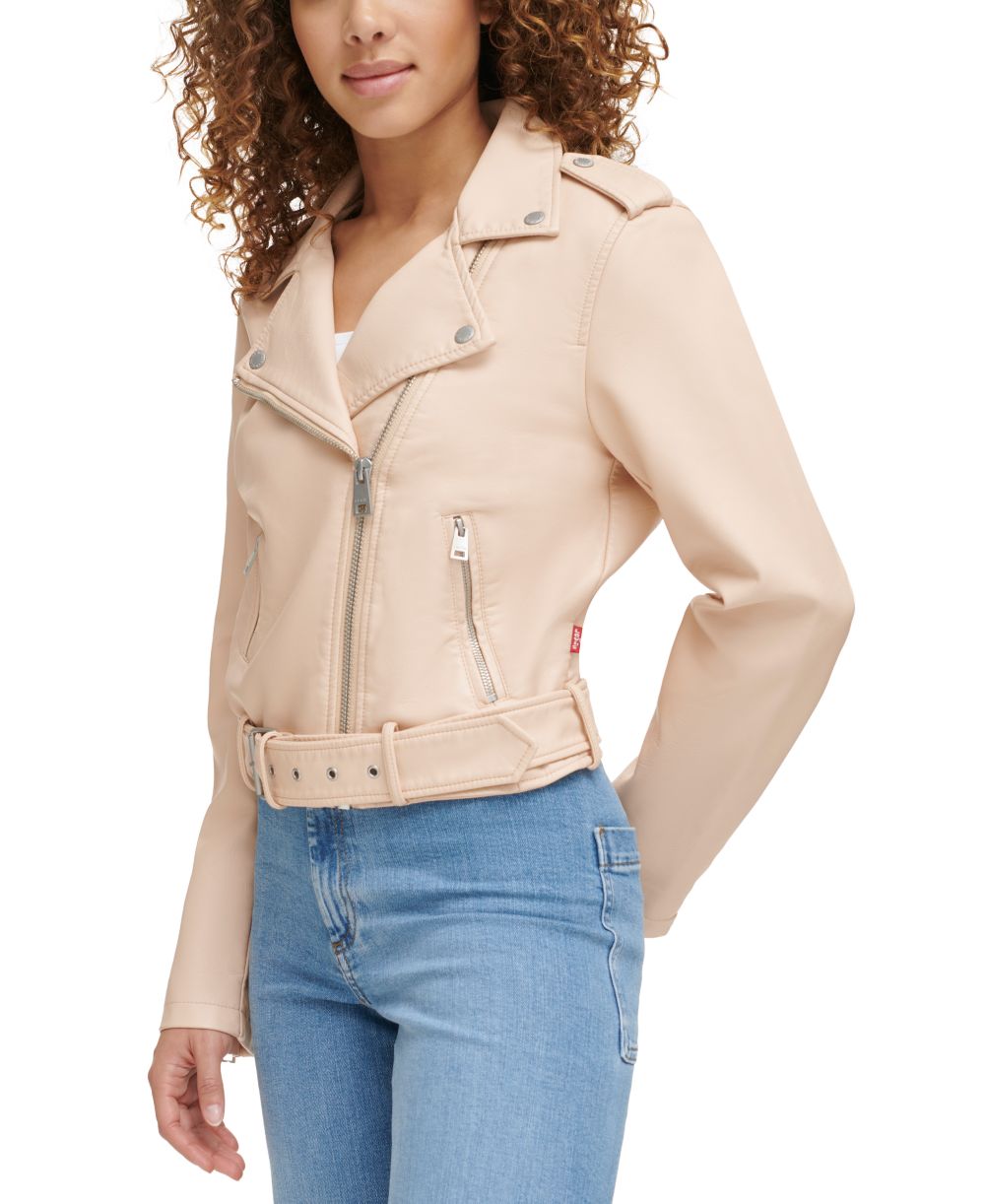 Levis Womens Faux Leather Belted Hem Moto Jacket