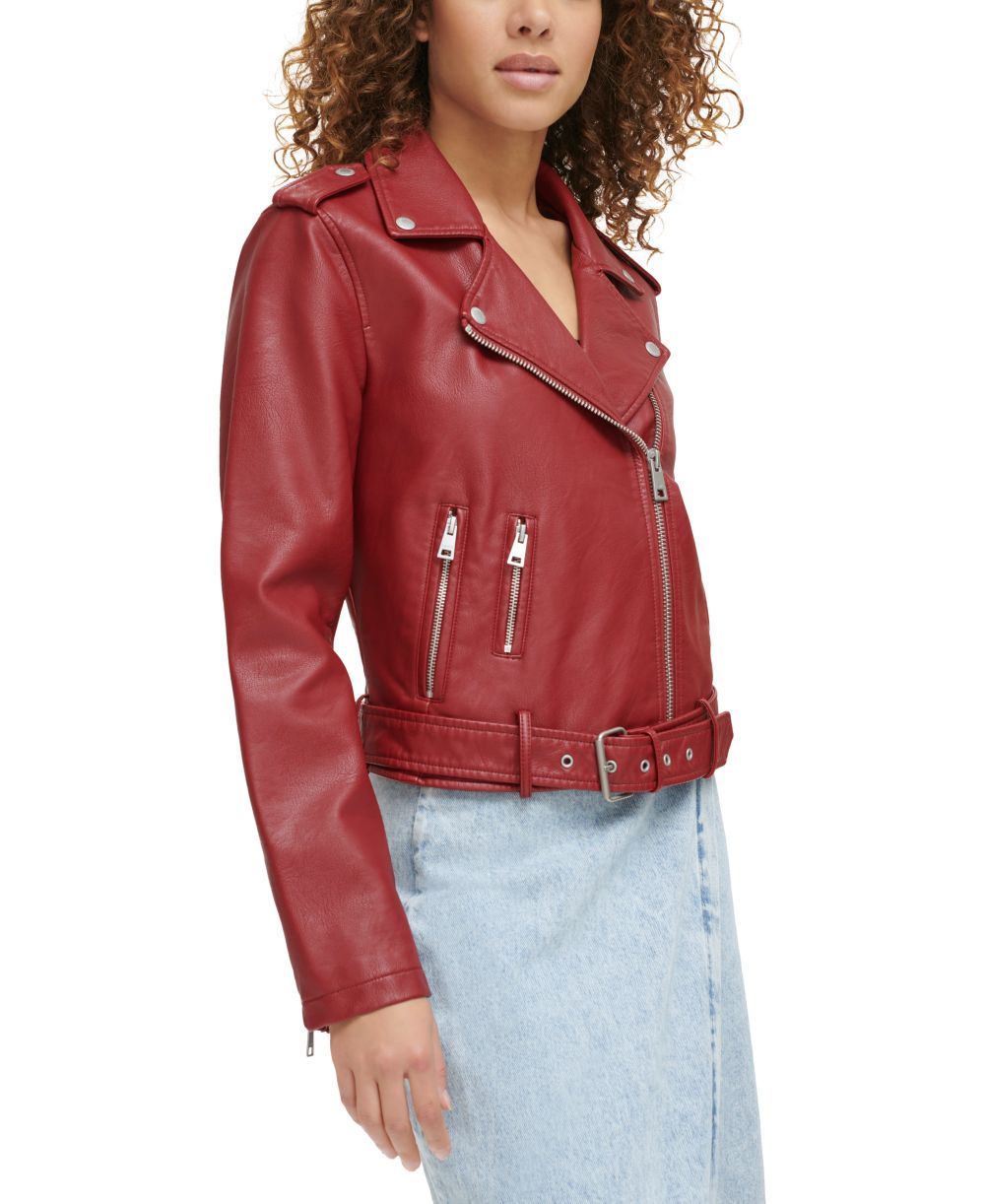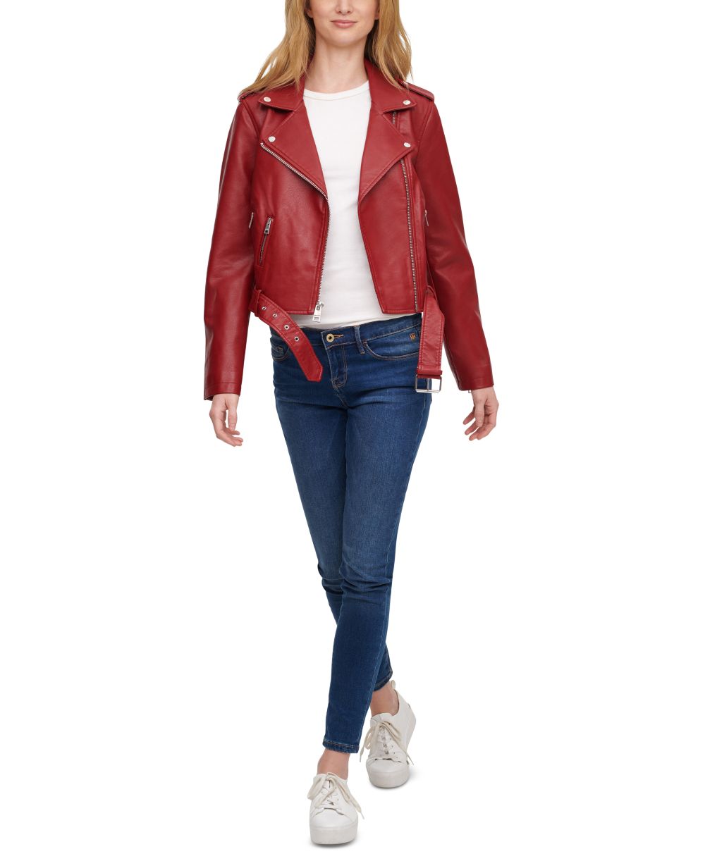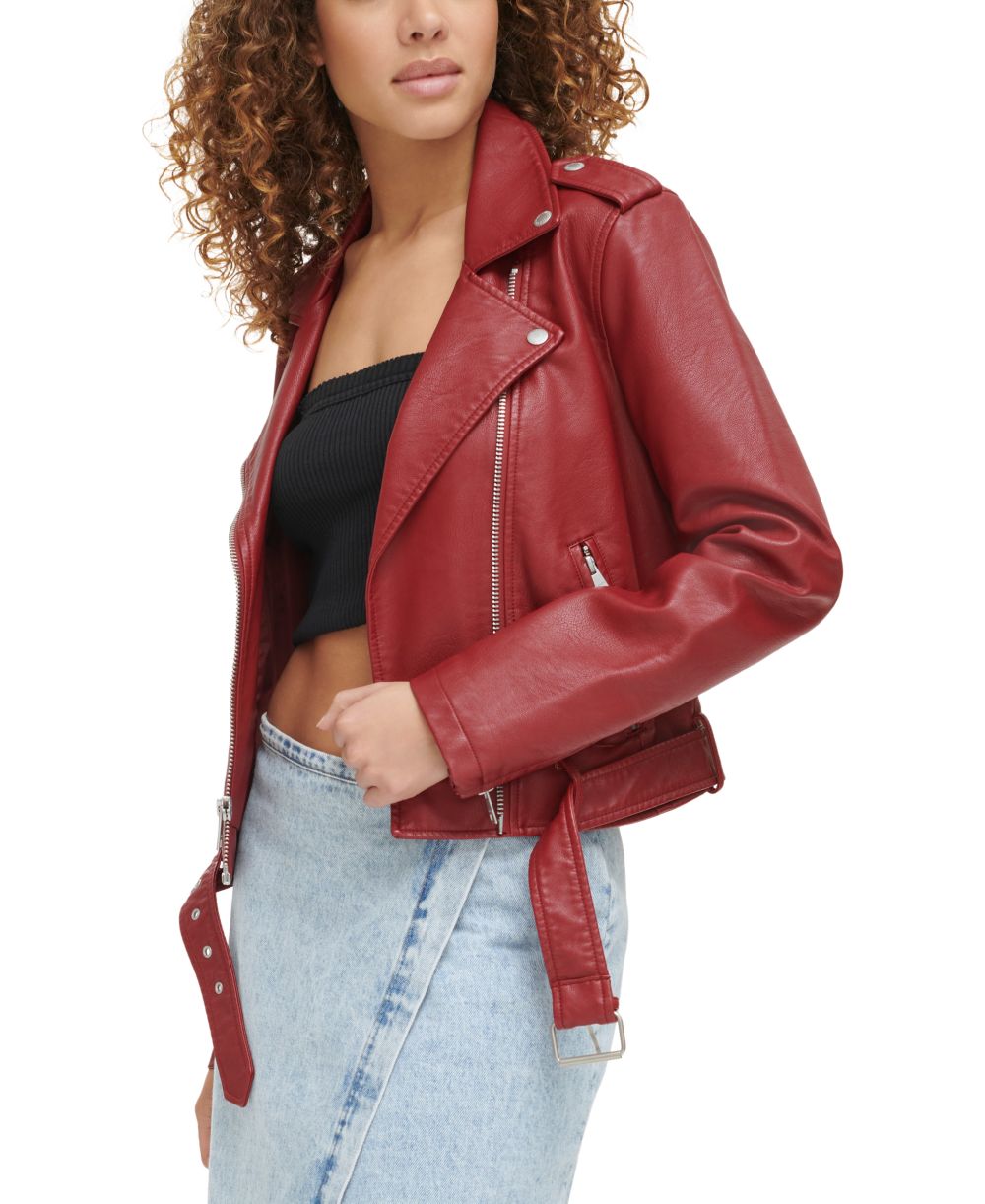 Levis Womens Faux Leather Belted Hem Moto Jacket