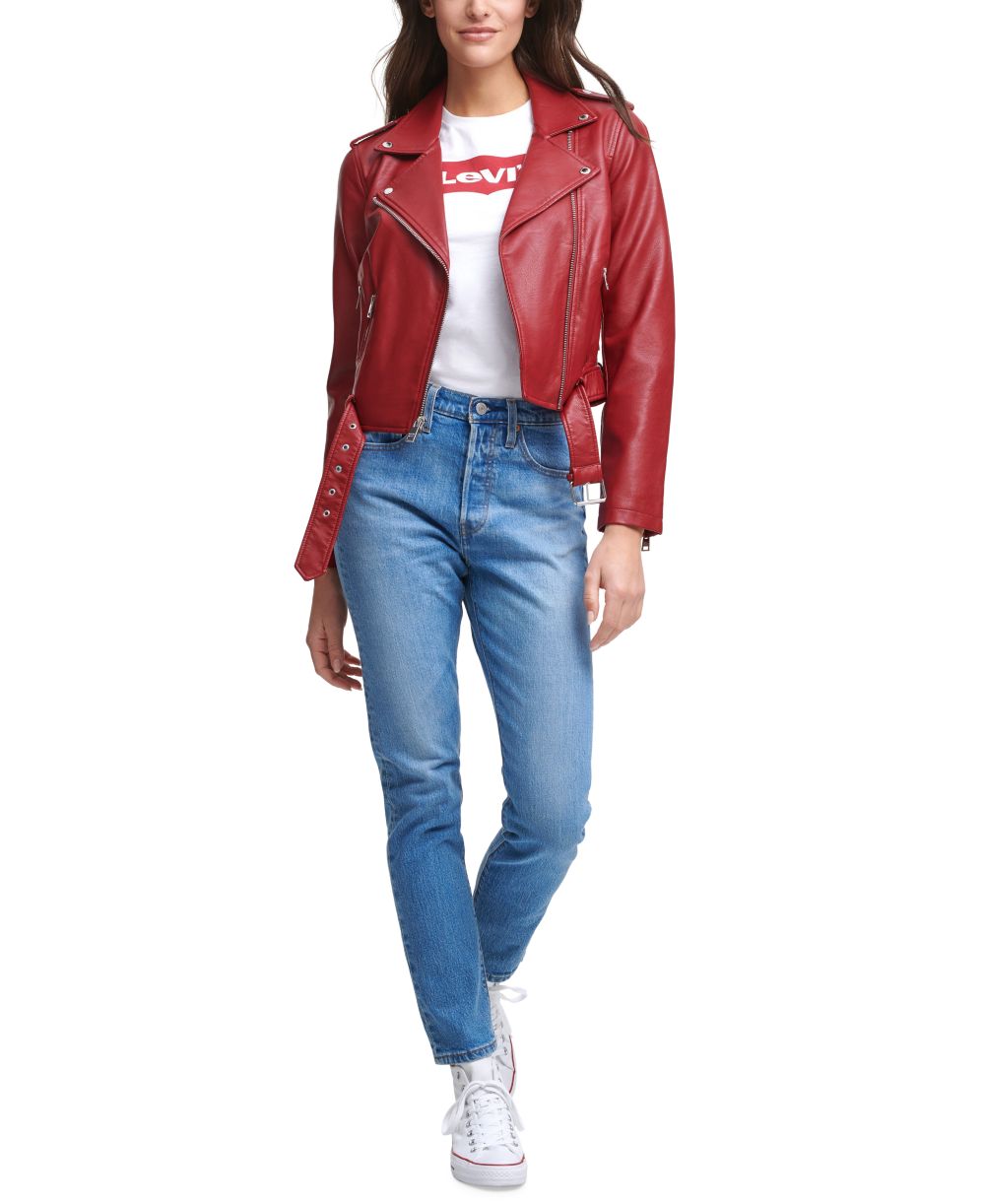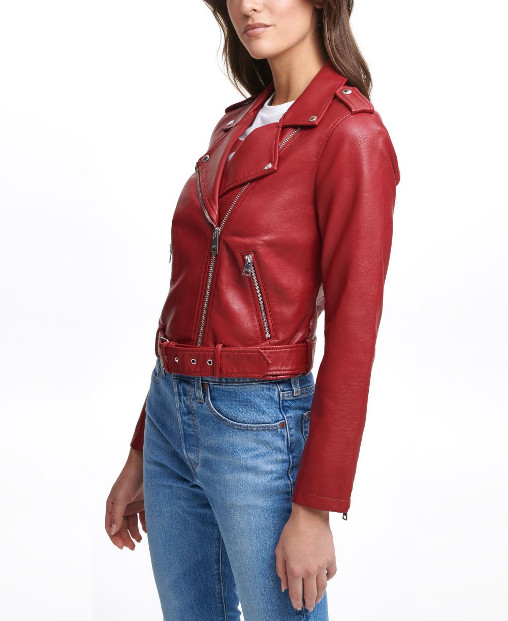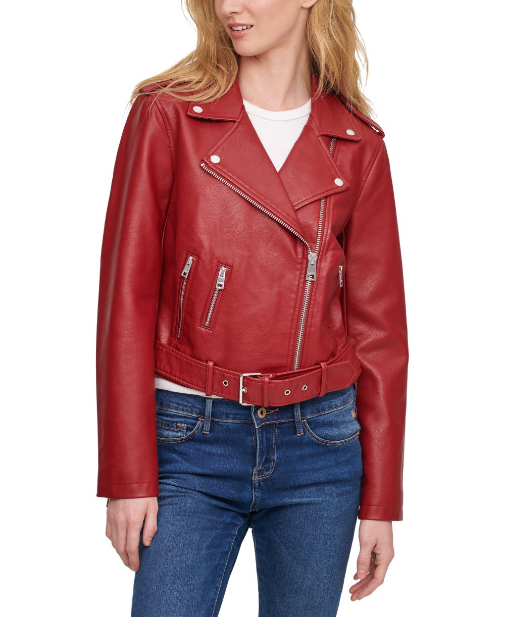 Levis Womens Faux Leather Belted Hem Moto Jacket