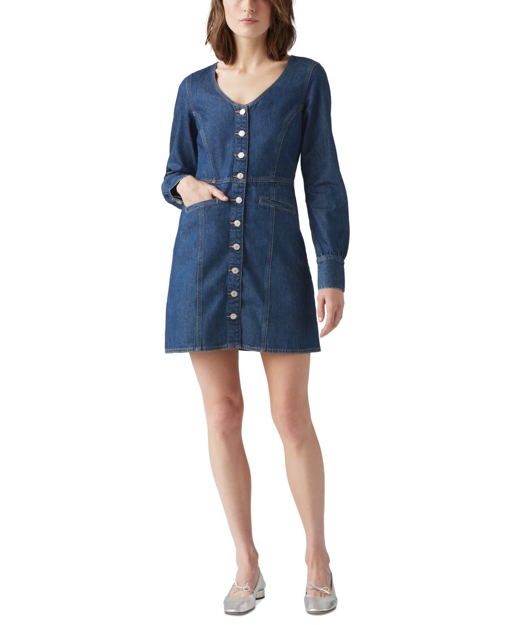 Levis Womens Monroe Cotton Denim A Line Button Front Dress