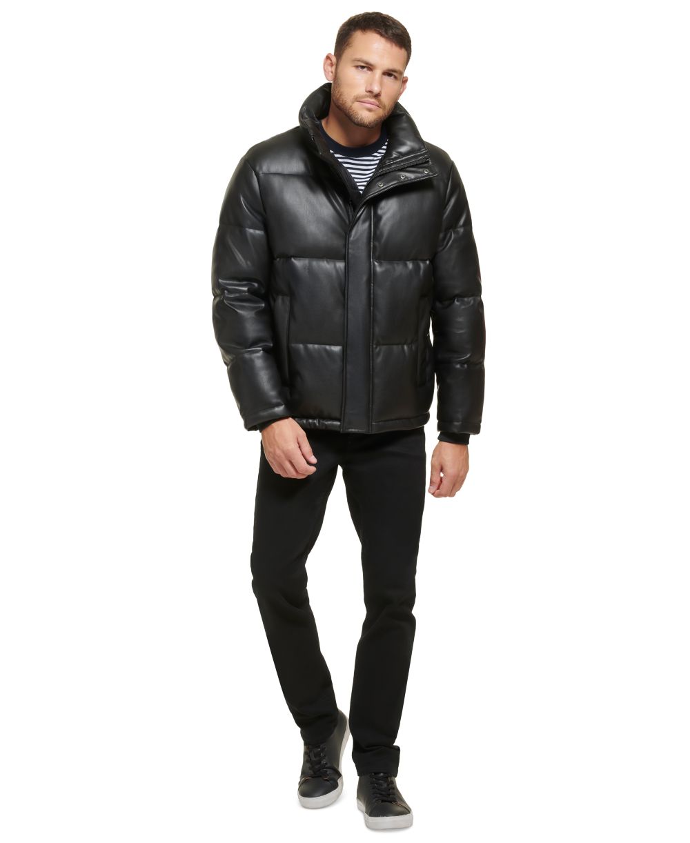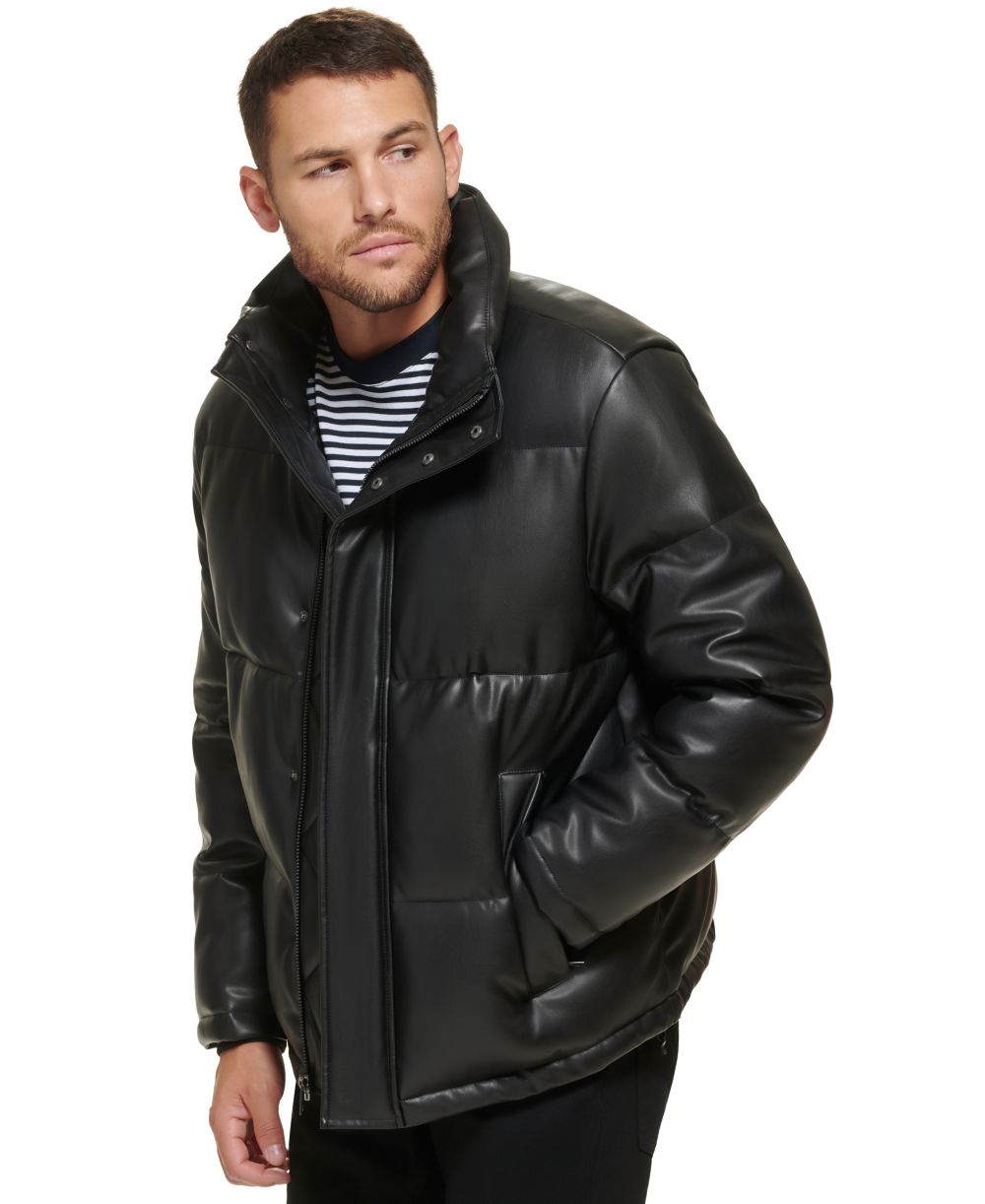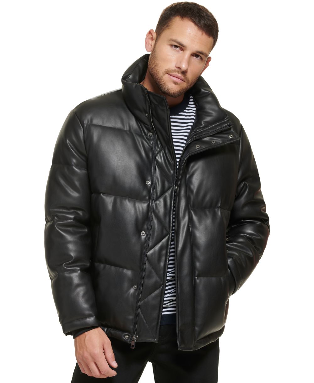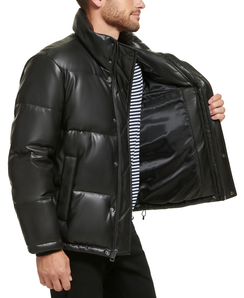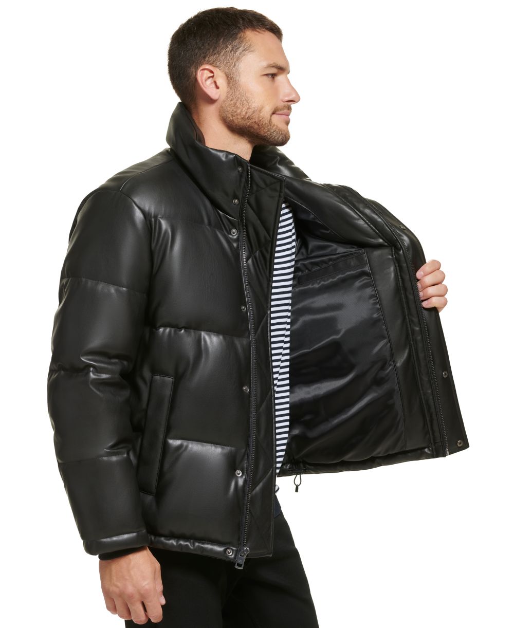 Calvin Klein Mens Faux Leather Classic Puffer Jacket
