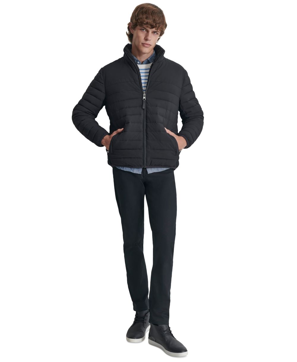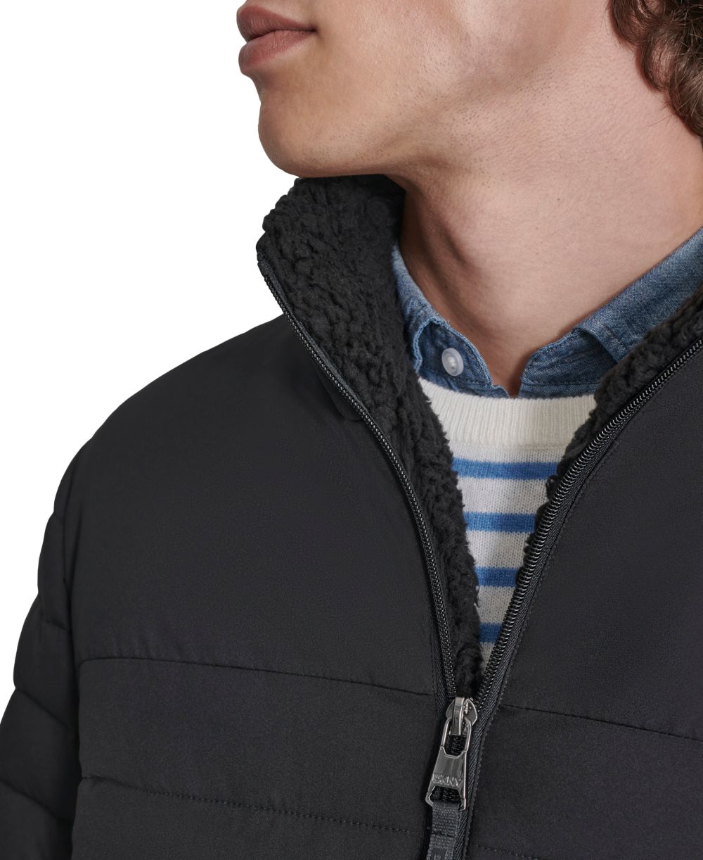DKNY Mens Quilted Fleece Lined Full Zip Puffer Jacket