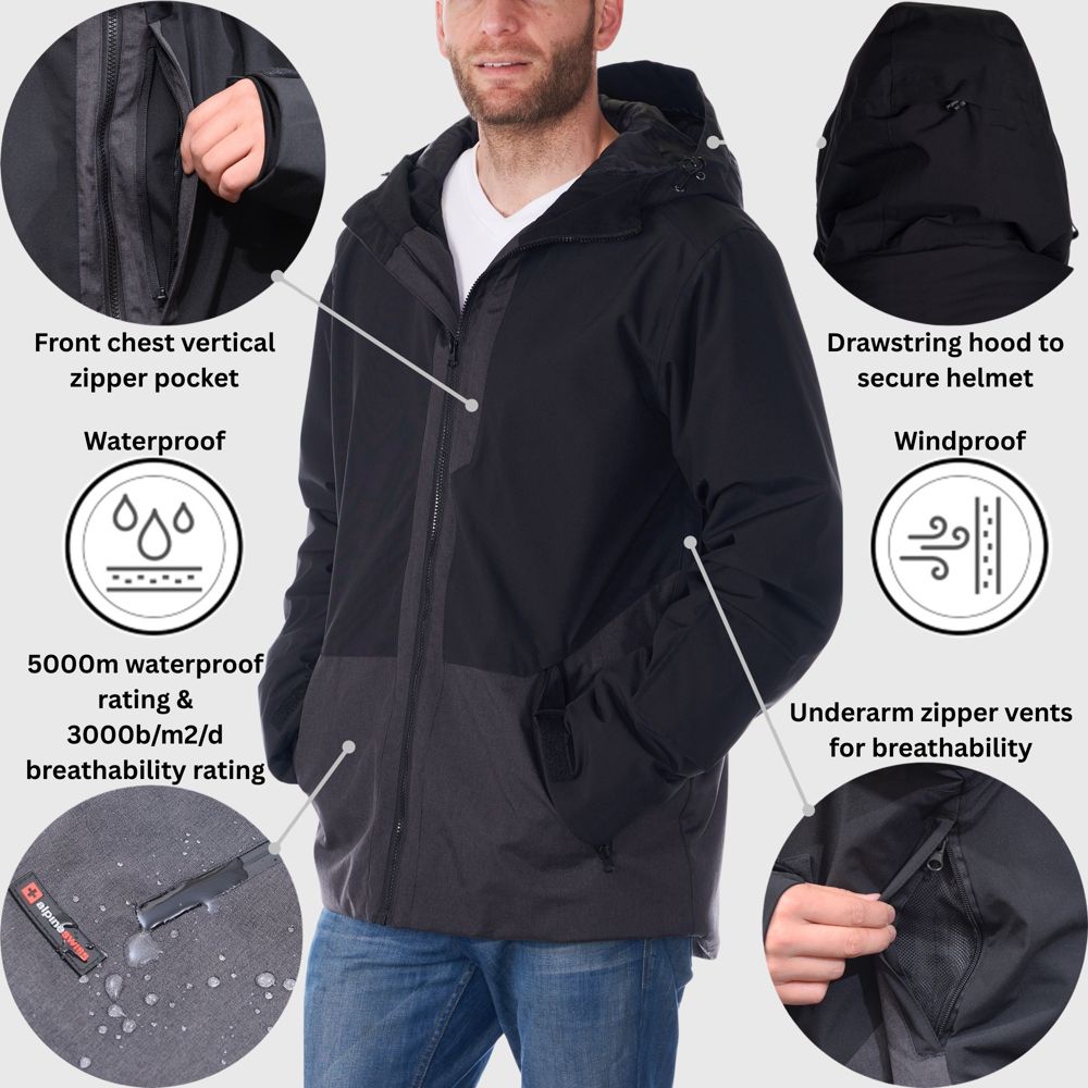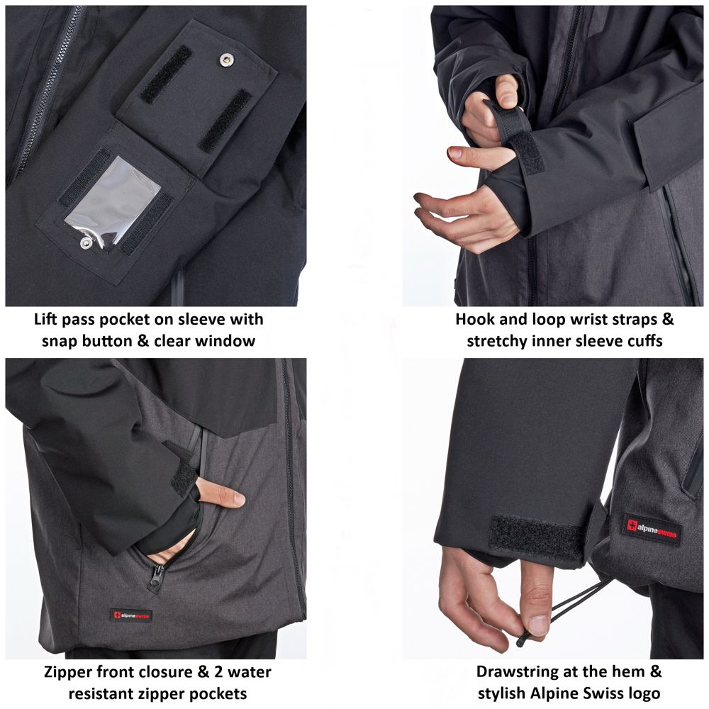 Alpine Swiss Mens Waterproof Ski Jacket Snowboarding Winter Snow Coat Raincoat