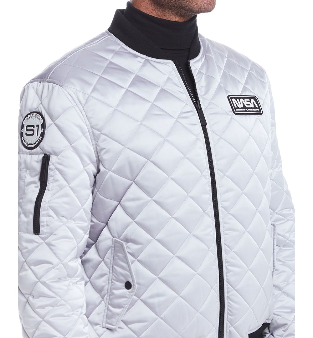 Space One Mens NASA Reversible Quilted Bomber Jacket