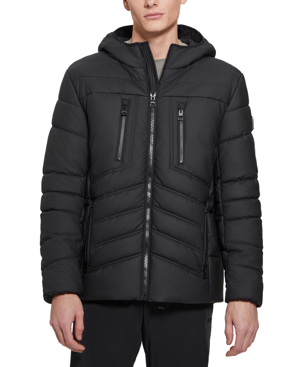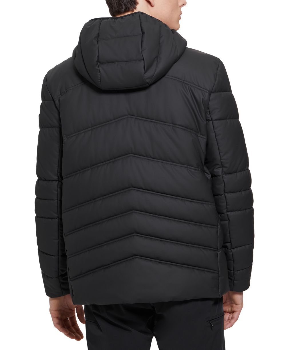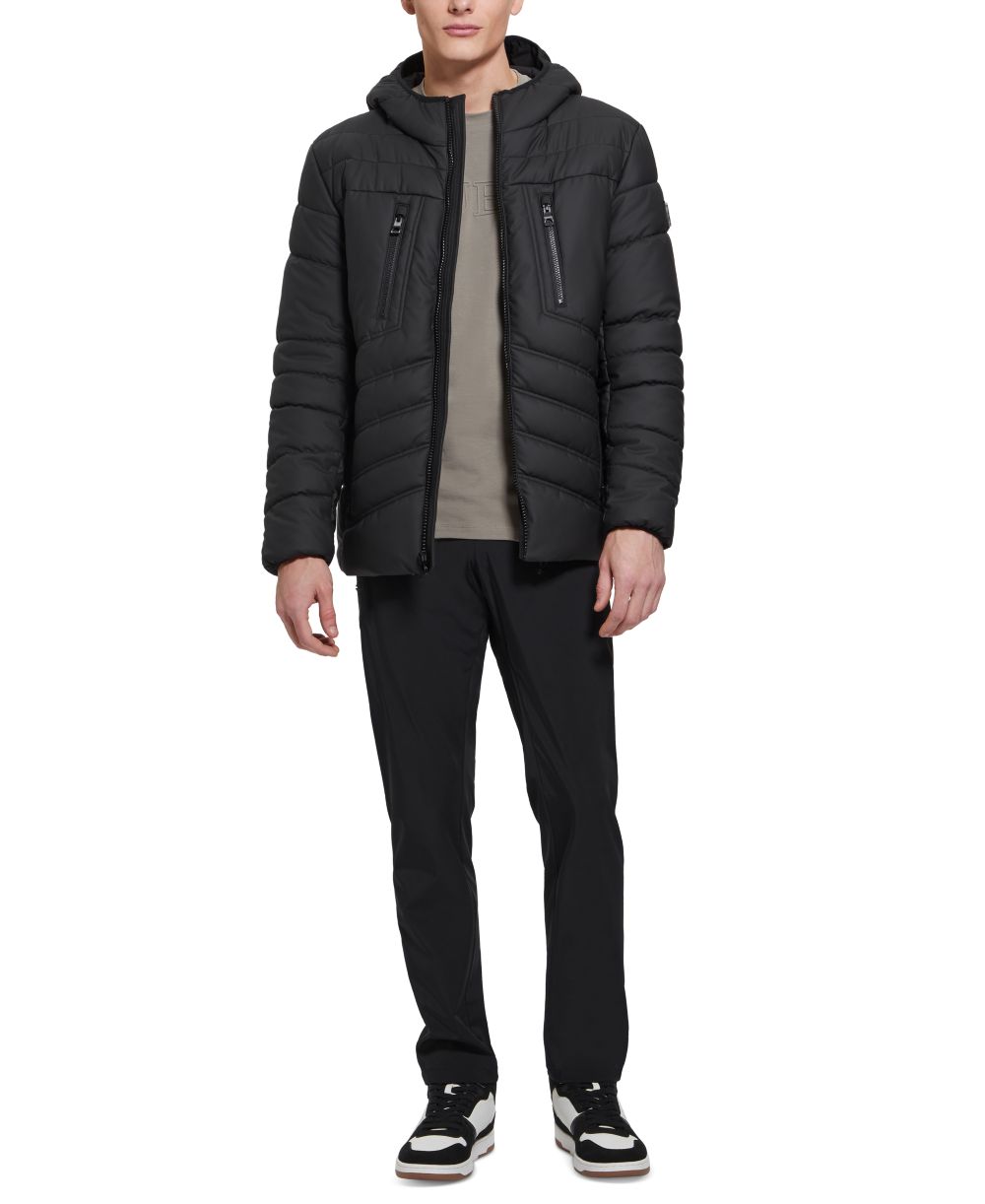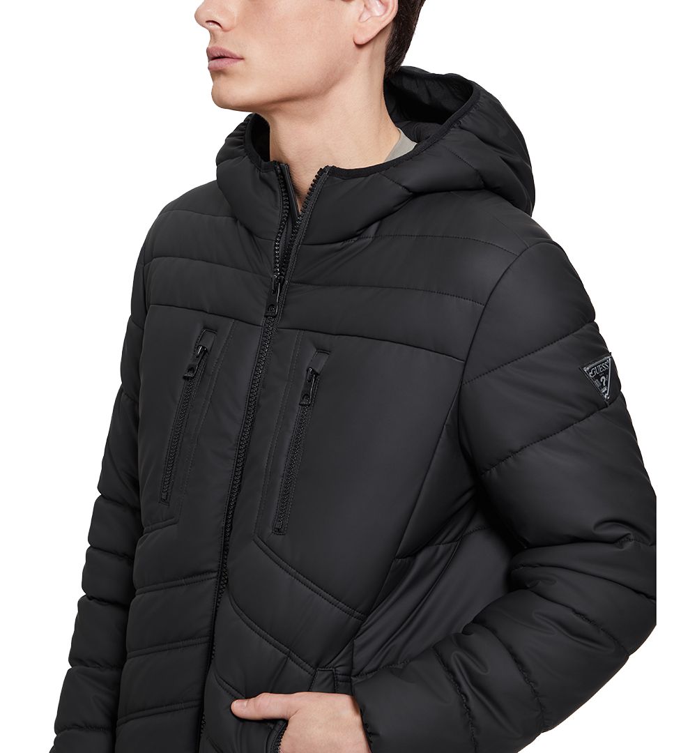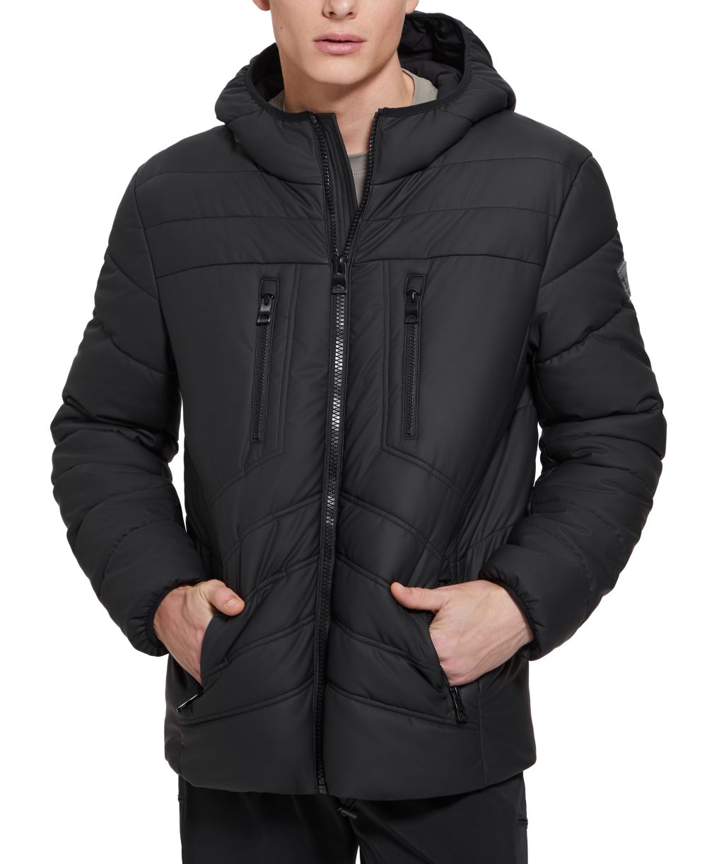 GUESS Mens Quilted Faux Leather Hooded Jacket