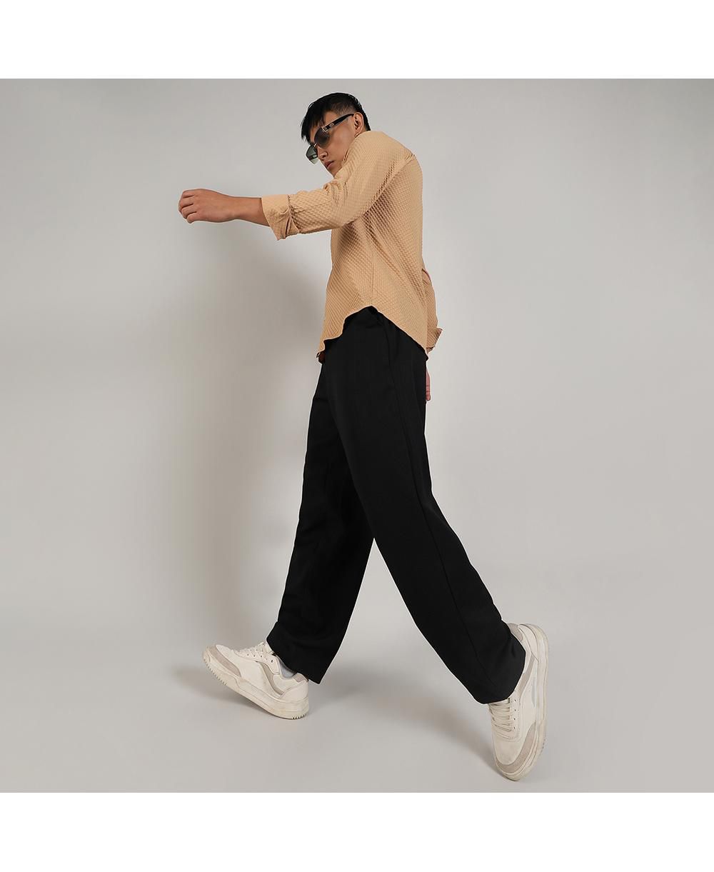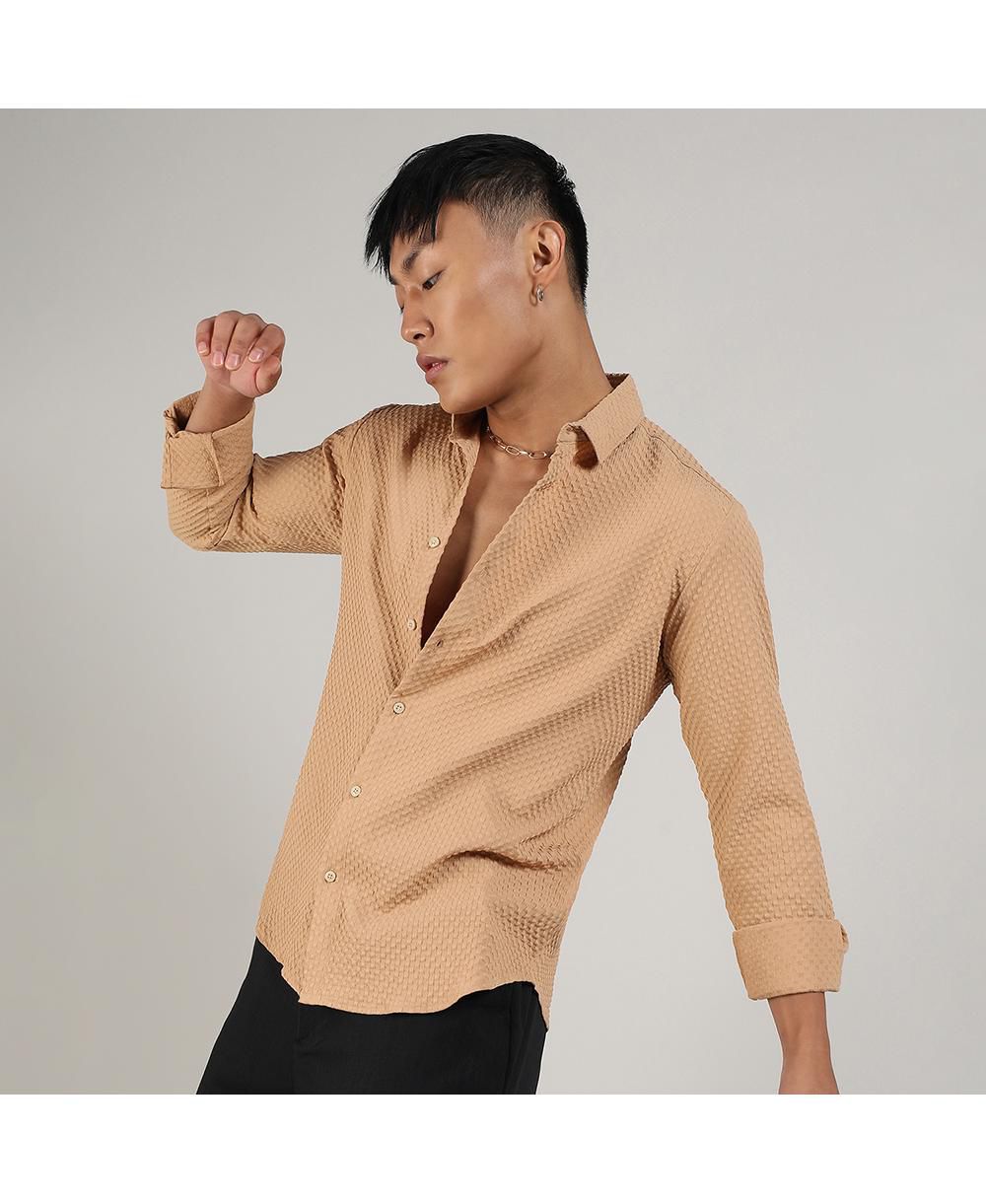 Campus Sutra Mens Beige Textured Micro Buffalo Check Shirt