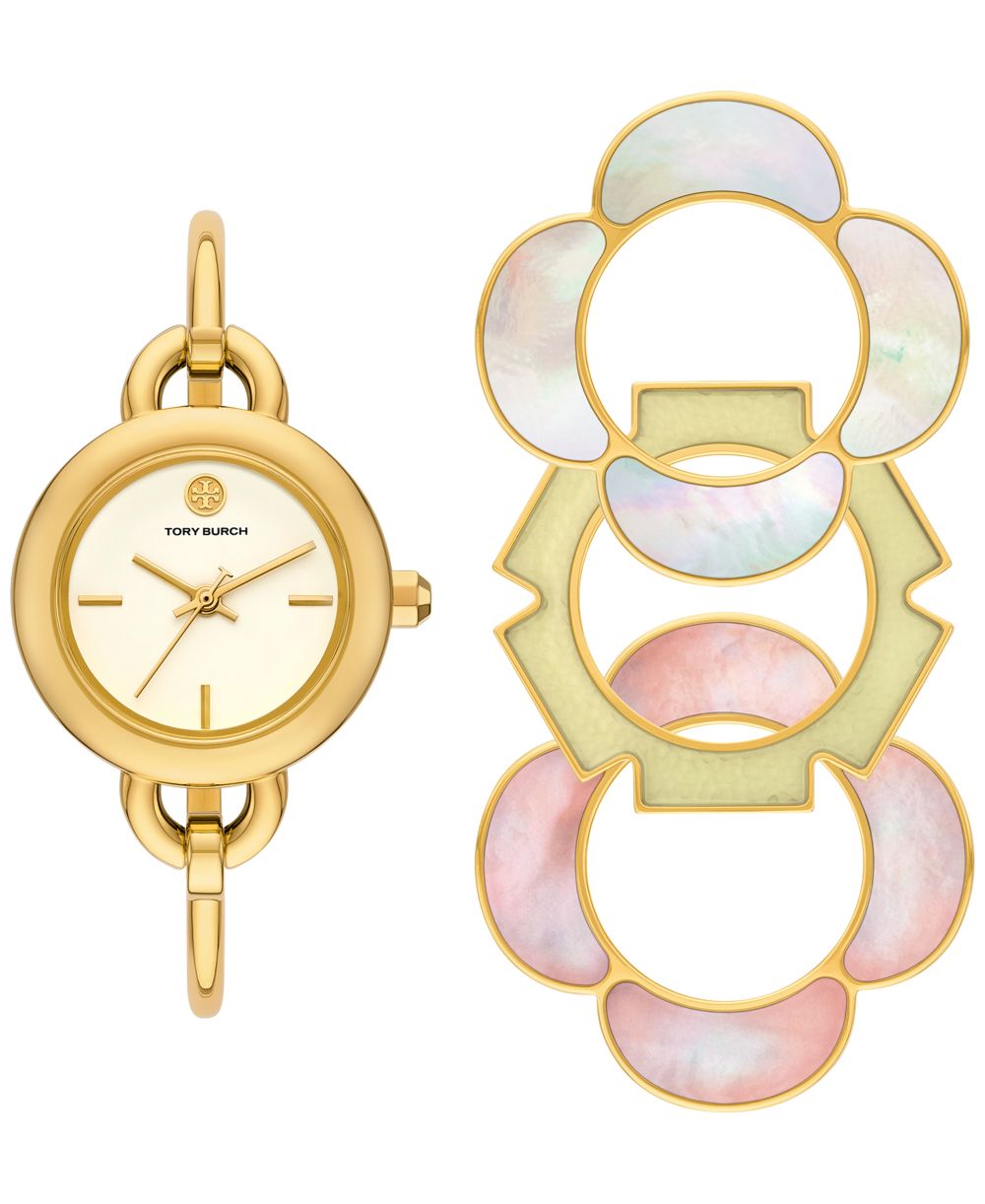 Tory Burch Womens The Kira Gold Tone Stainless Steel Bangle Bracelet Watch 27mm Gift Set