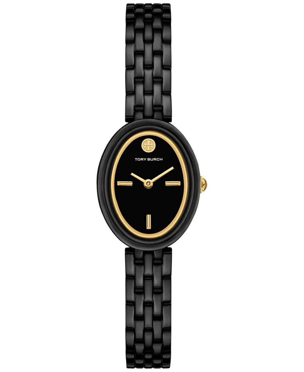 Tory Burch Womens The Oval Black Tone Stainless Steel Bracelet Watch 28mm