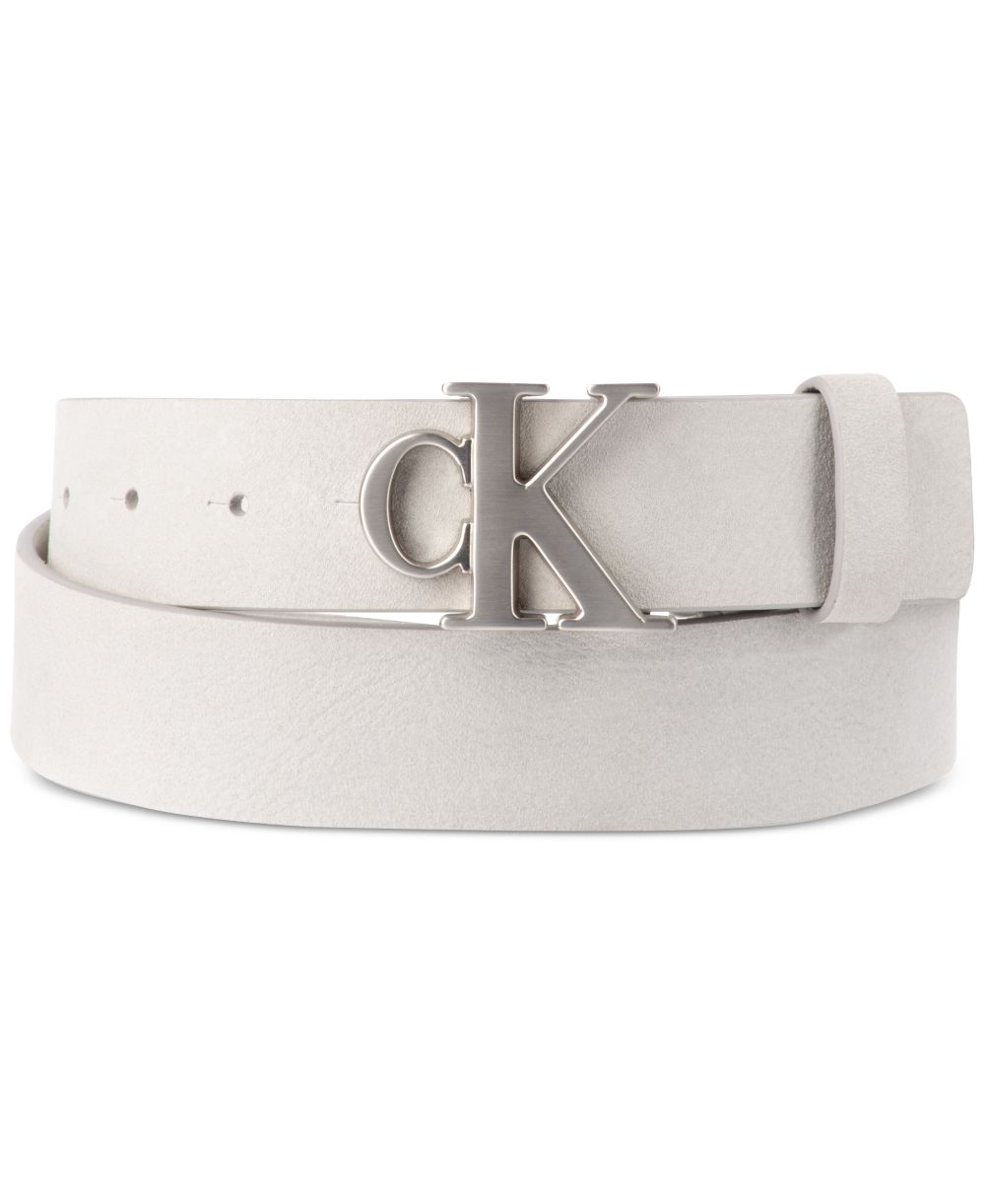 Calvin Klein Mens Plaque Buckle CK Logo Belt