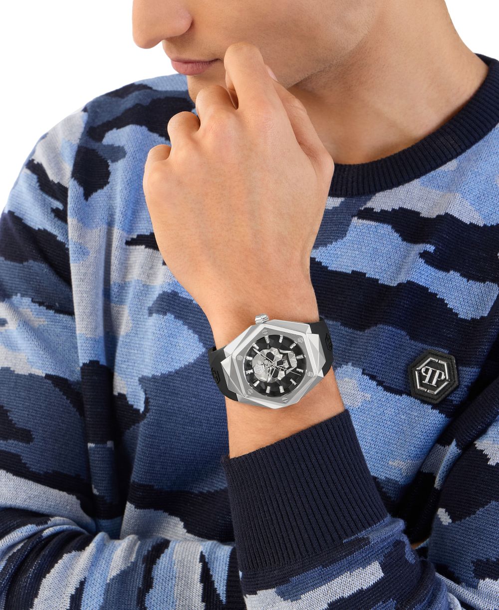 Philipp Plein Mens The Skull Spikes Black Silicone Strap Watch 45mm