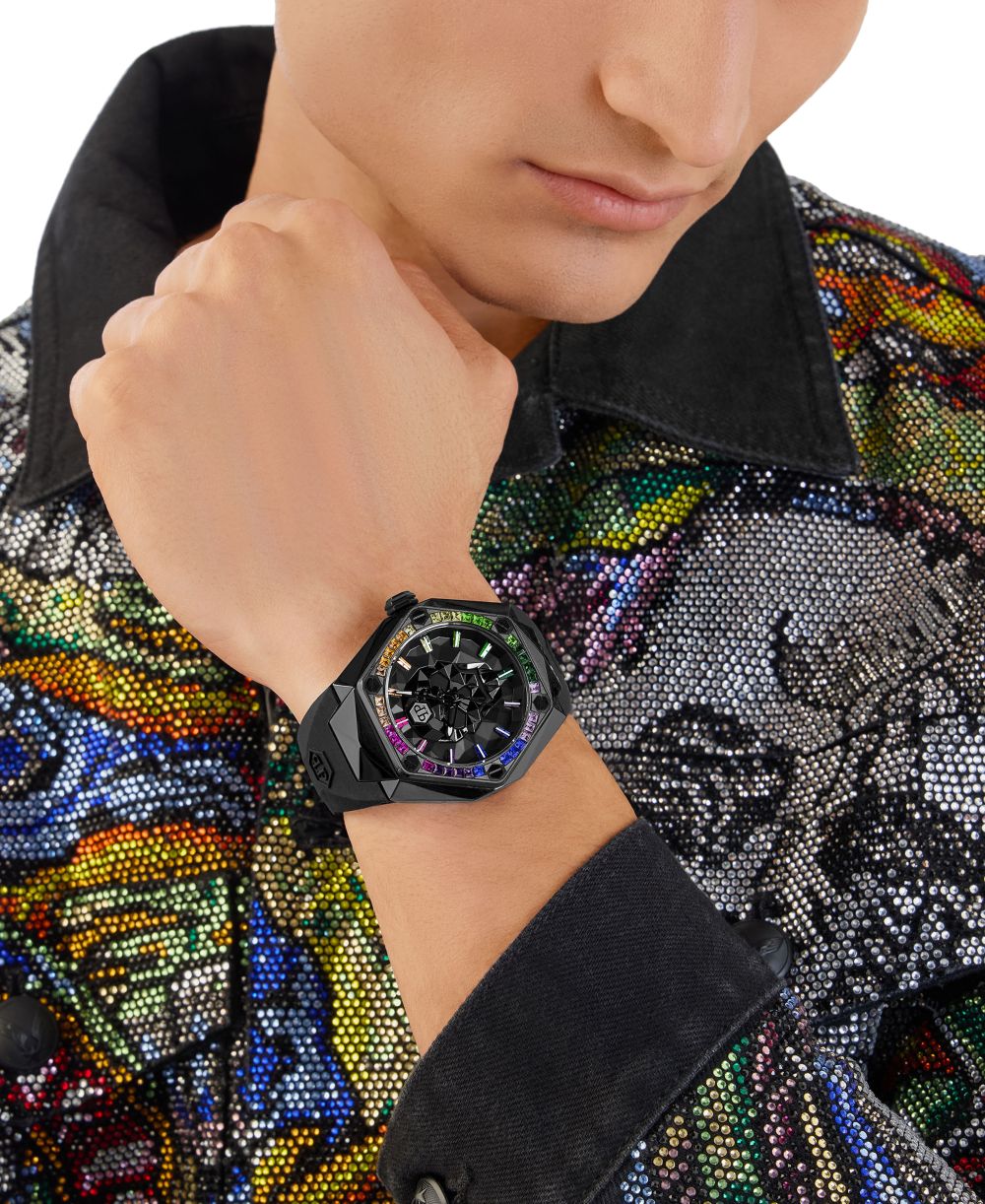 Philipp Plein Mens The Skull Spikes Black Silicone Strap Watch 45mm