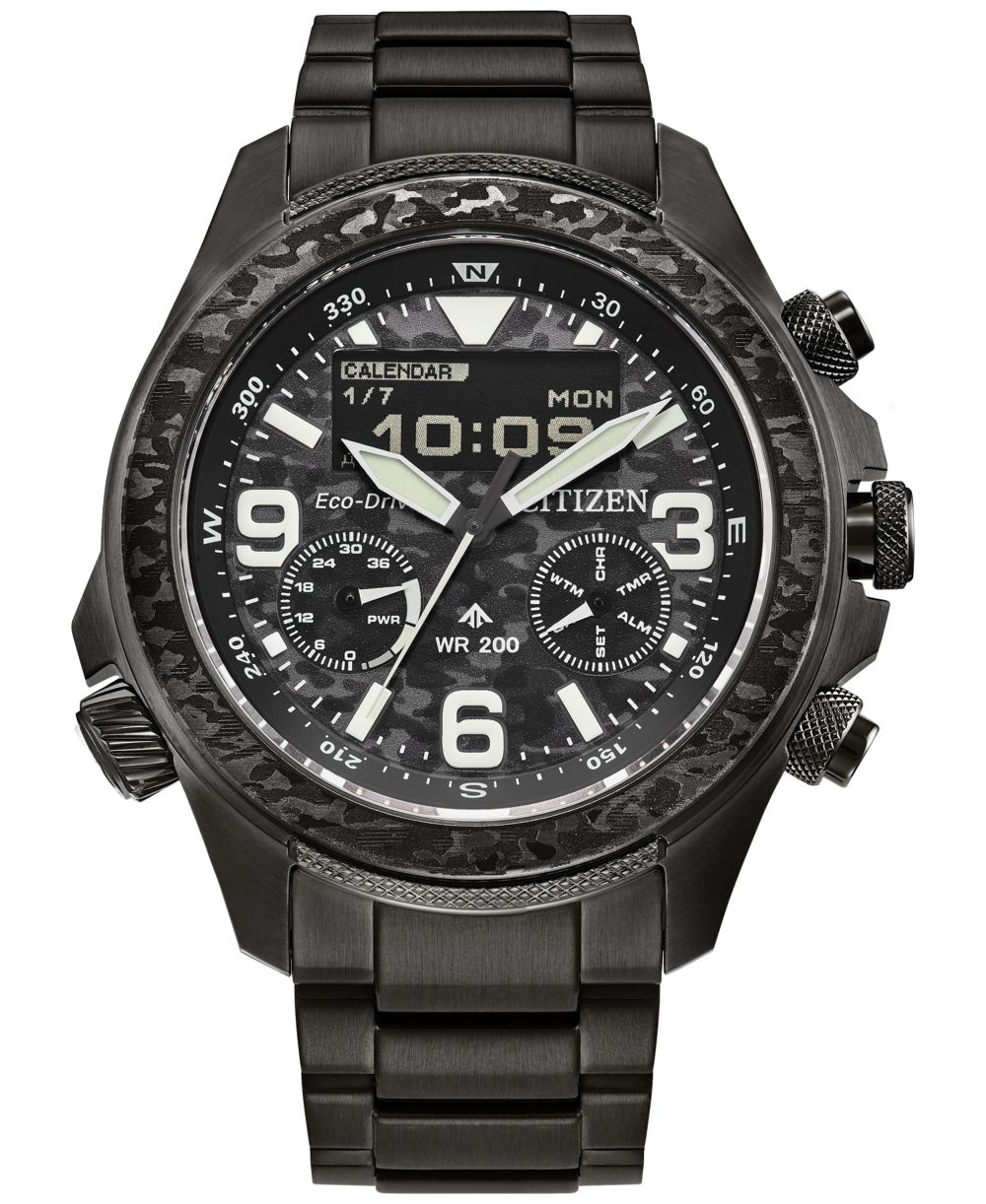 Citizen Eco Drive Mens Chronograph Promaster Land Gray Tone Stainless Steel Bracelet Watch 44mm
