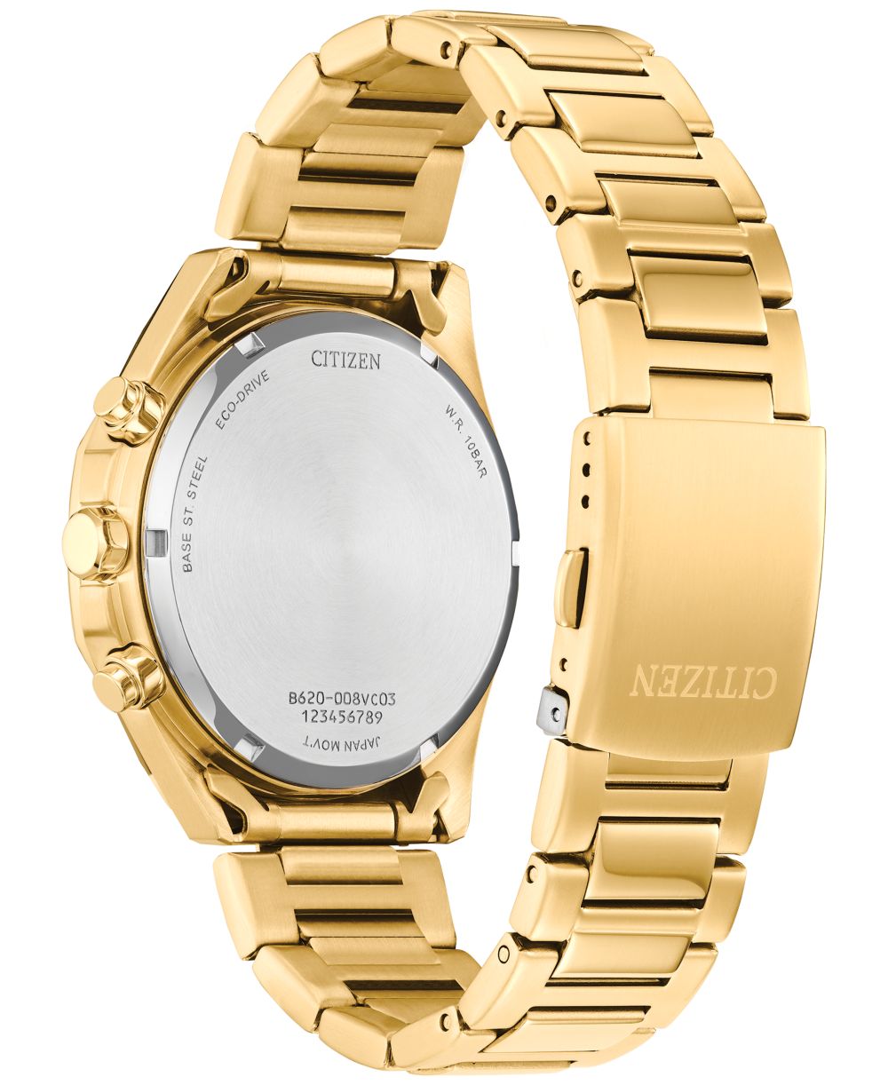 Citizen Eco Drive Mens Chronograph Gold Tone Stainless Steel Bracelet Watch 41mm