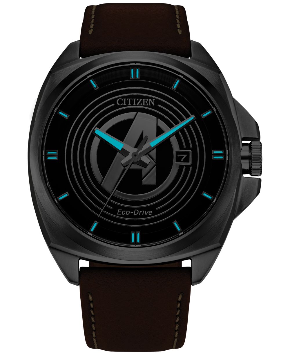 Citizen Eco Drive Mens Marvel Classic Avengers Legacy Brown Leather Strap Watch 42mm