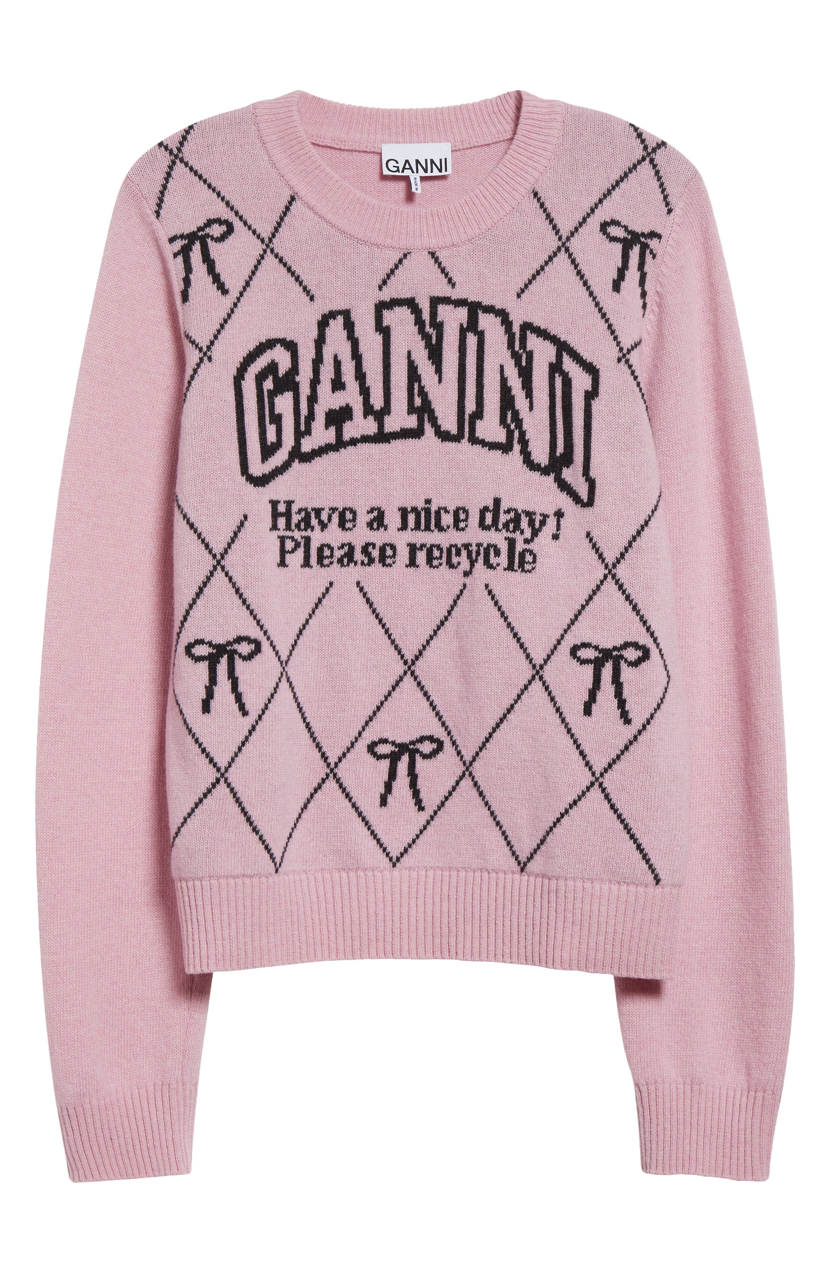 Ganni Logo Print Crewneck Sweater_Mauve Chalk