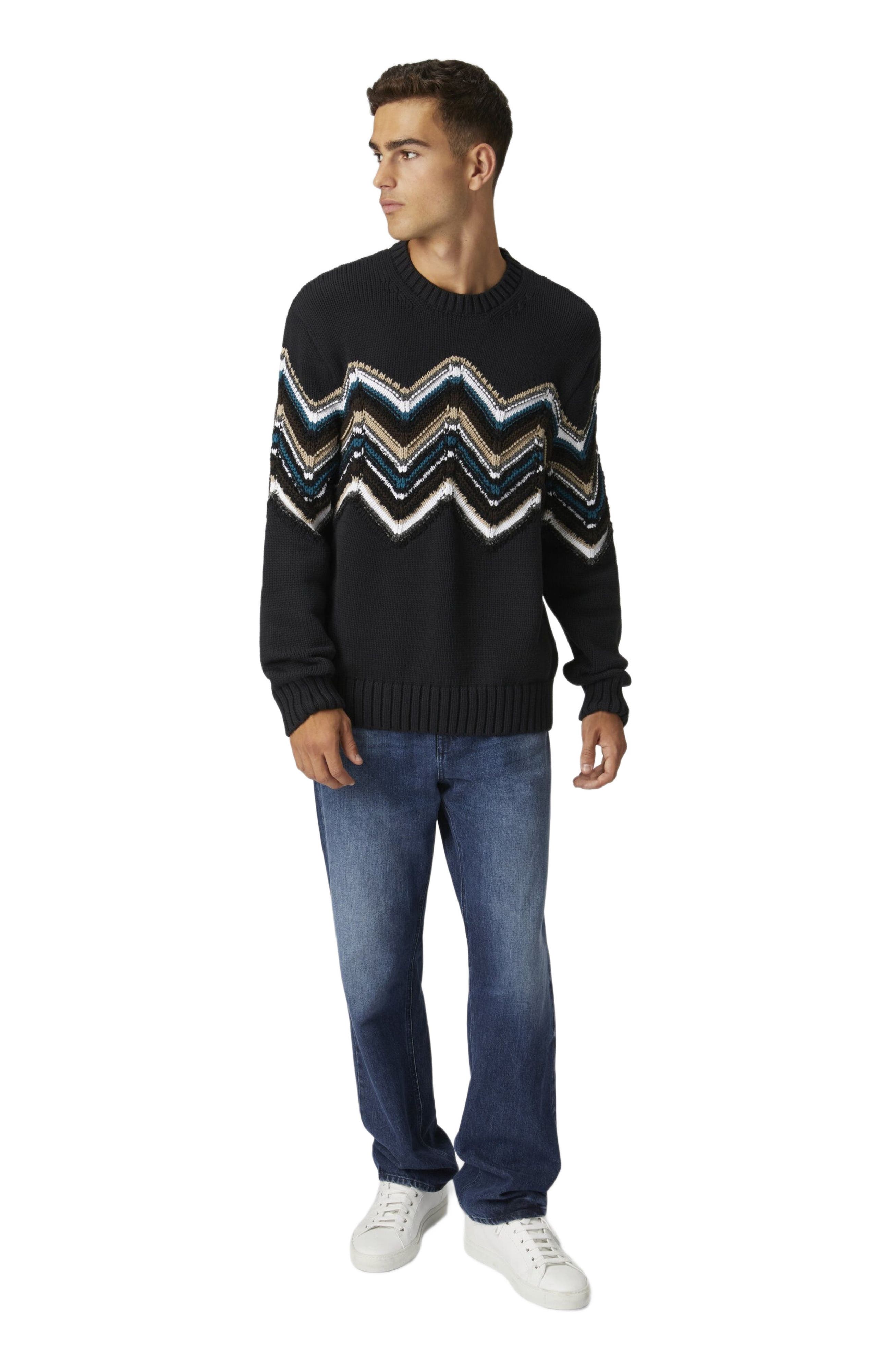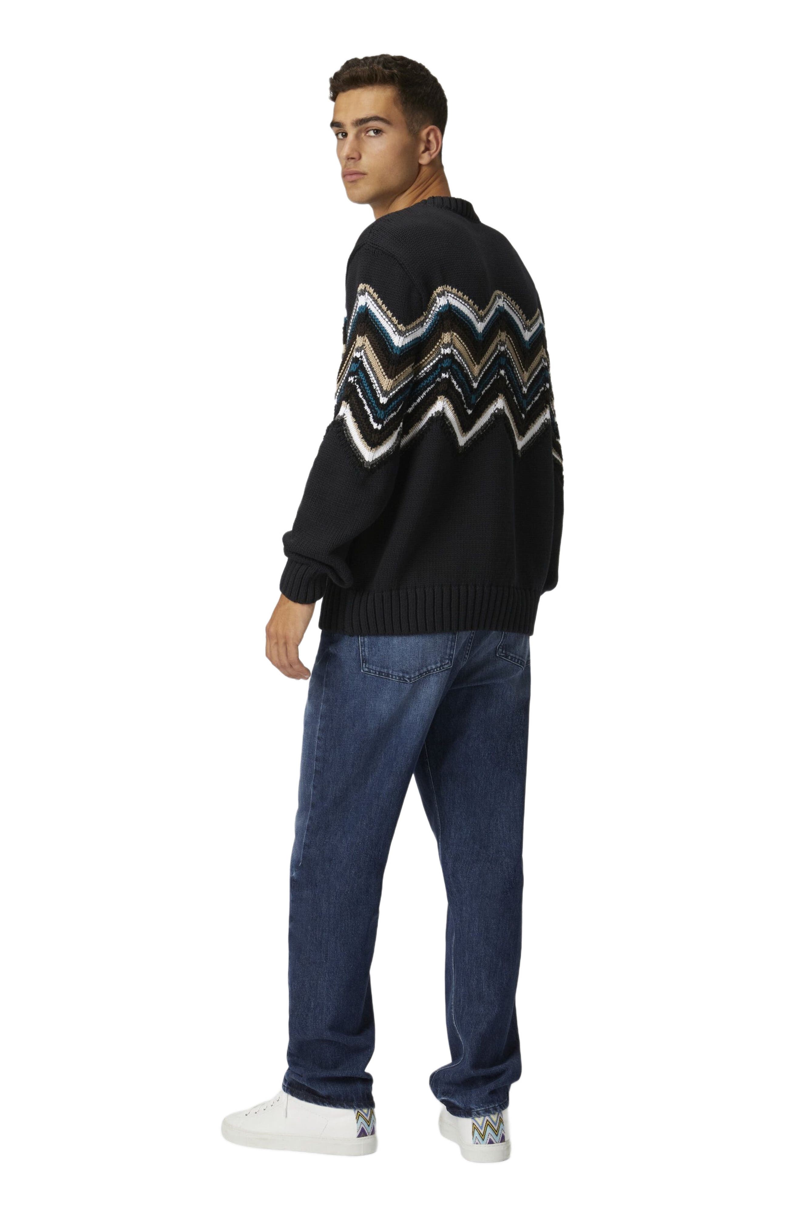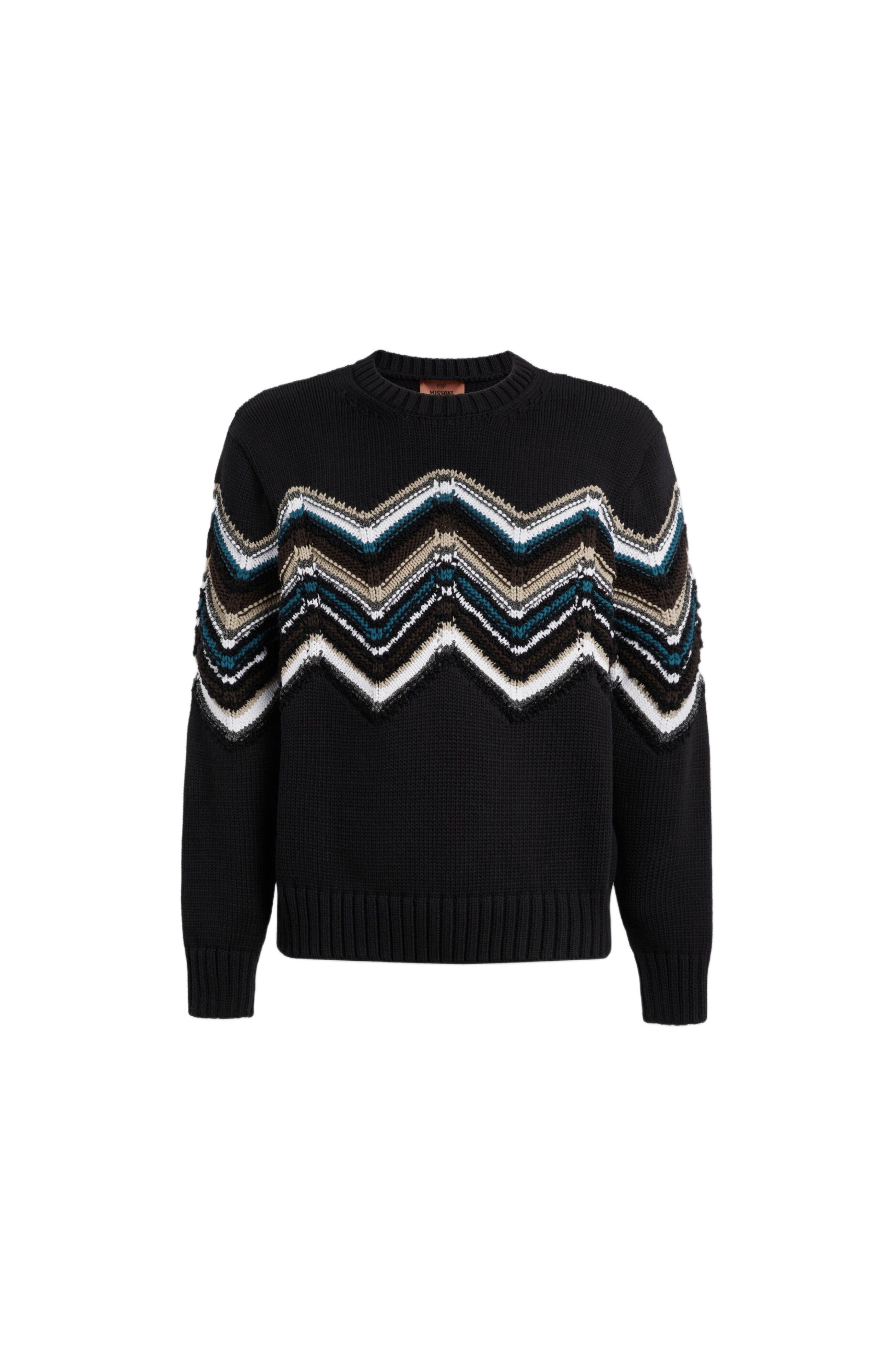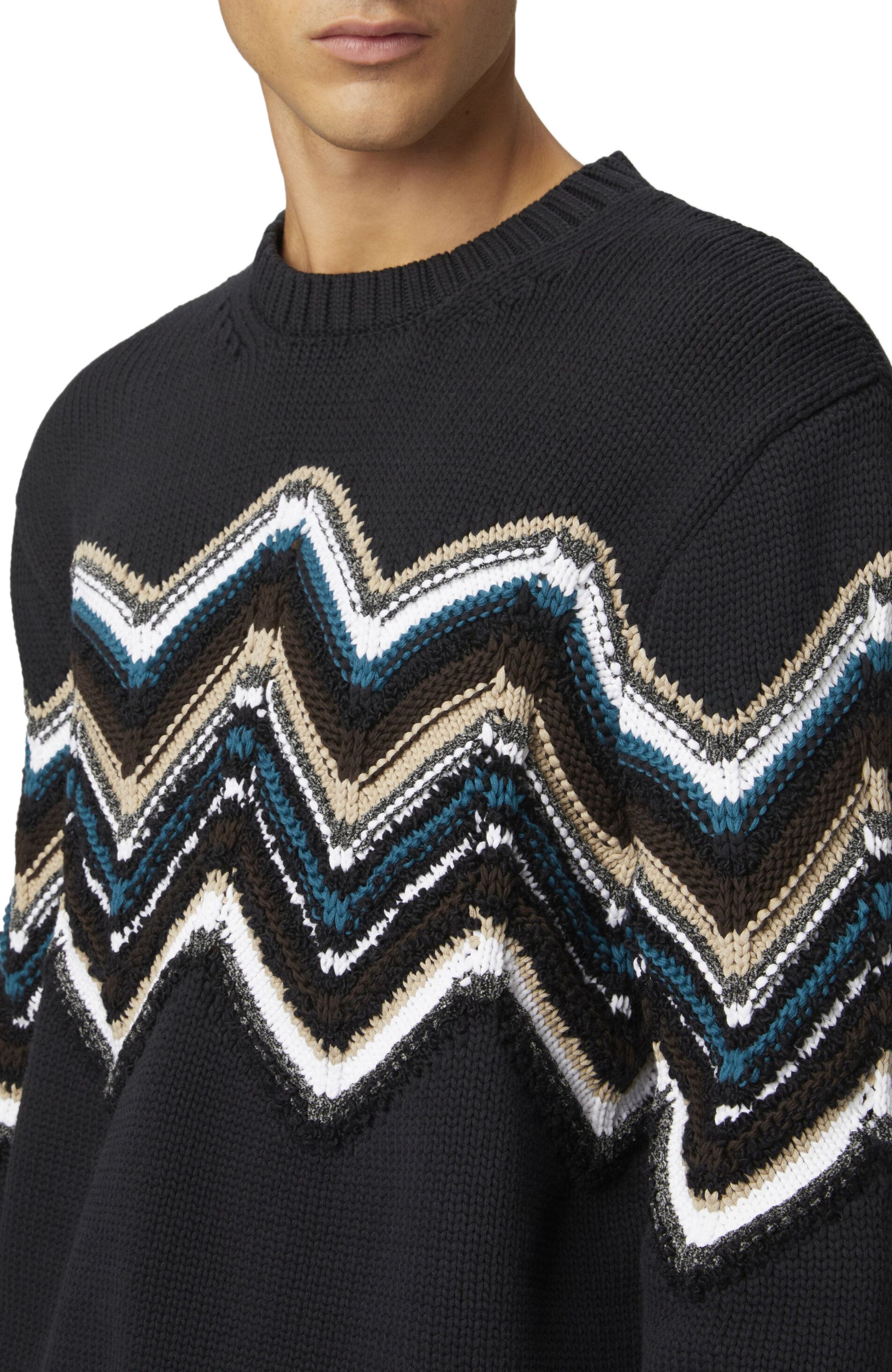 Missoni Crewneck Pullover In Wool And Cotton Blend With Macro Zig Zag