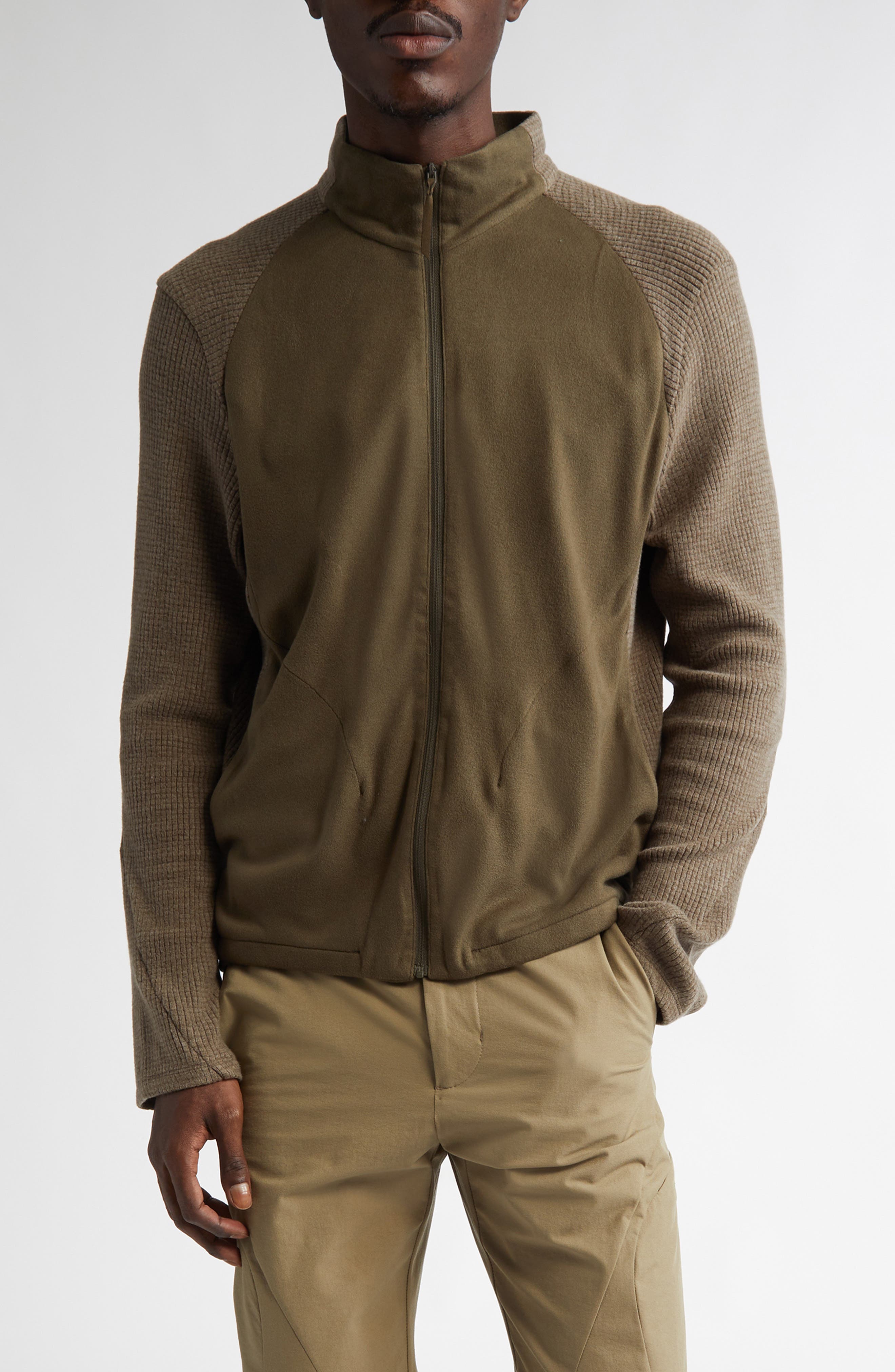 POST ARCHIVE FACTION 7.0 Fleece Zip Cardigan Right_Olive Green