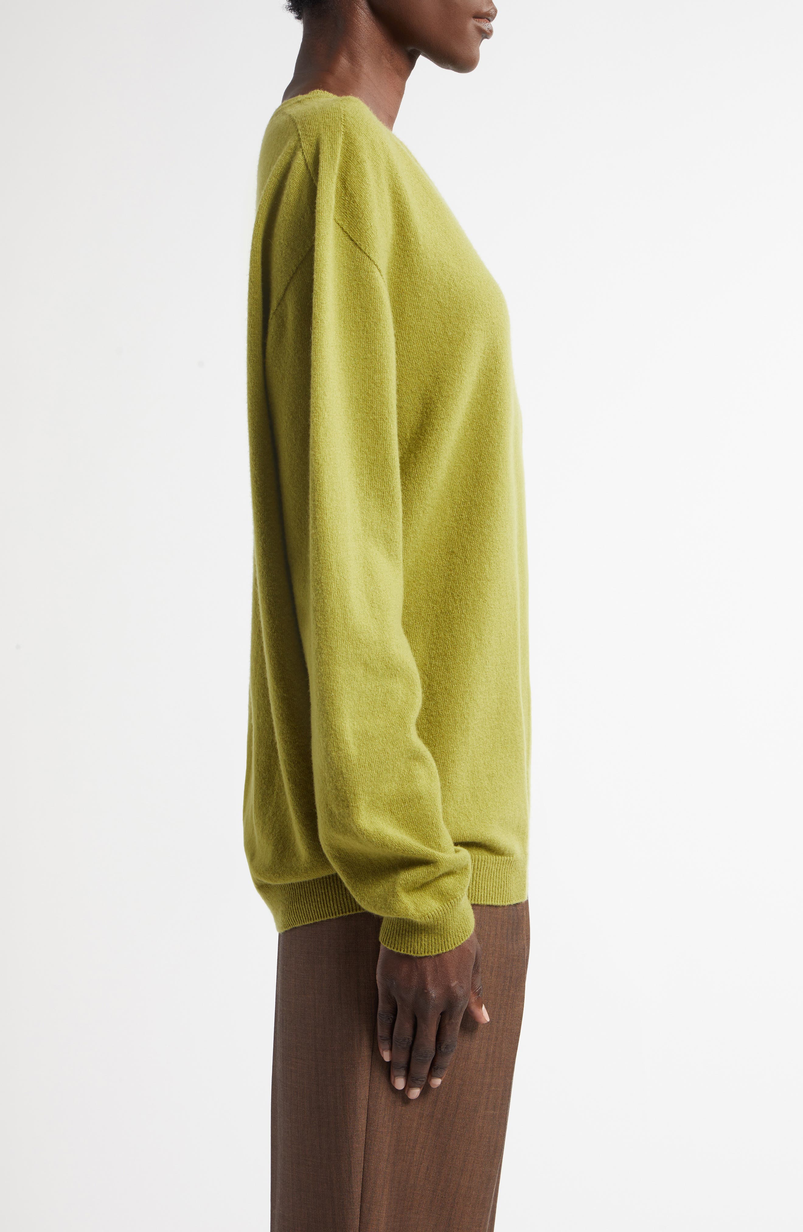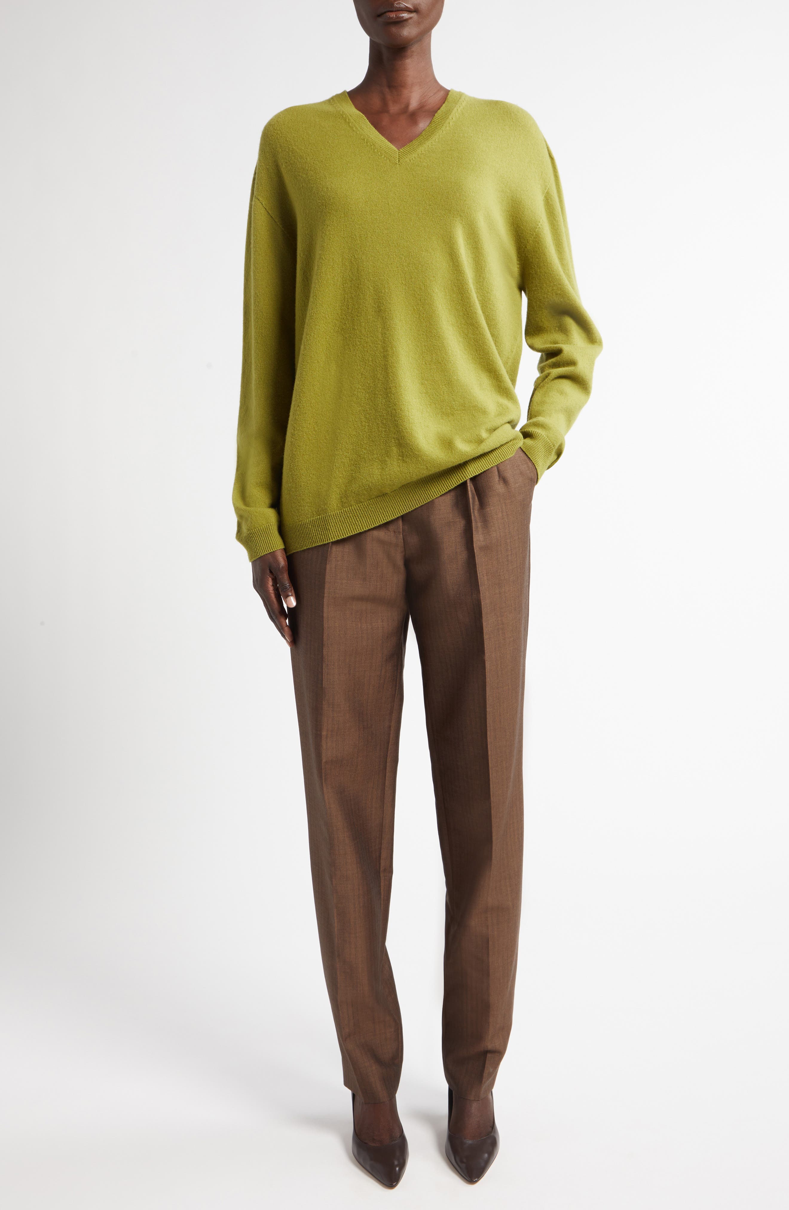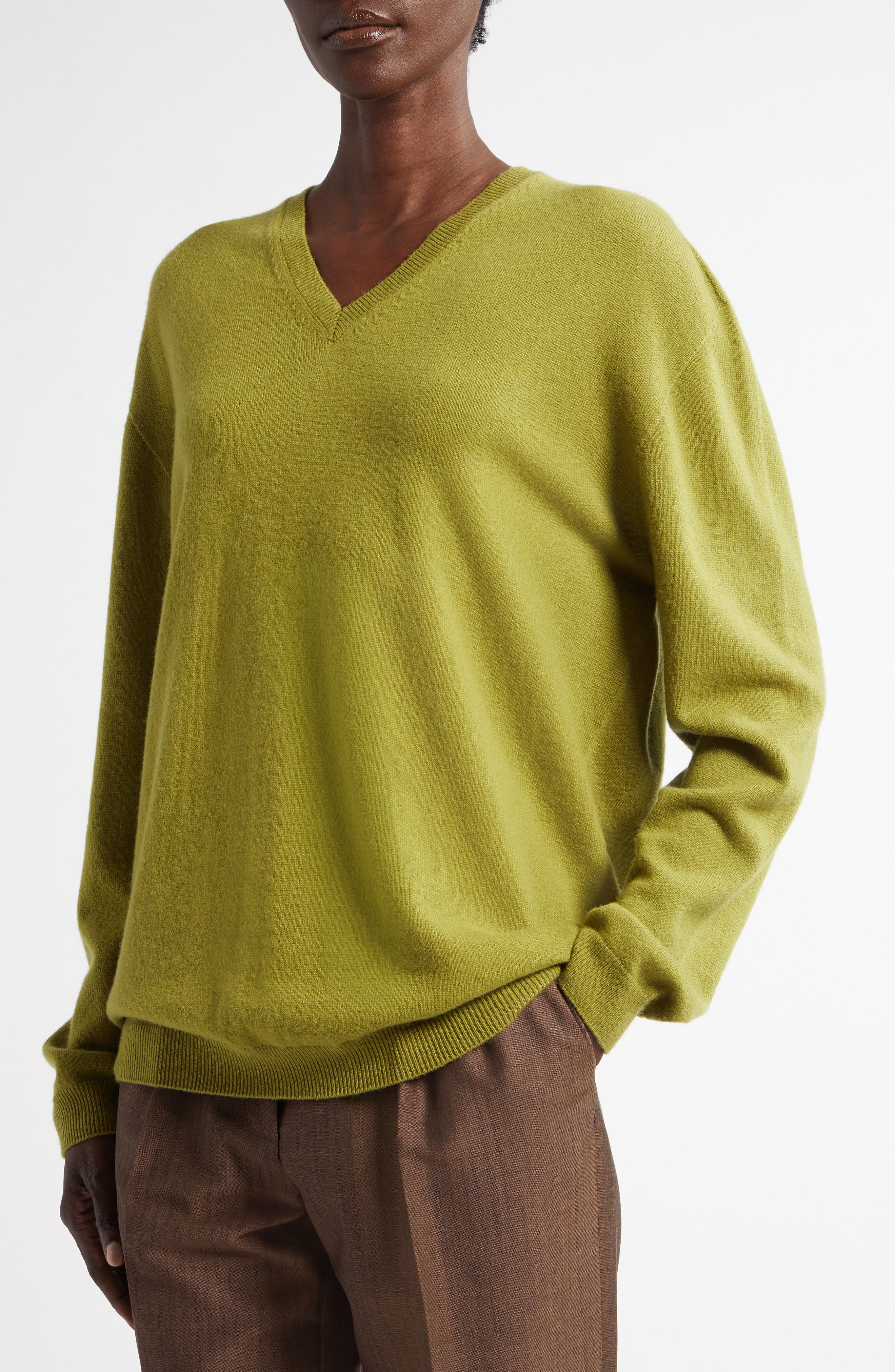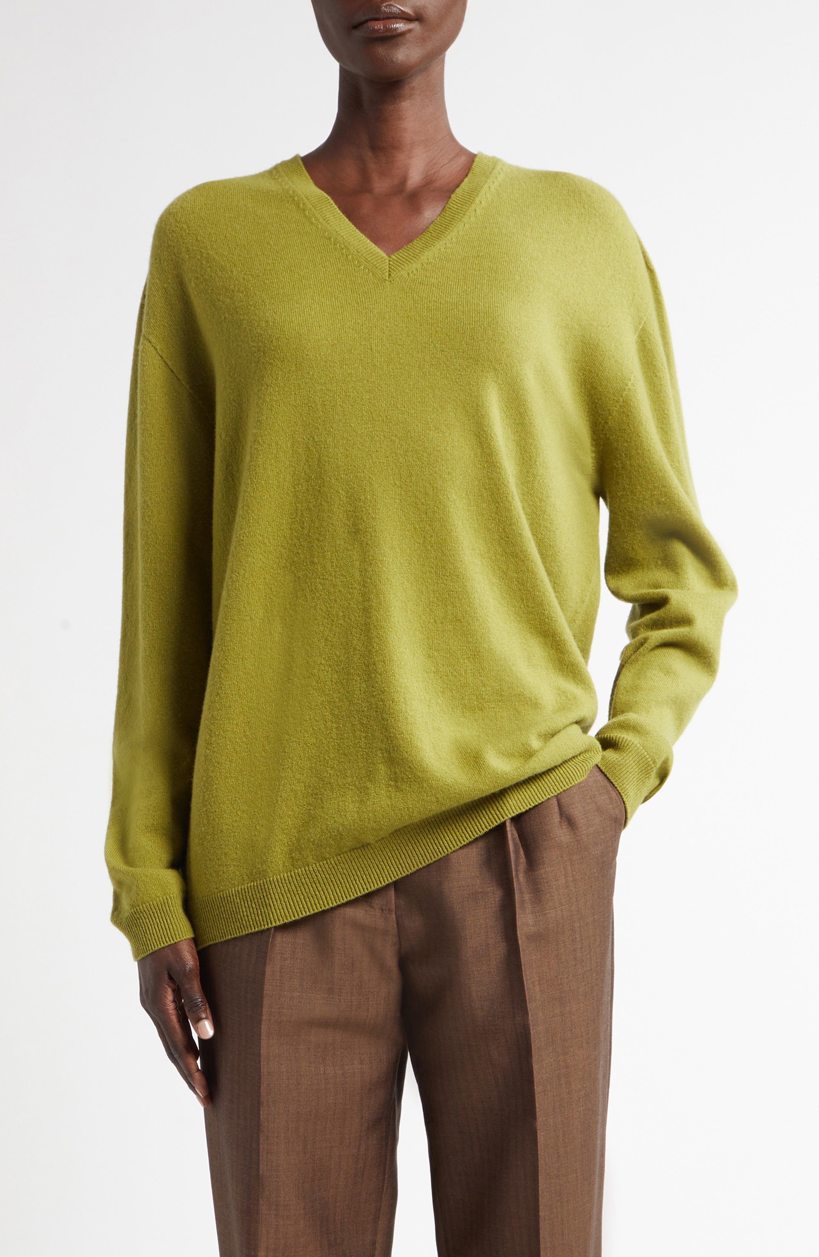 The Row Isaora Cashmere V-Neck Sweater_Mustard Green