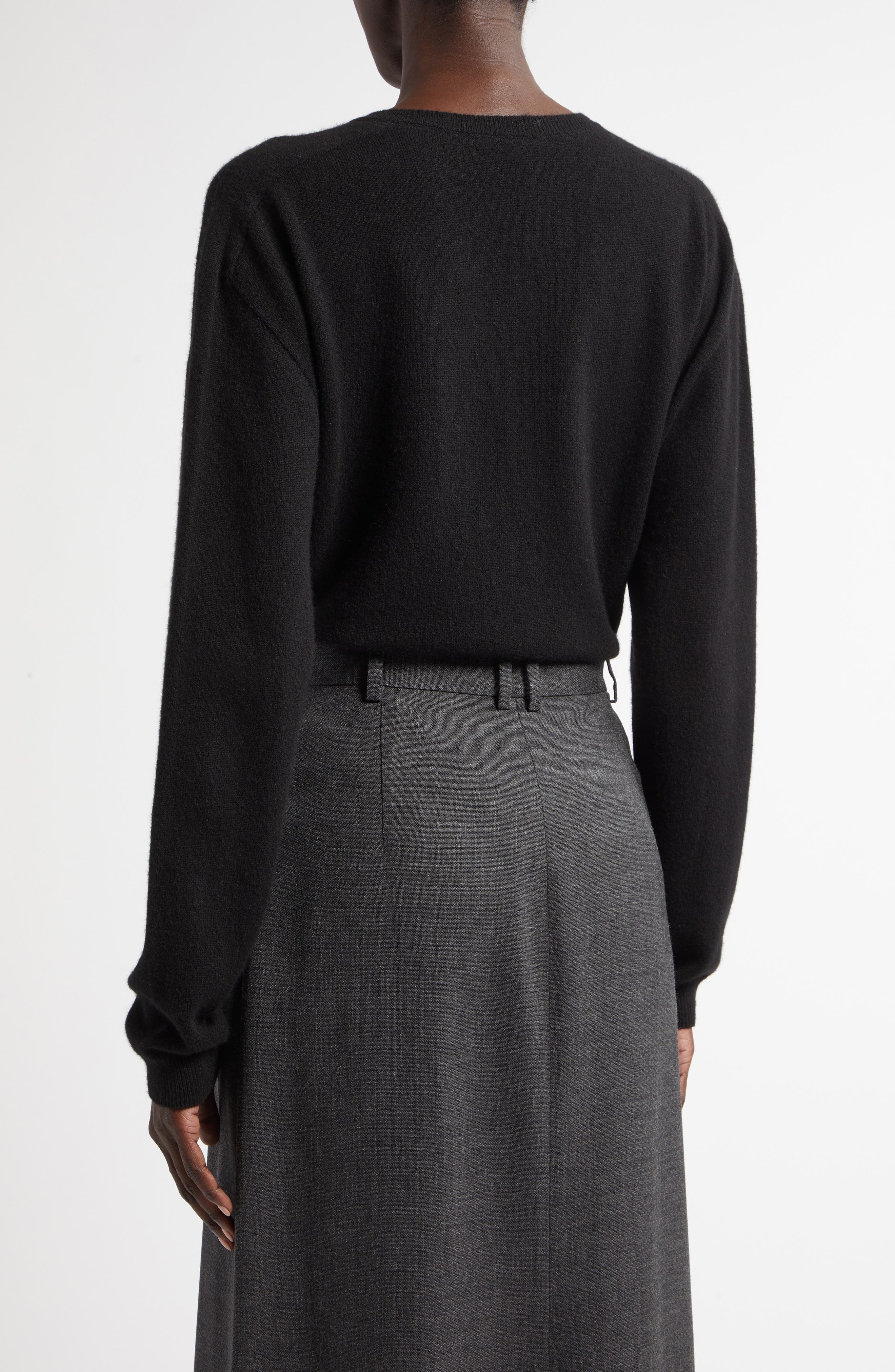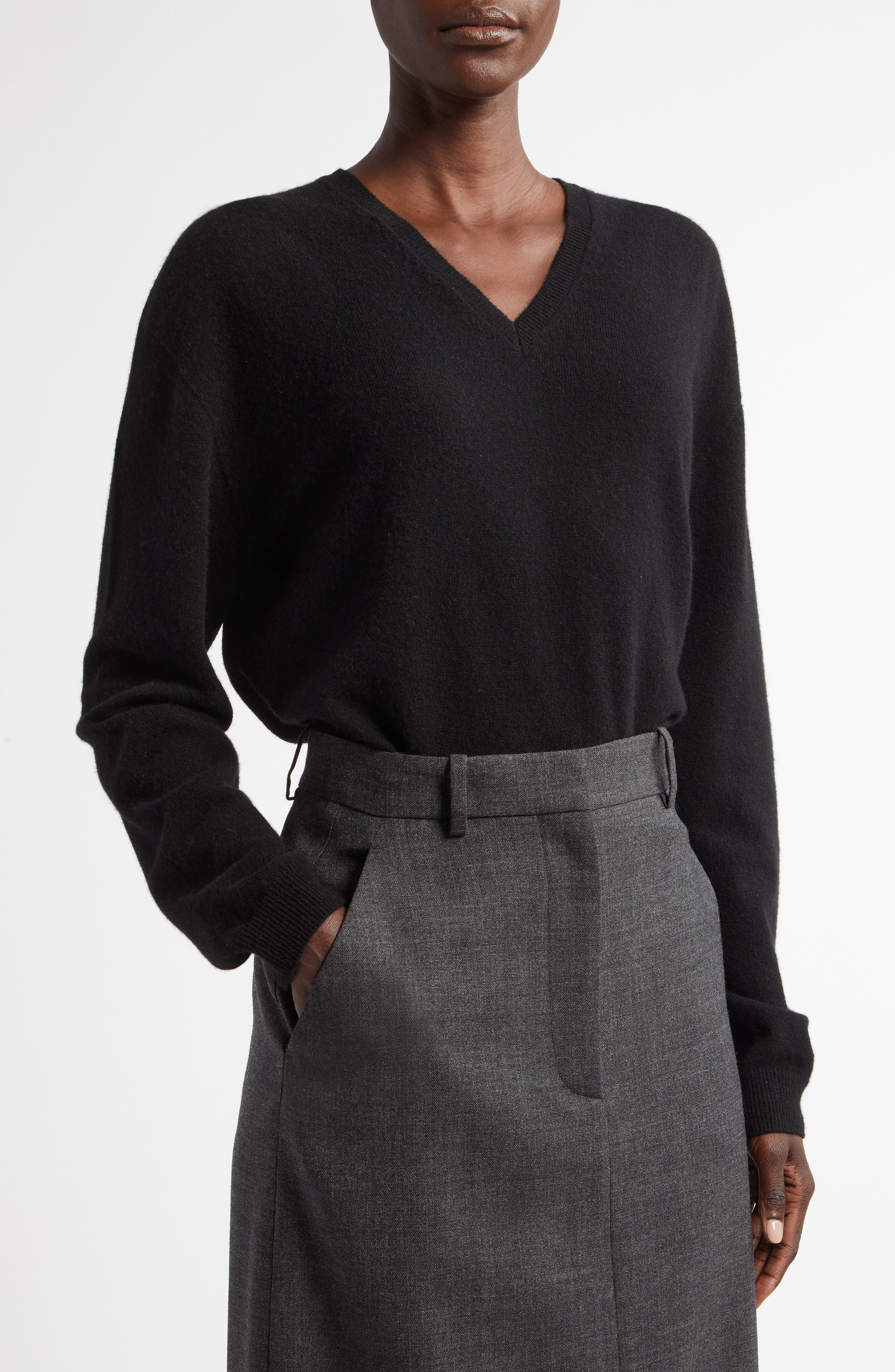 The Row Isaora Cashmere V-Neck Sweater_Enzyme Black
