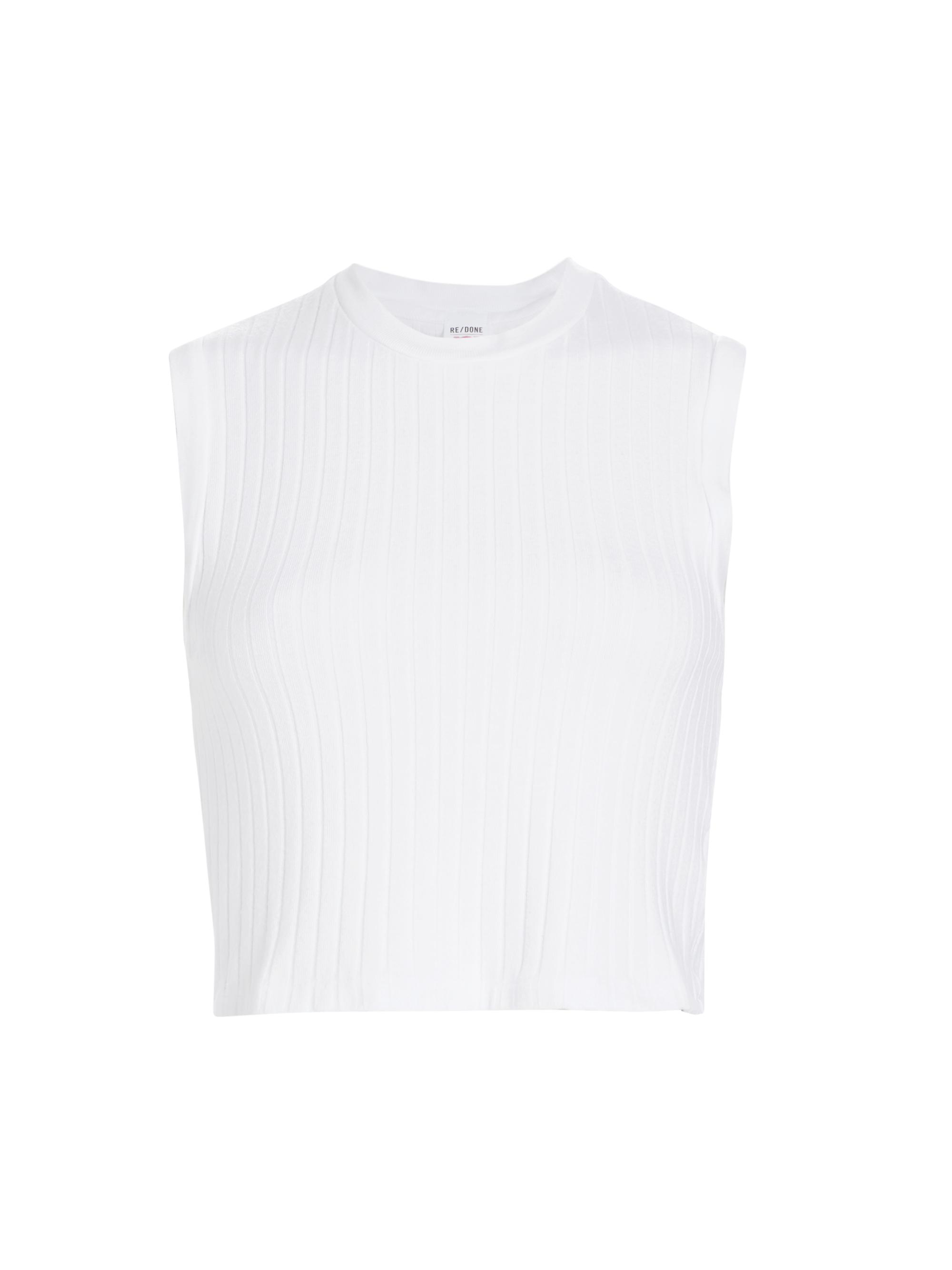 Re/done Cropped Cotton-Blend Muscle Tank OPTIC WHITE