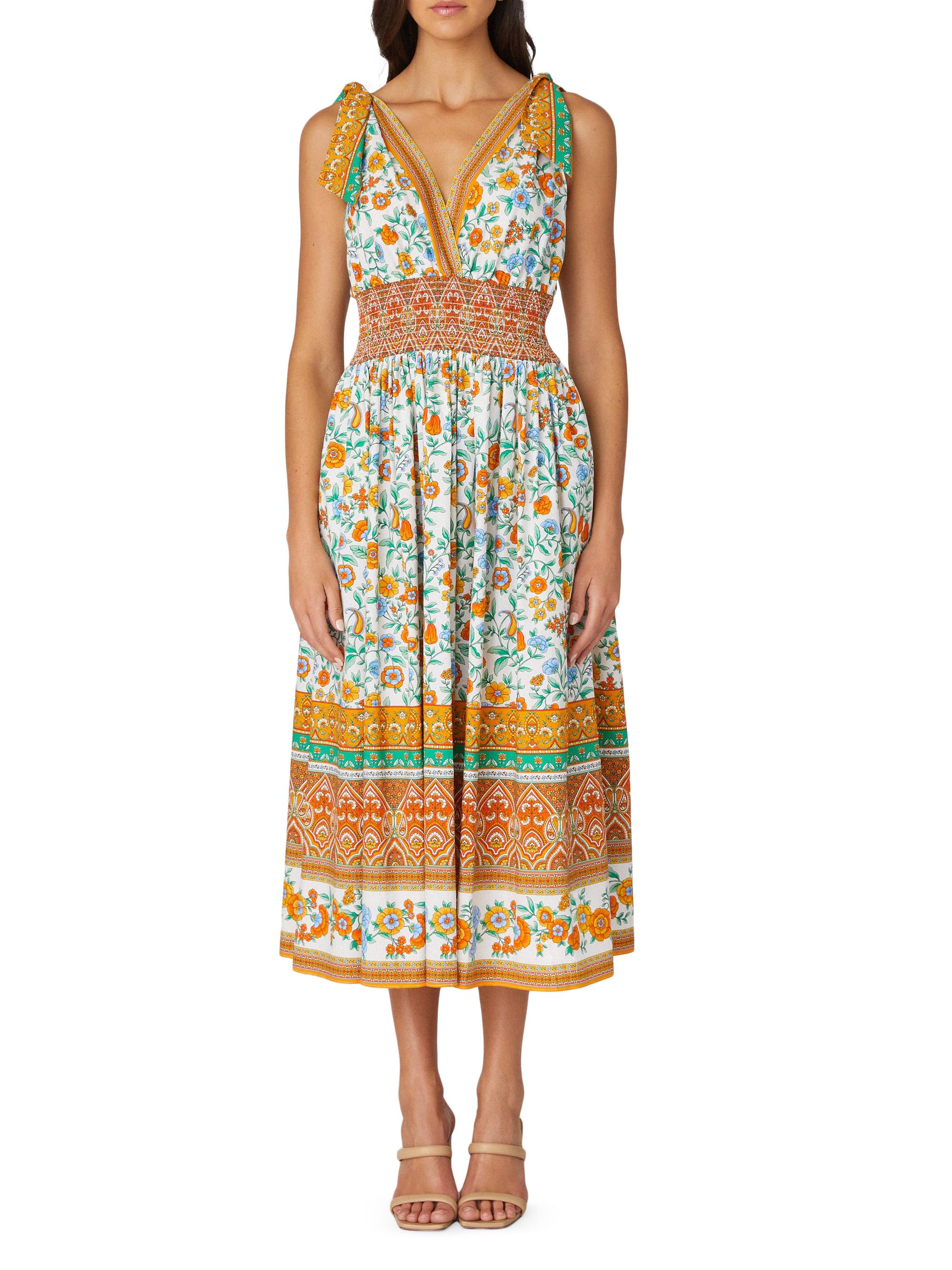 Shoshanna Bree Floral V-Neck Midi-Dress