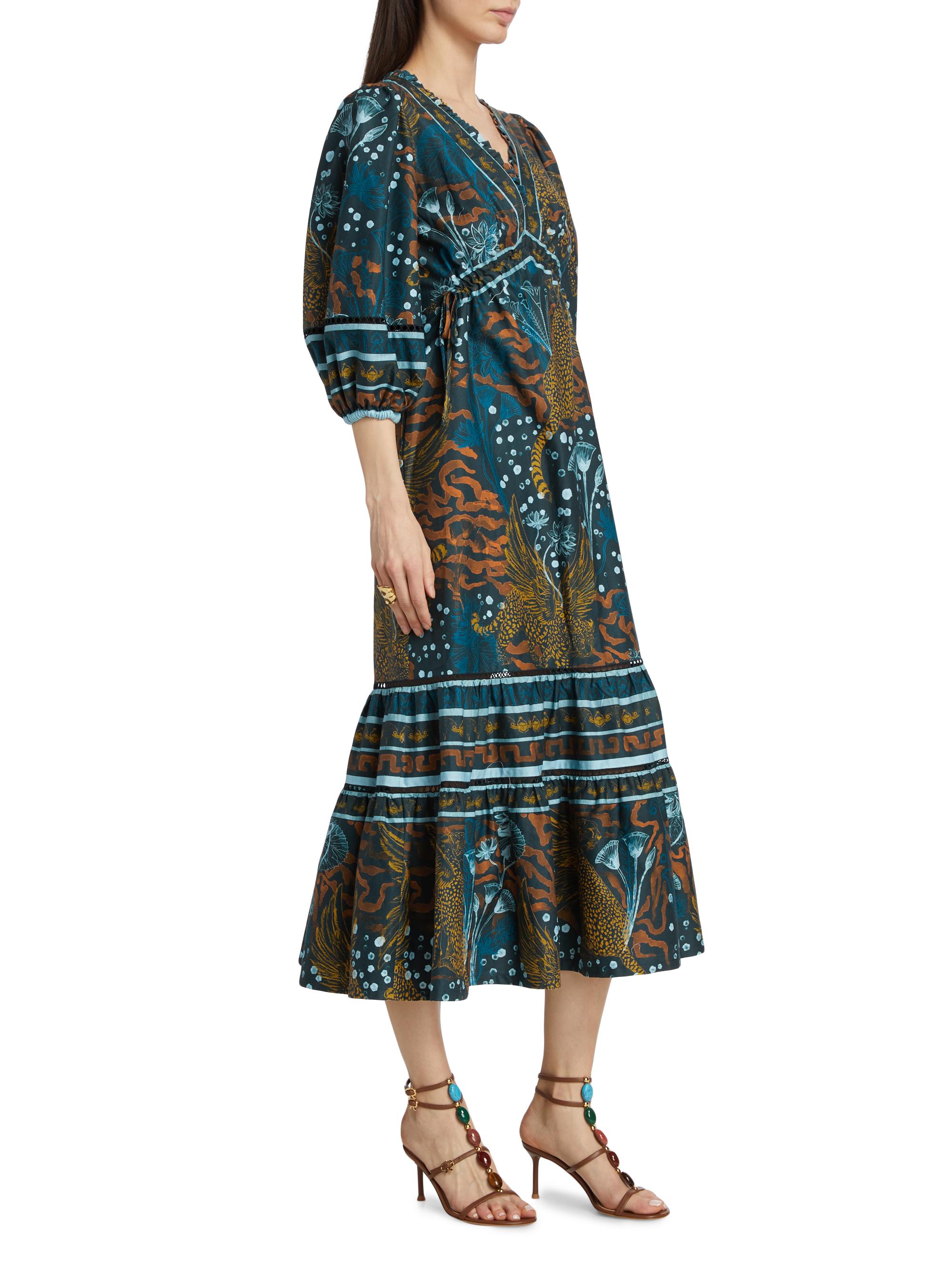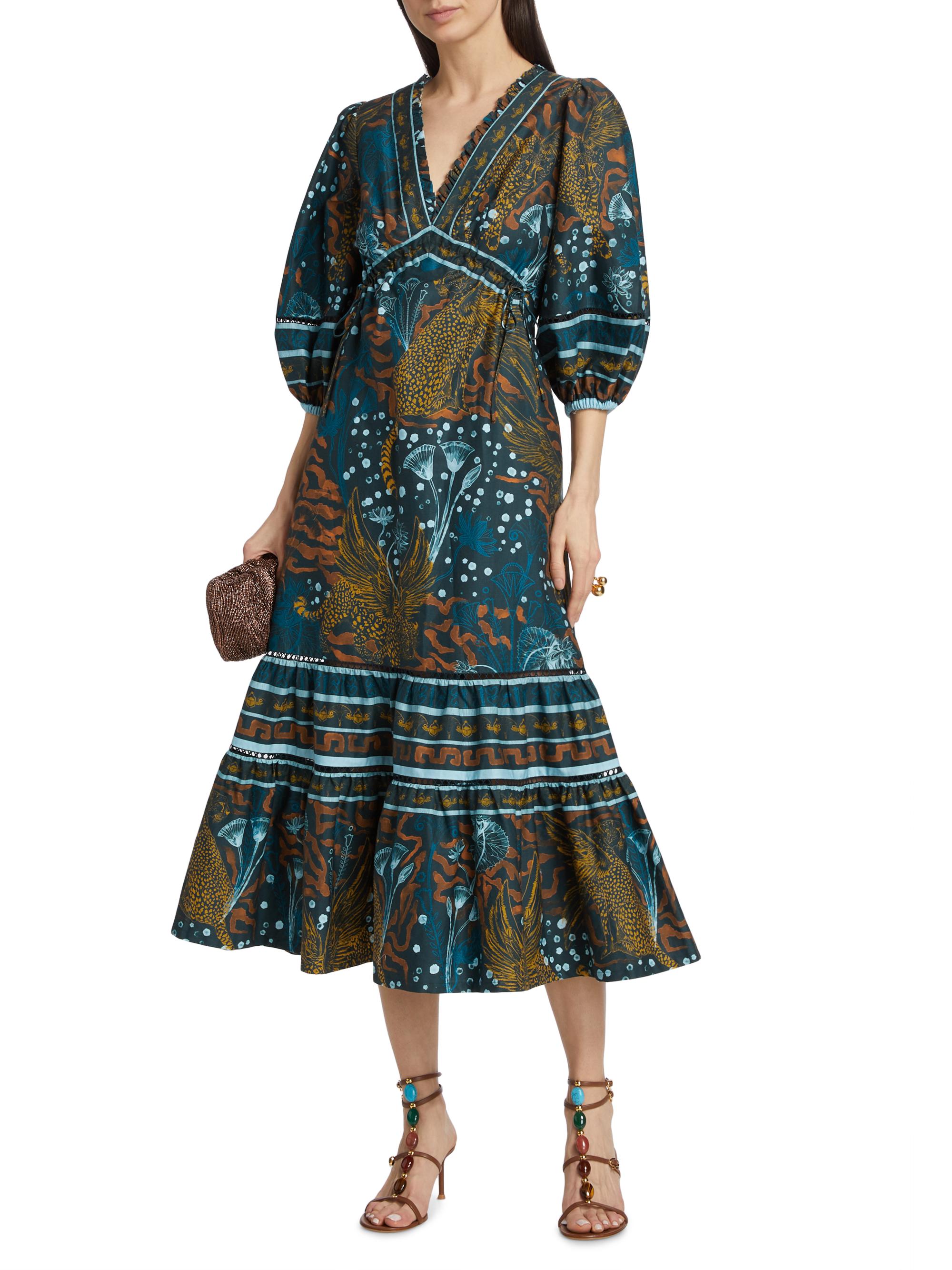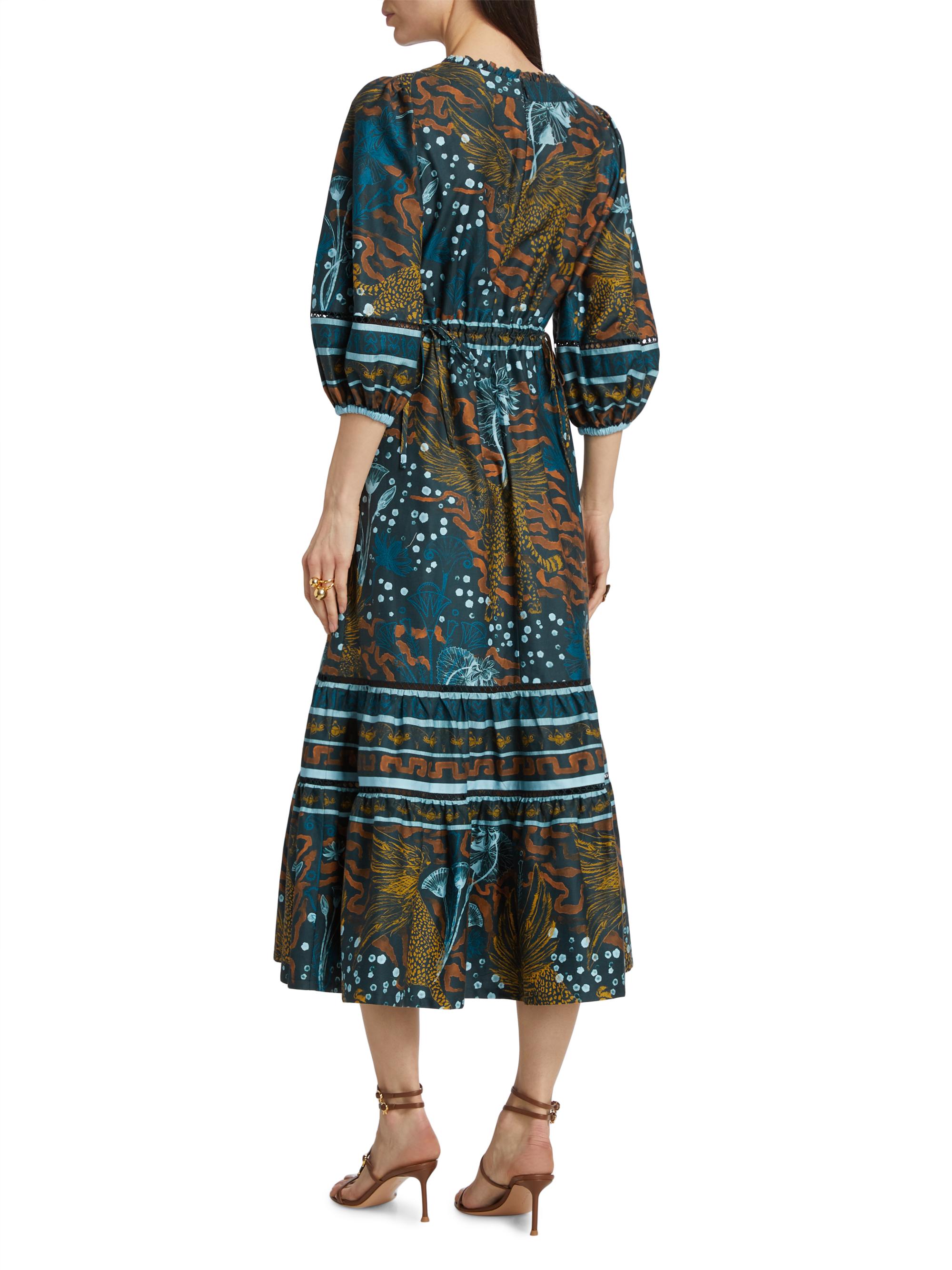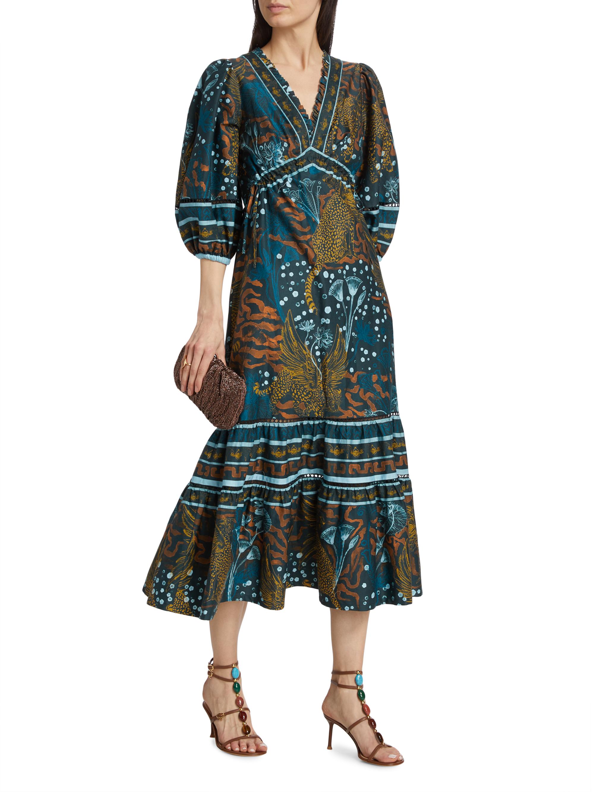 Marchesa Rosa Abstract Cotton Midi-Dress