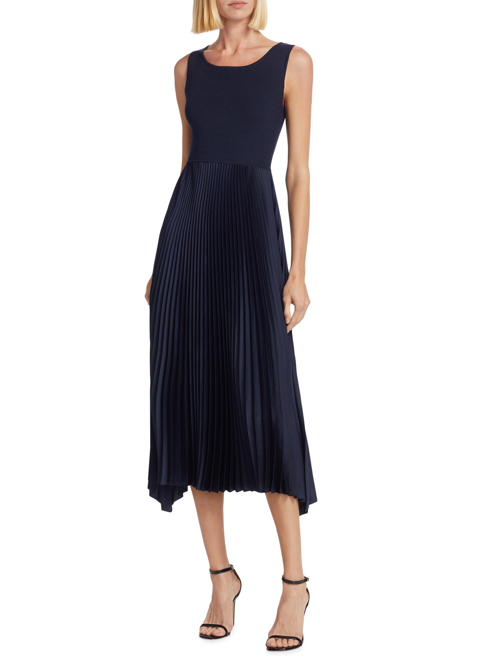 Elie Tahari The Mave Mixed Media Dress PEACOAT NAVY
