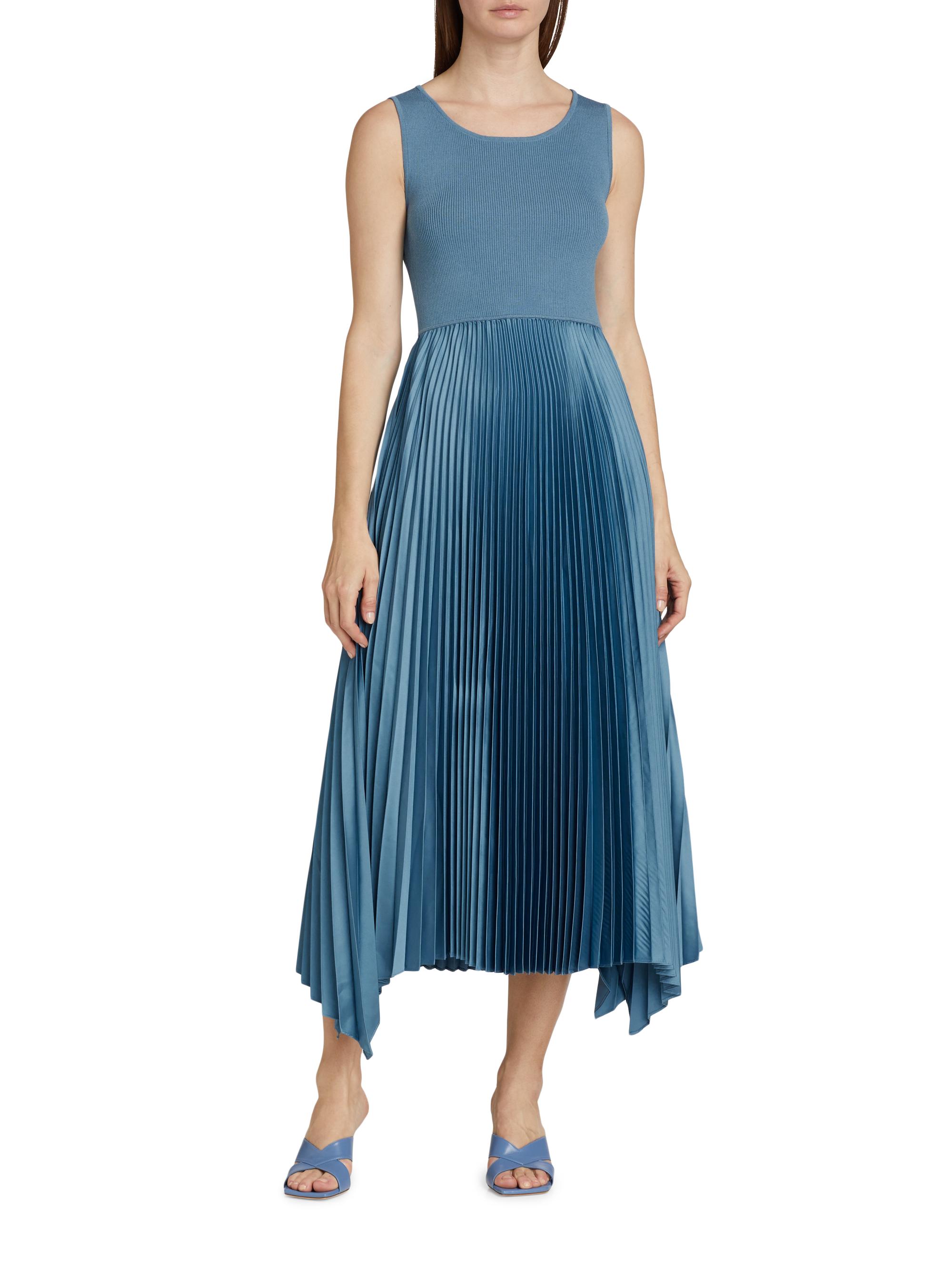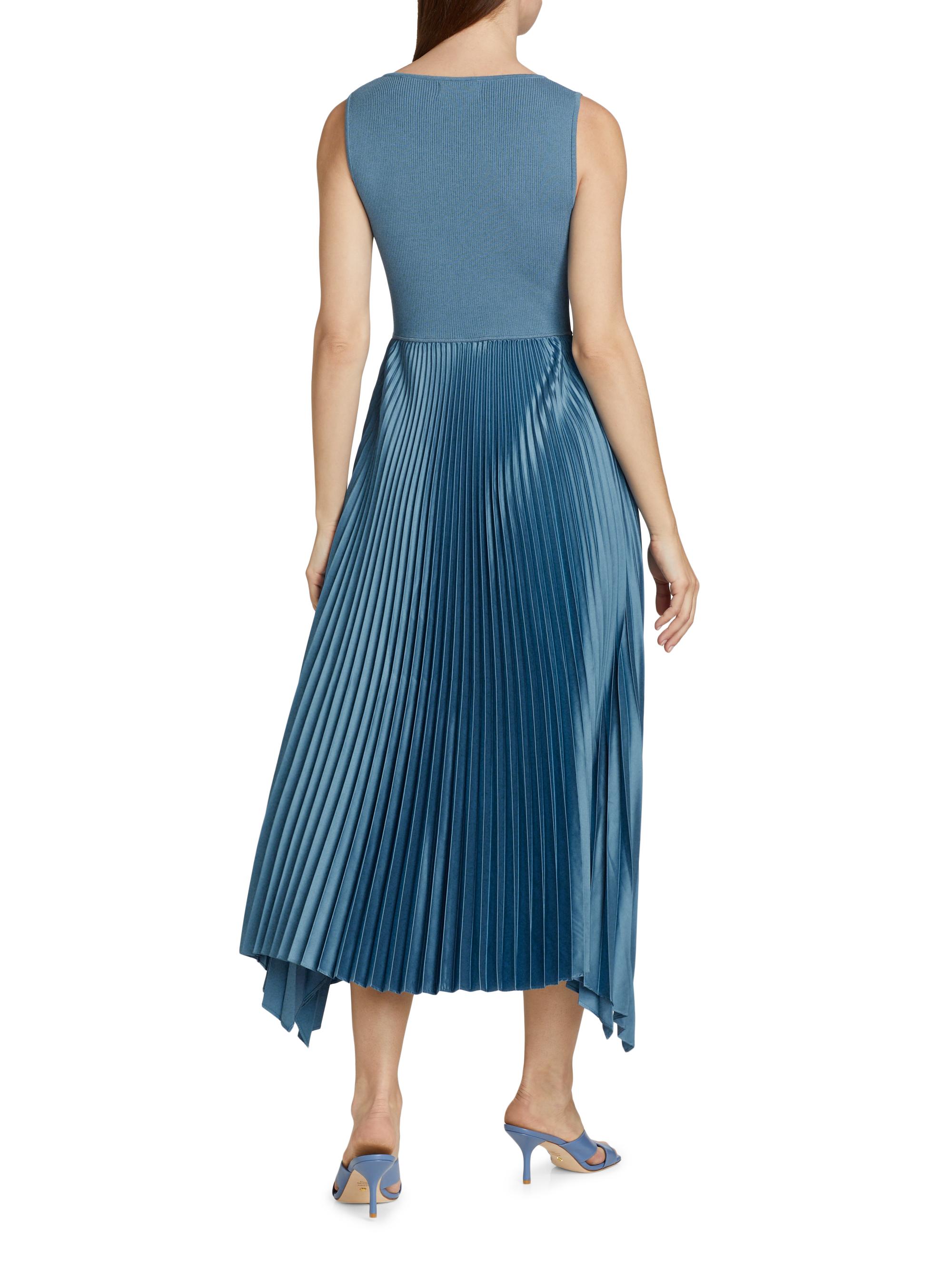 Elie Tahari The Mave Mixed Media Dress BLUE BREEZE