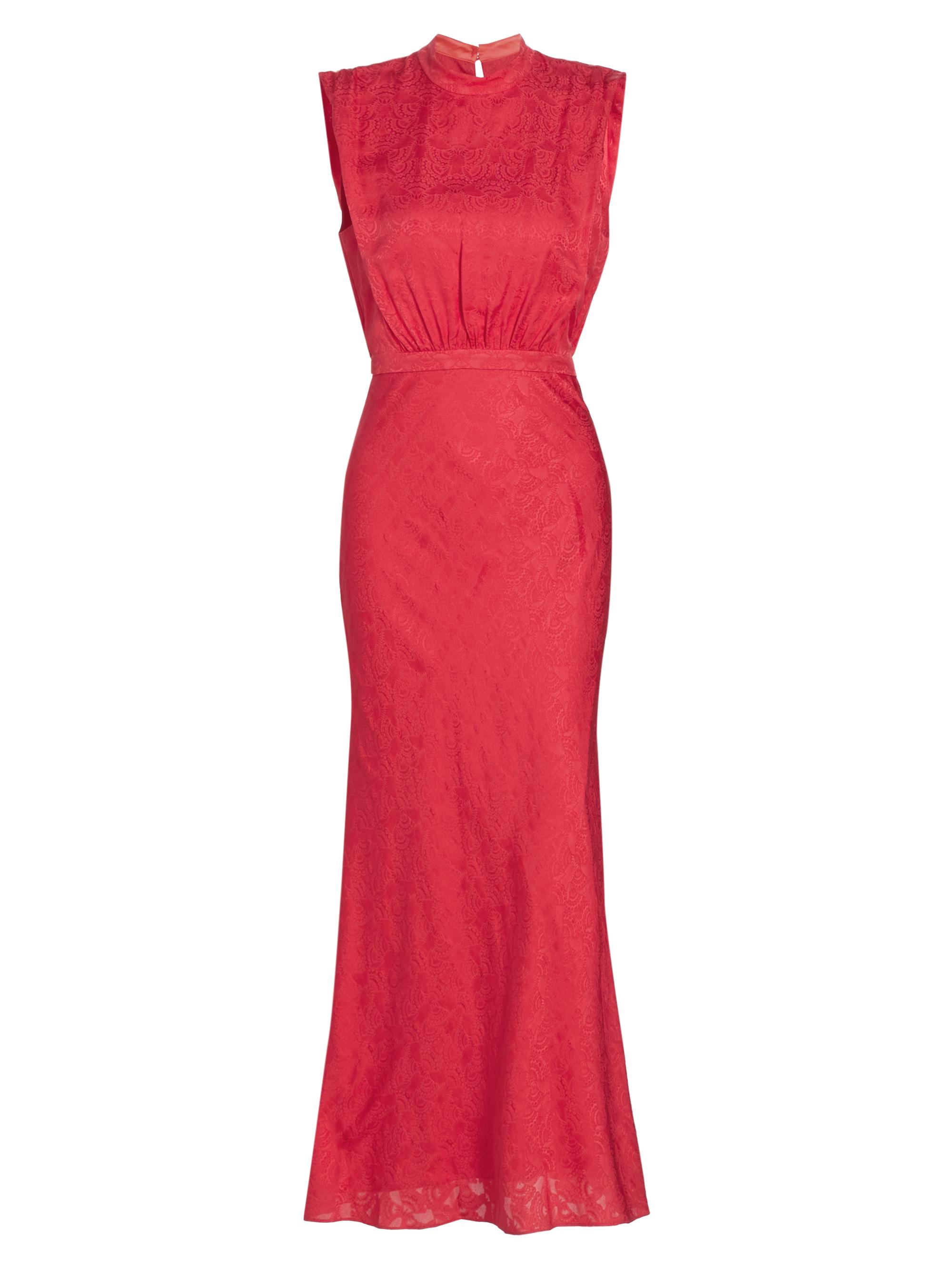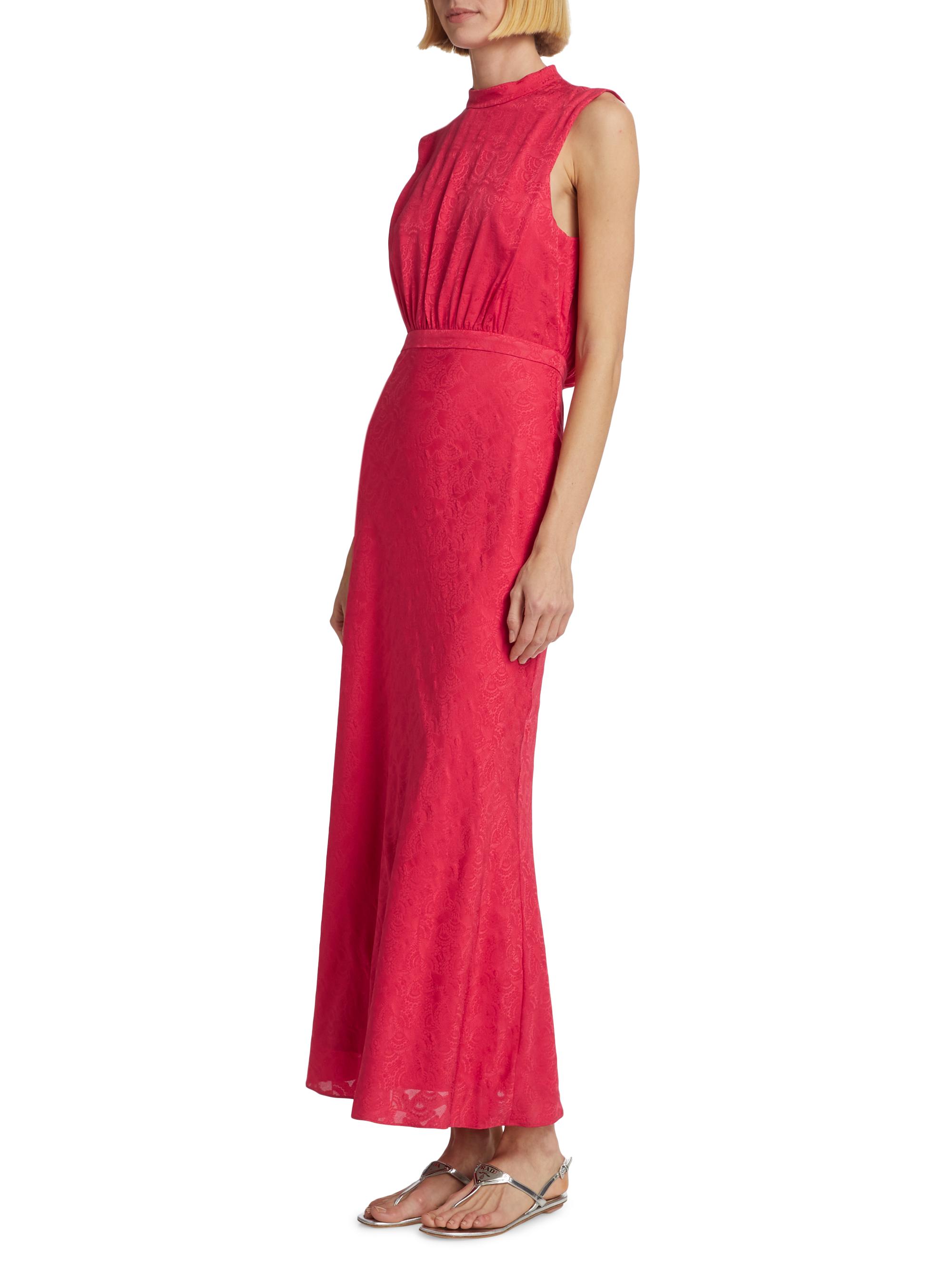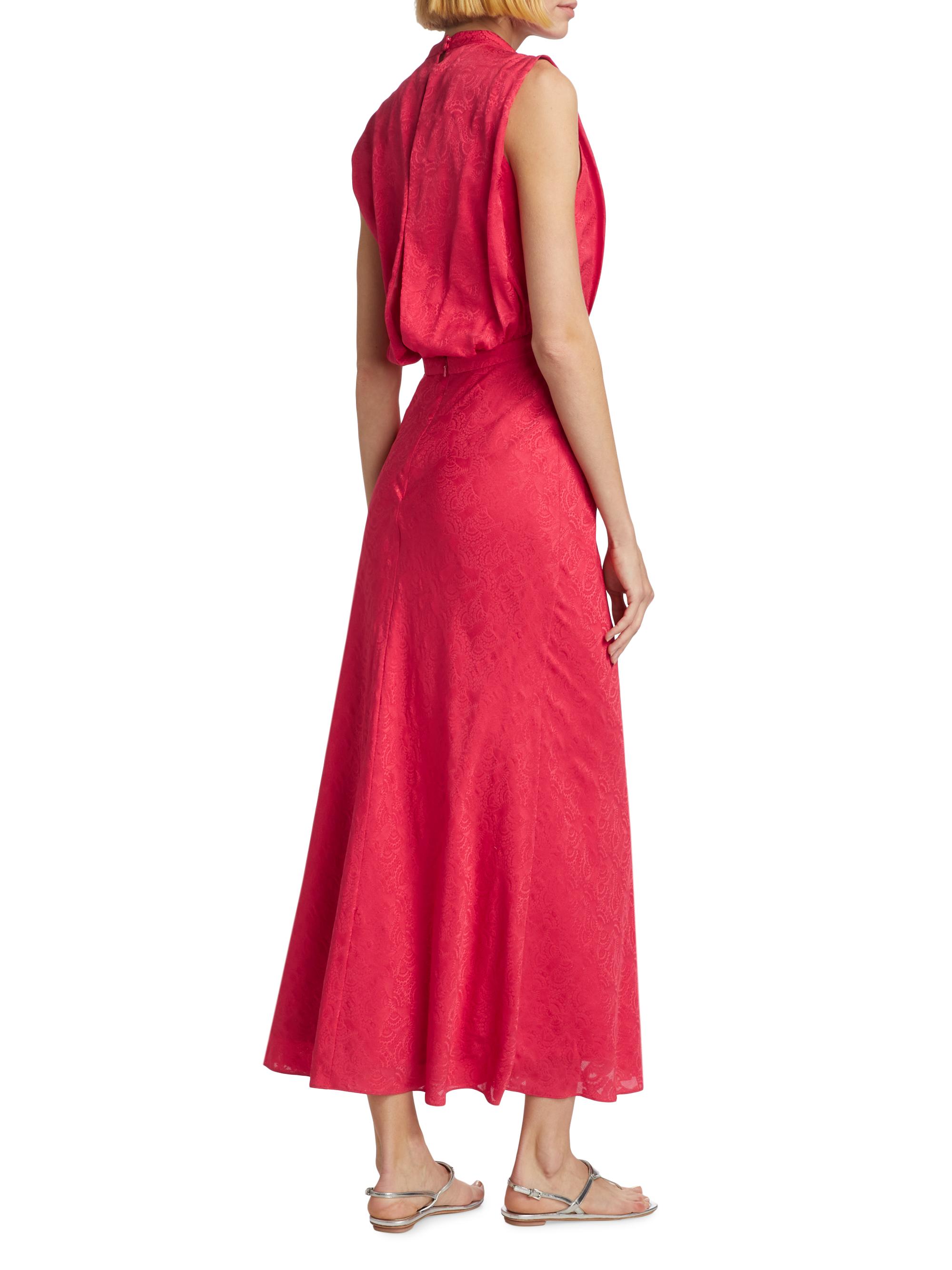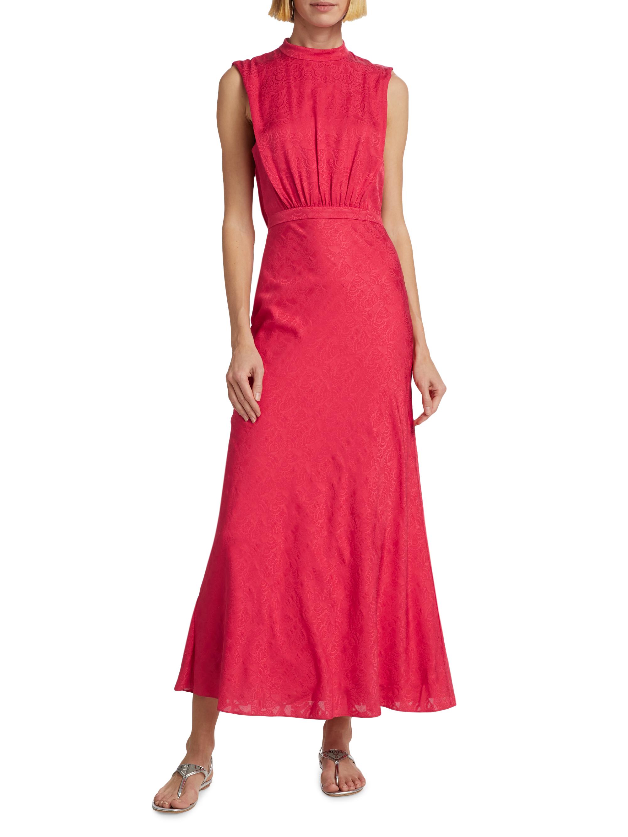 Saloni Stamped Silk Sleeveless Midi-Dress HIBISCUS