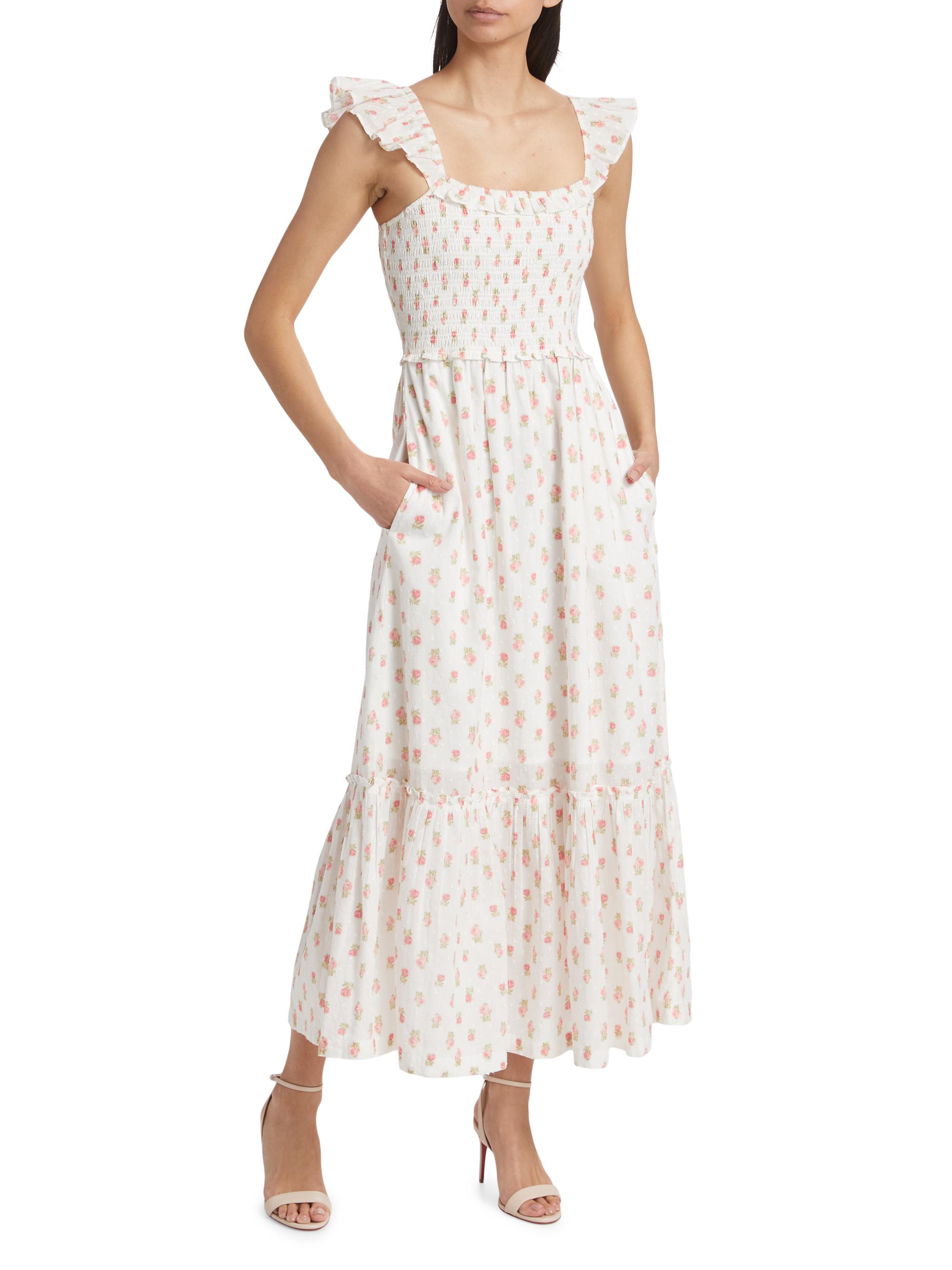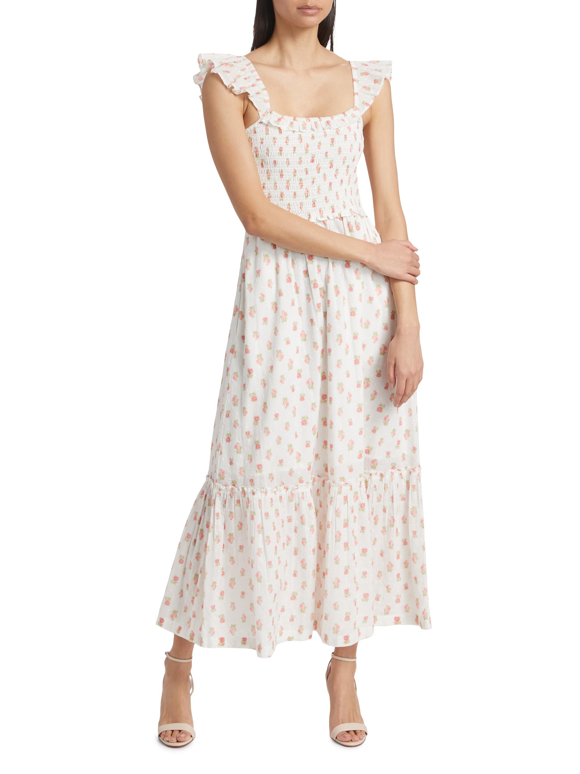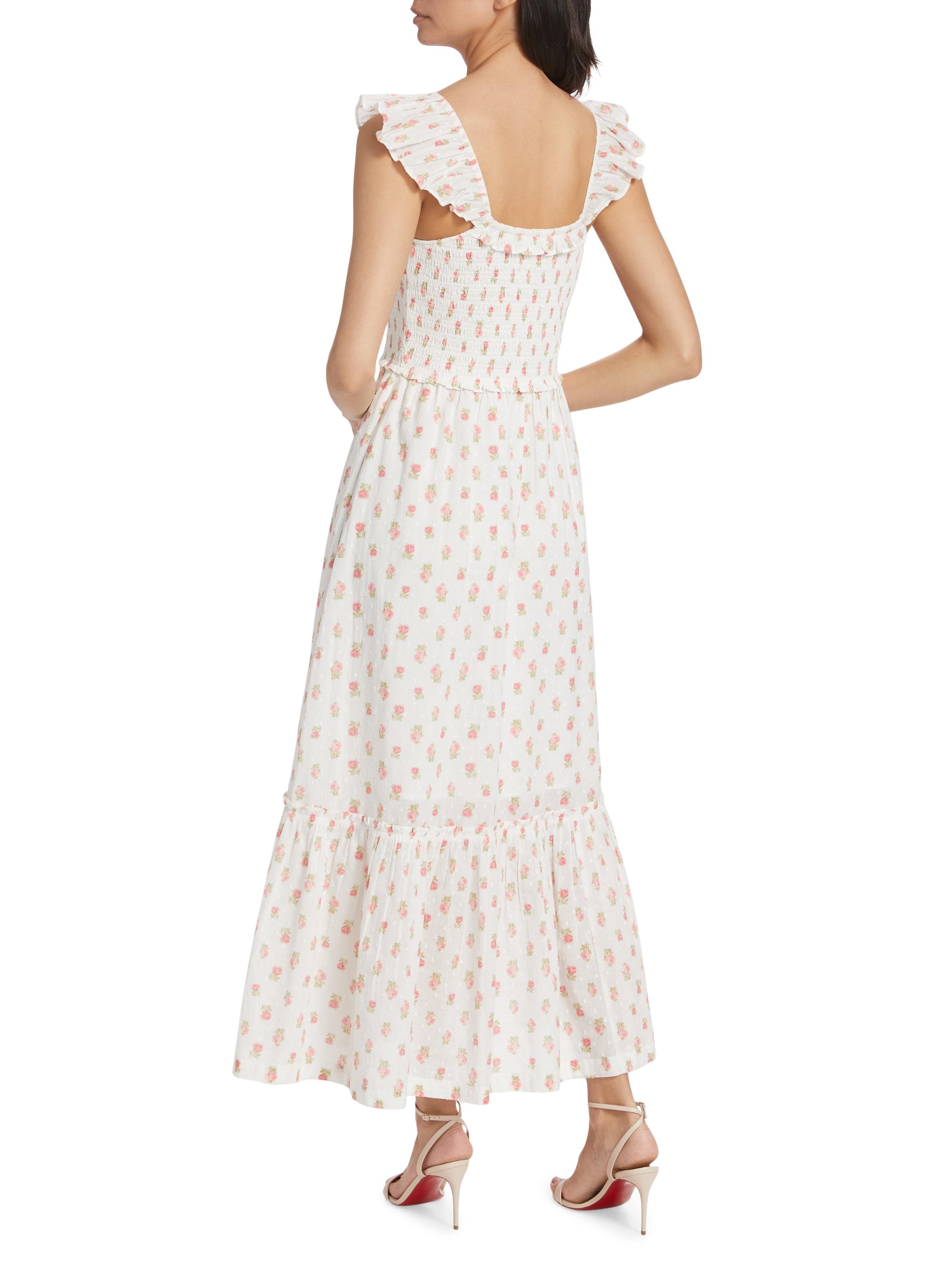 LoveShackFancy Guinevere Floral Smocked Cotton Maxi Dress