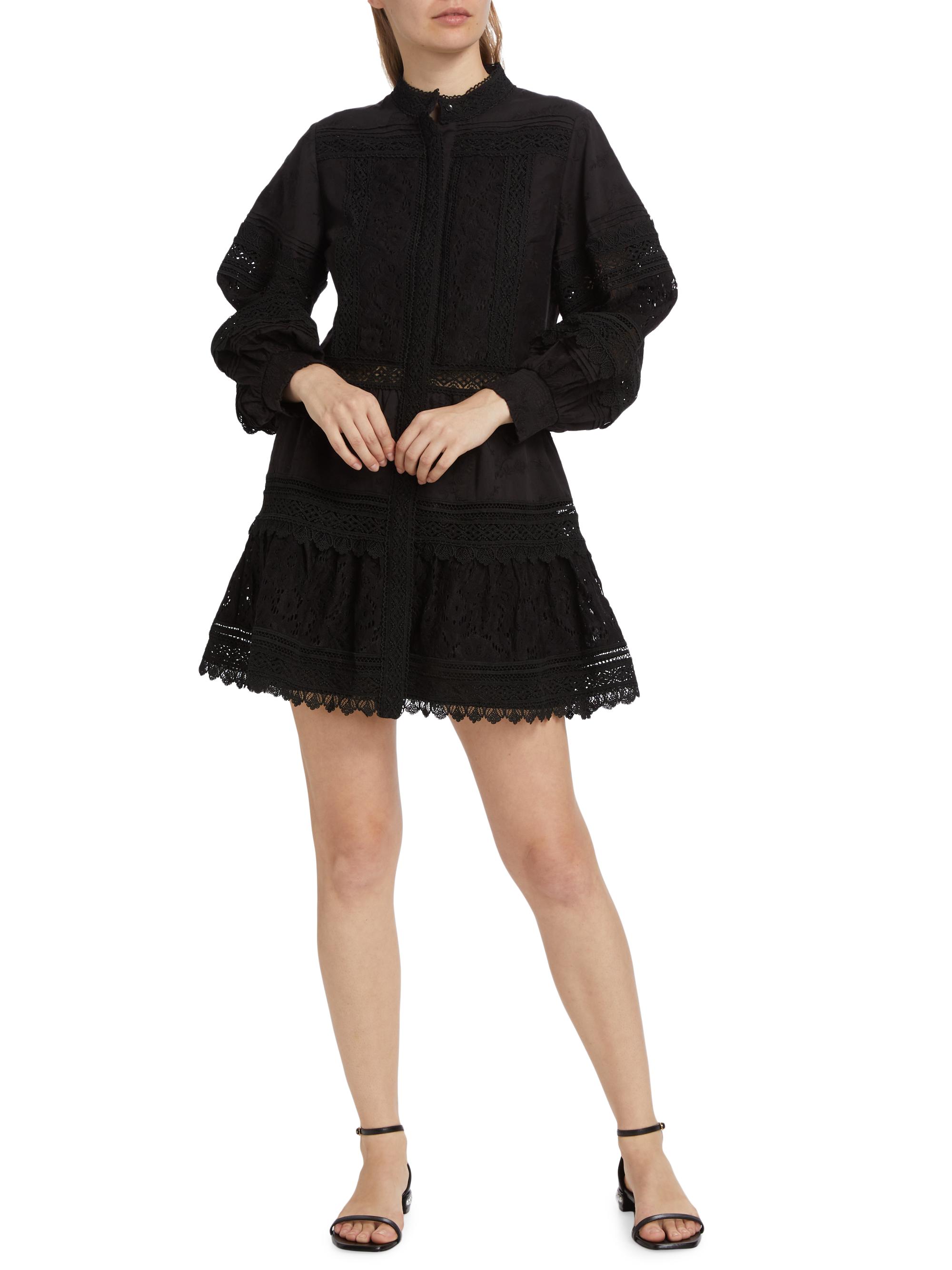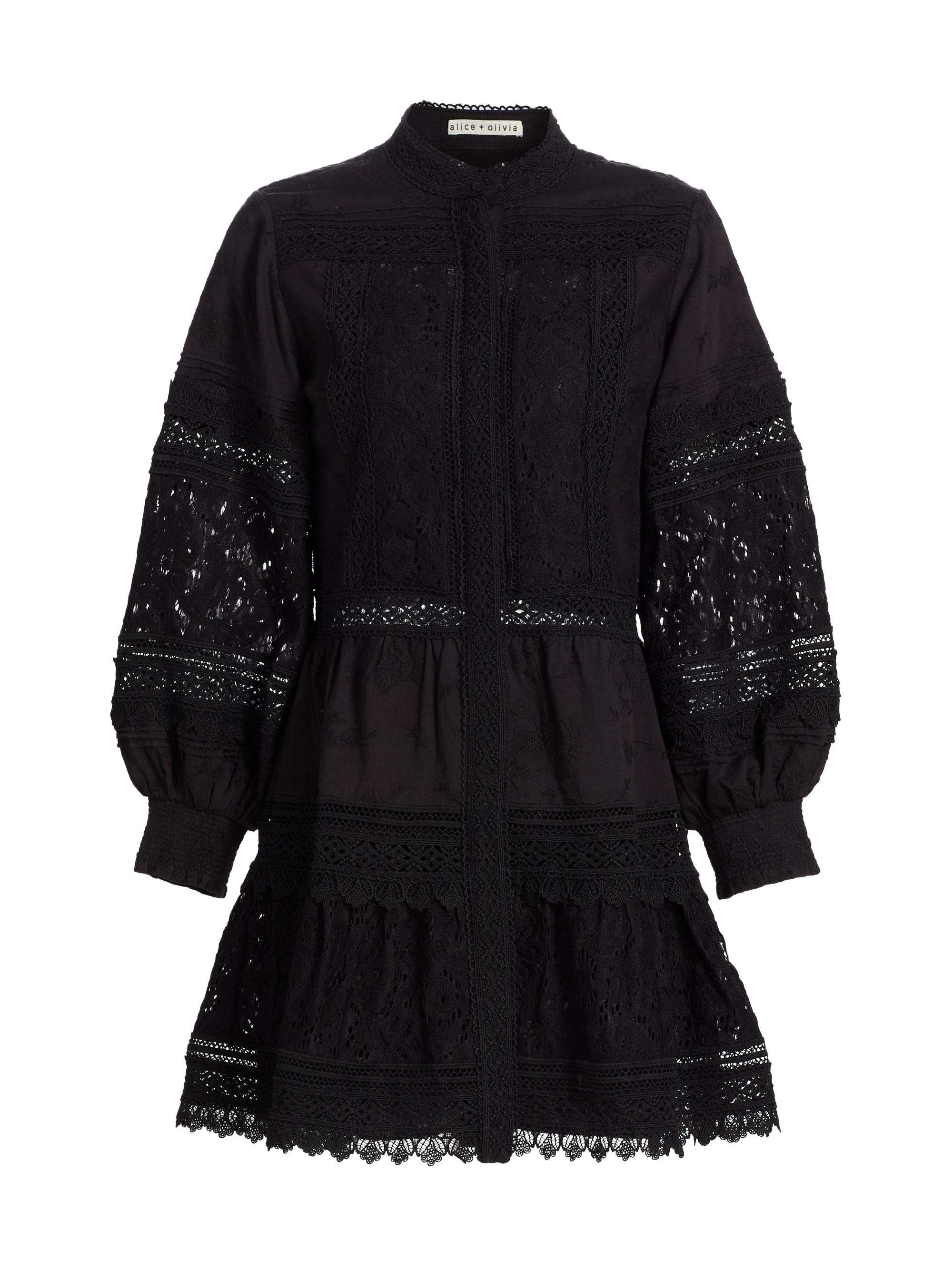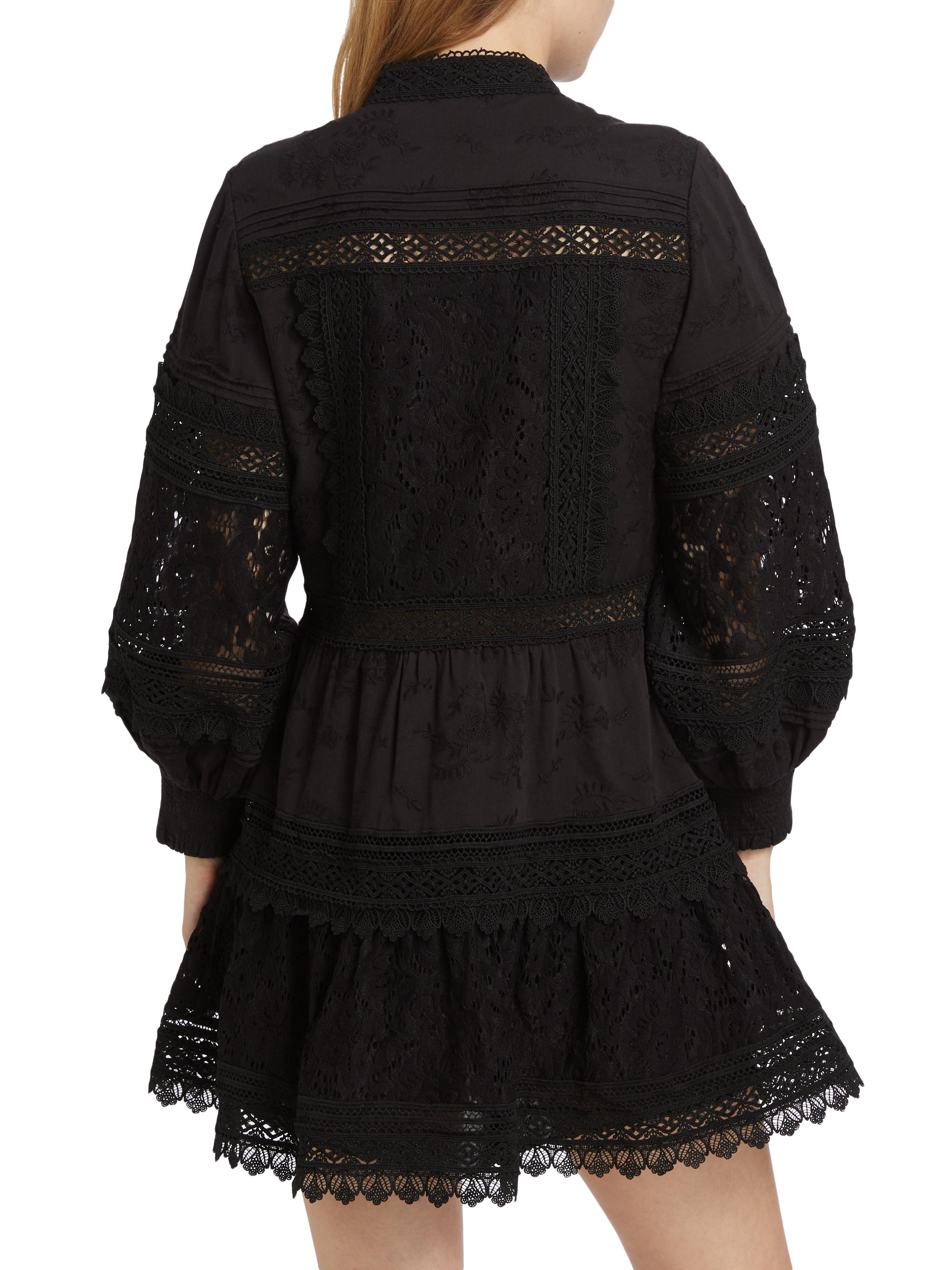 Alice Olivia Cailin Embroidered Minidress BLACK