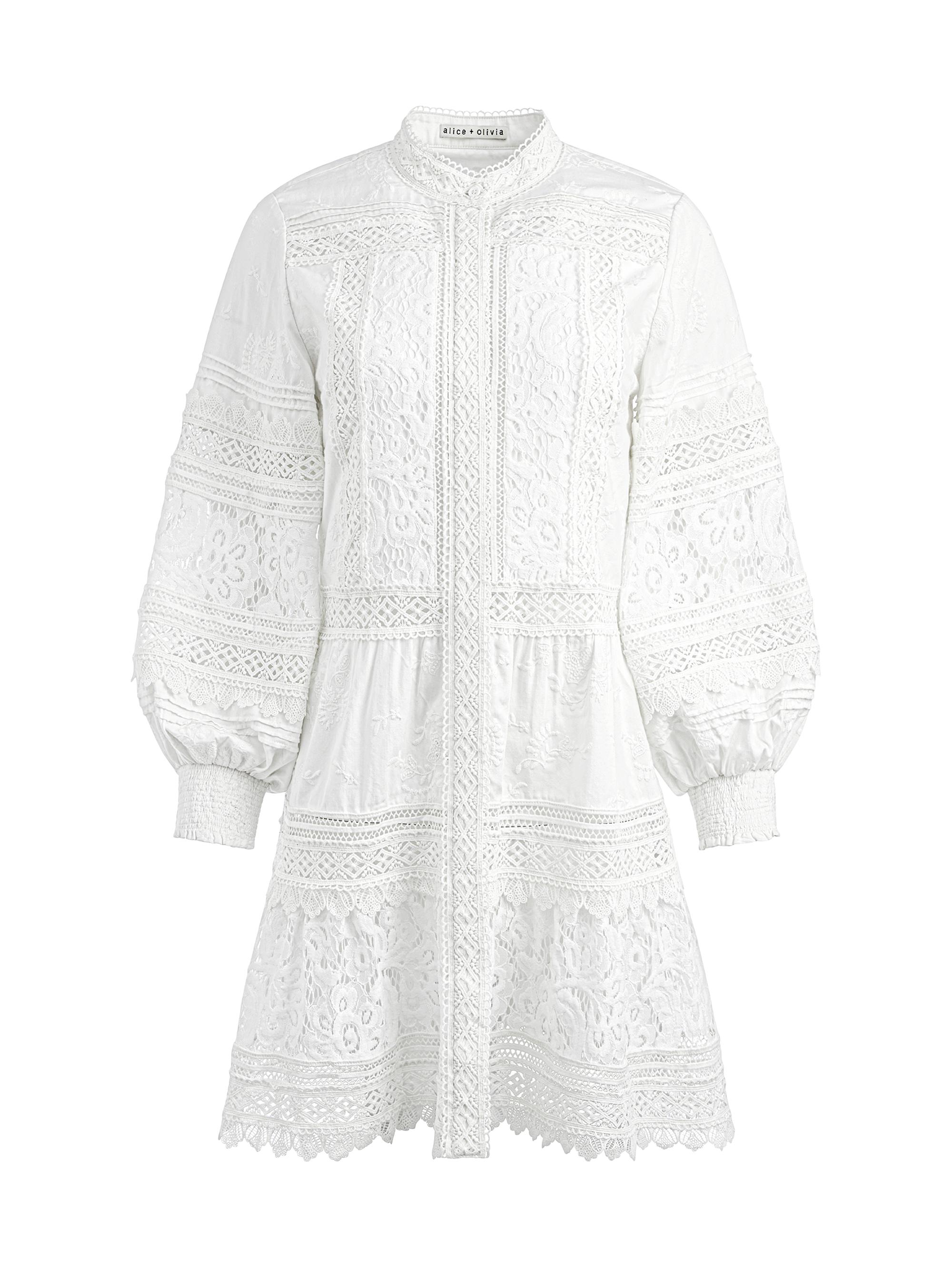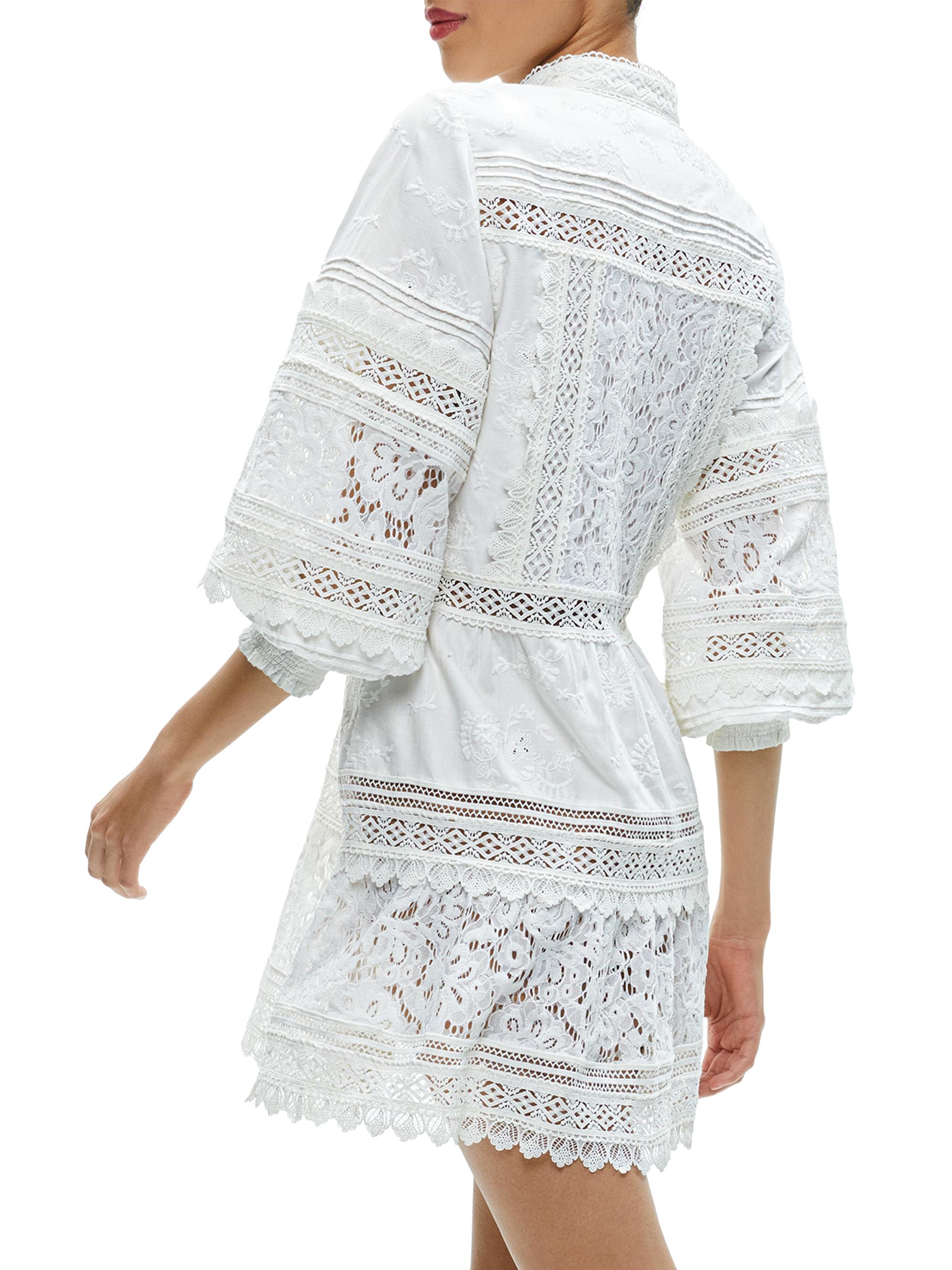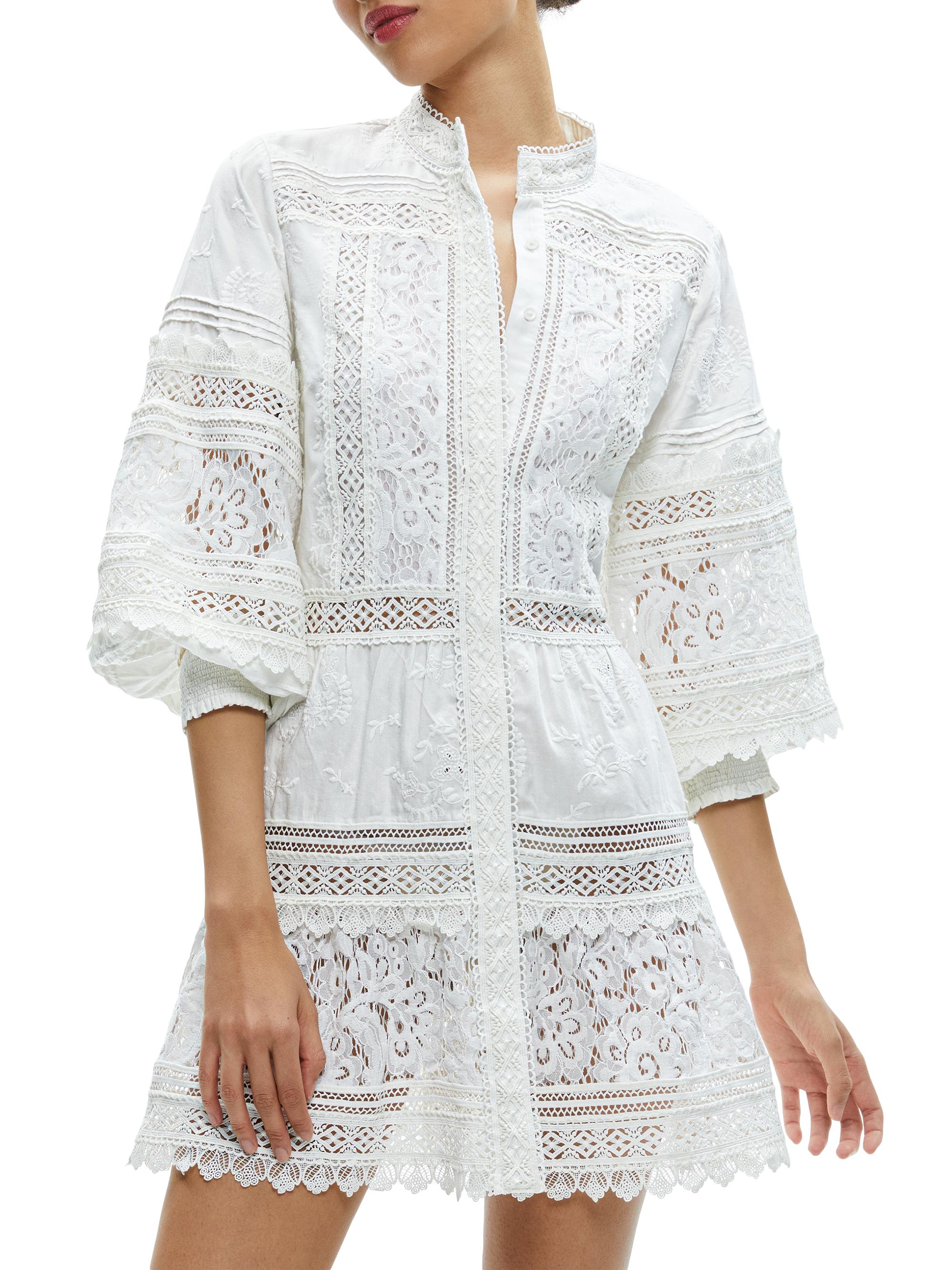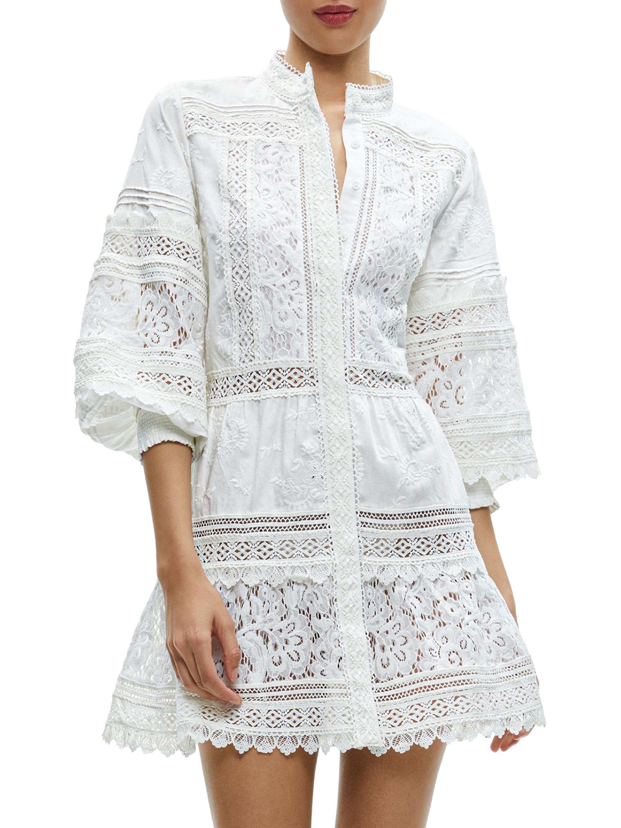 Alice Olivia Cailin Embroidered Minidress OFF WHITE
