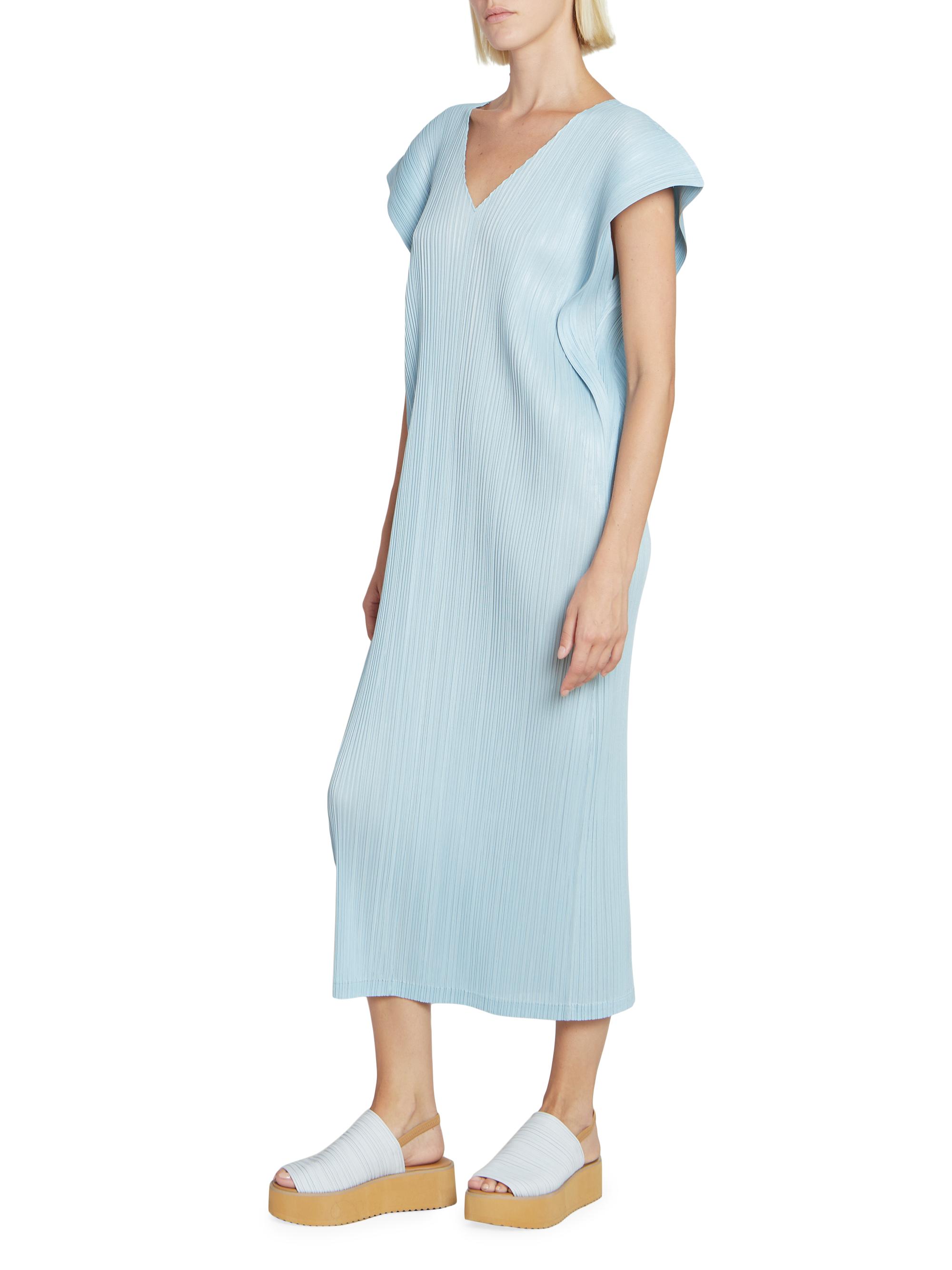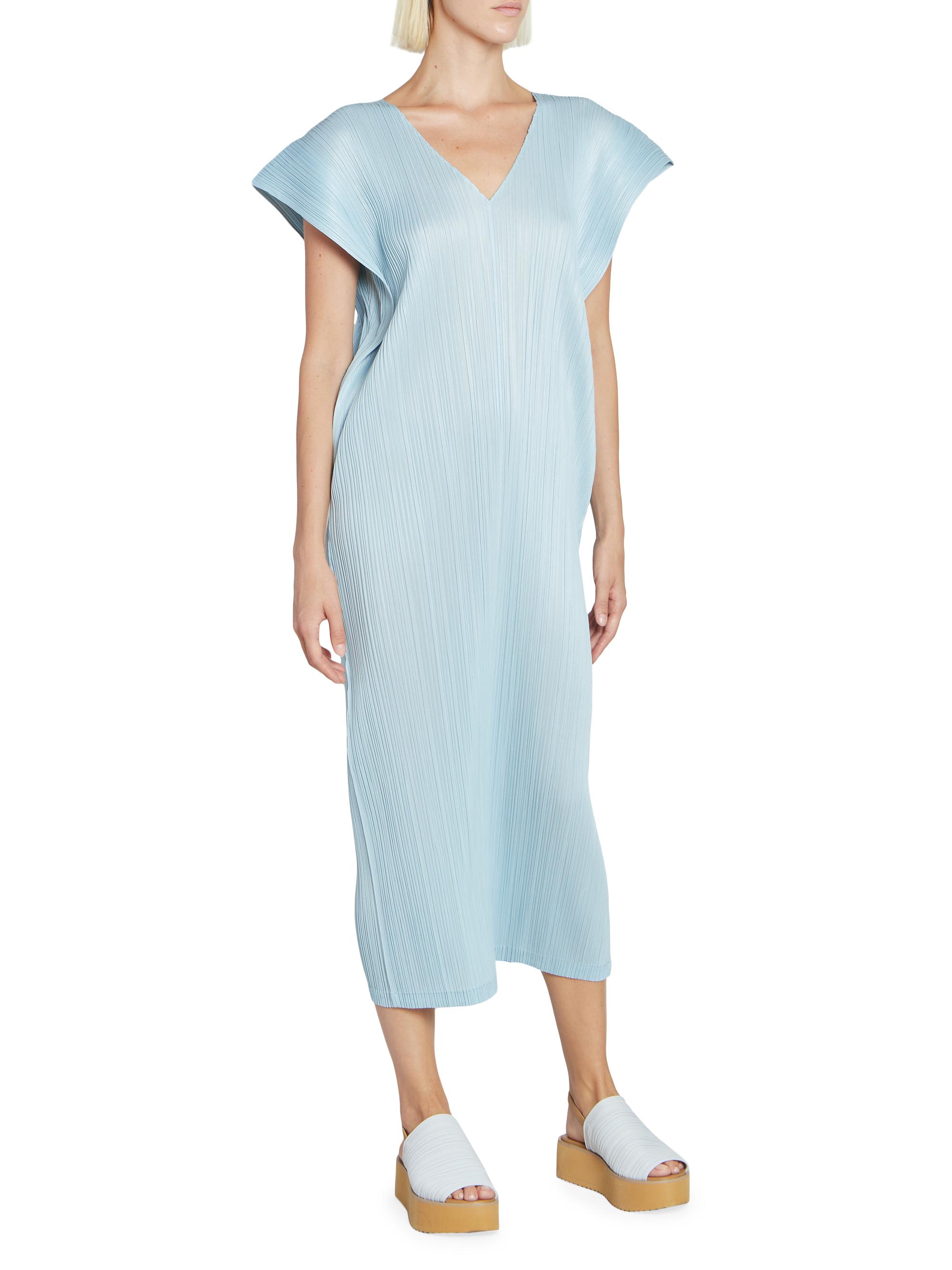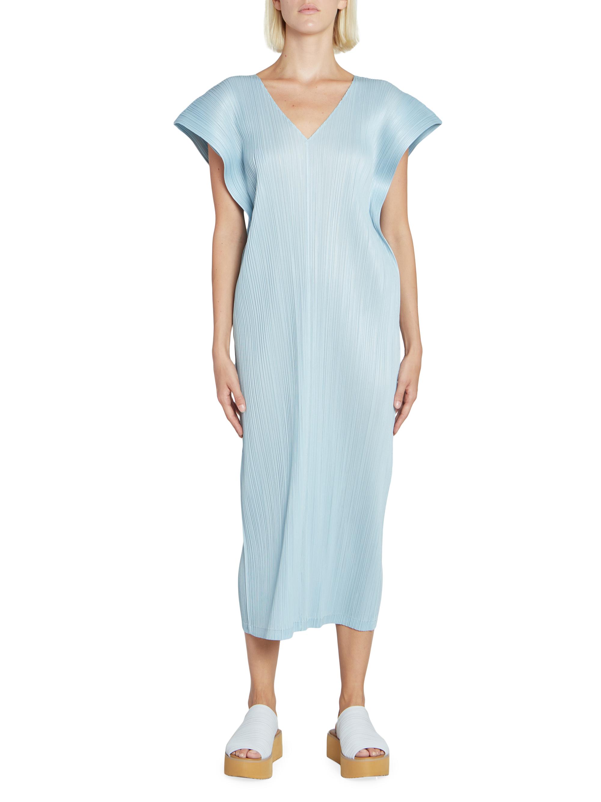 Pleats Please Issey Miyake March Pleated Cap-Sleeve Midi-Dress PALE BLUE