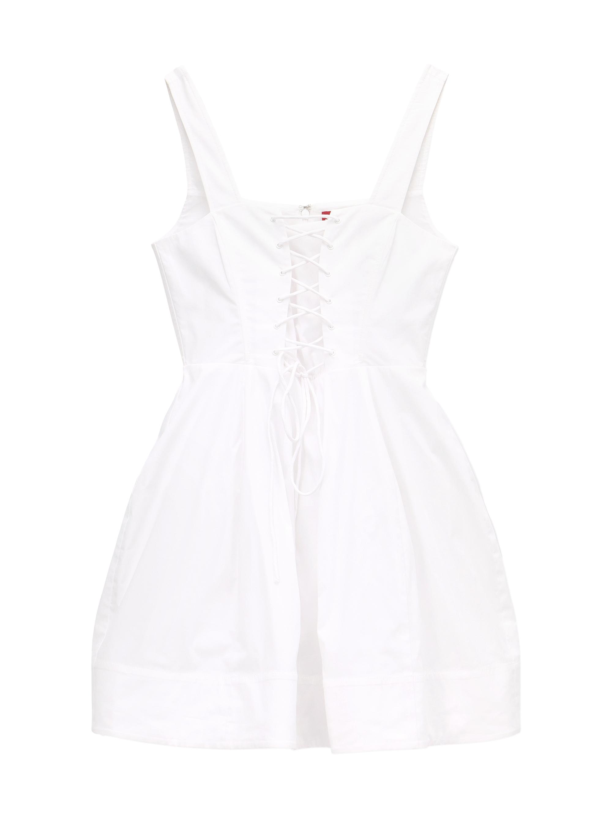 Staud Sutton Lace-Up Minidress WHITE
