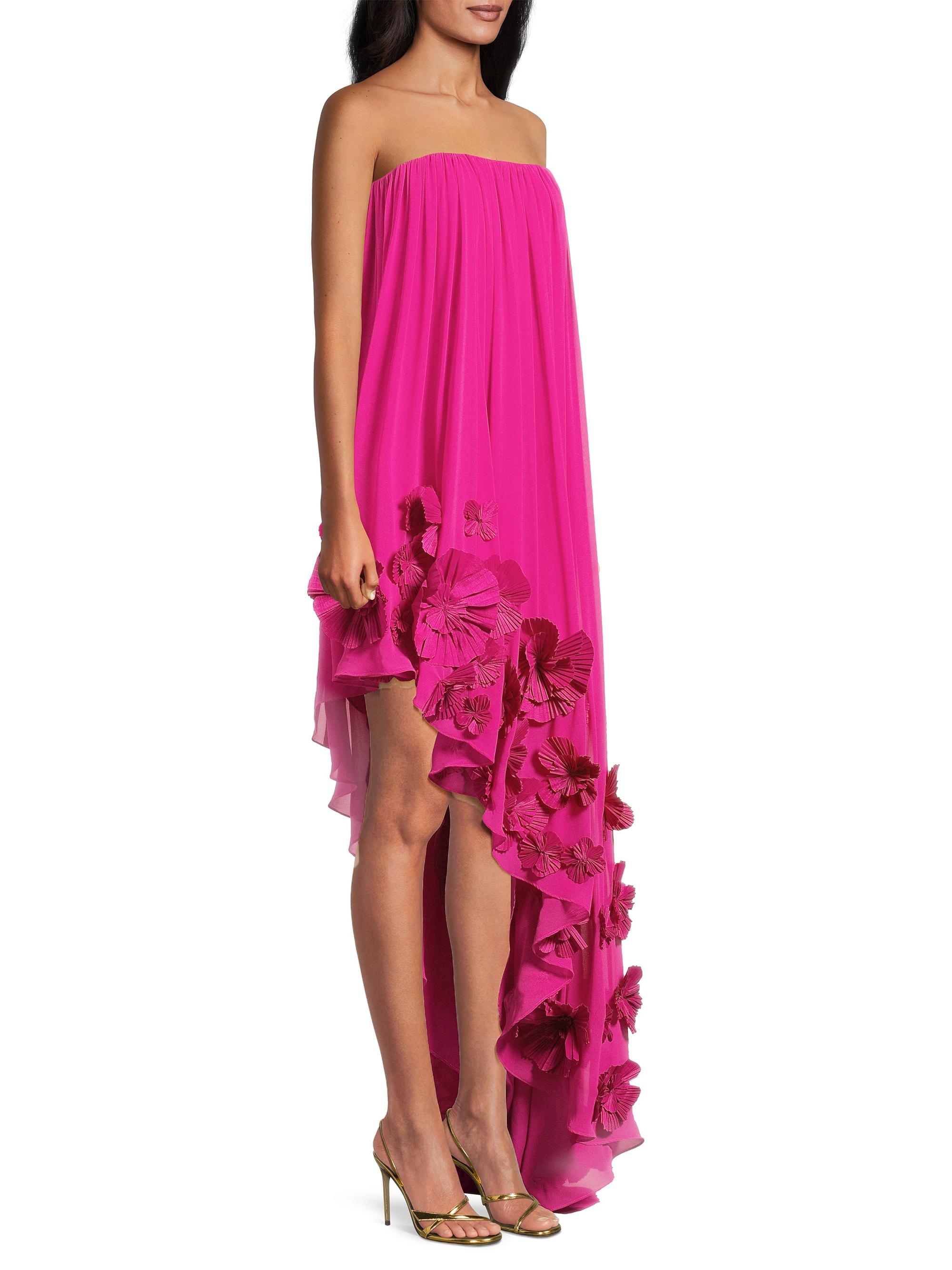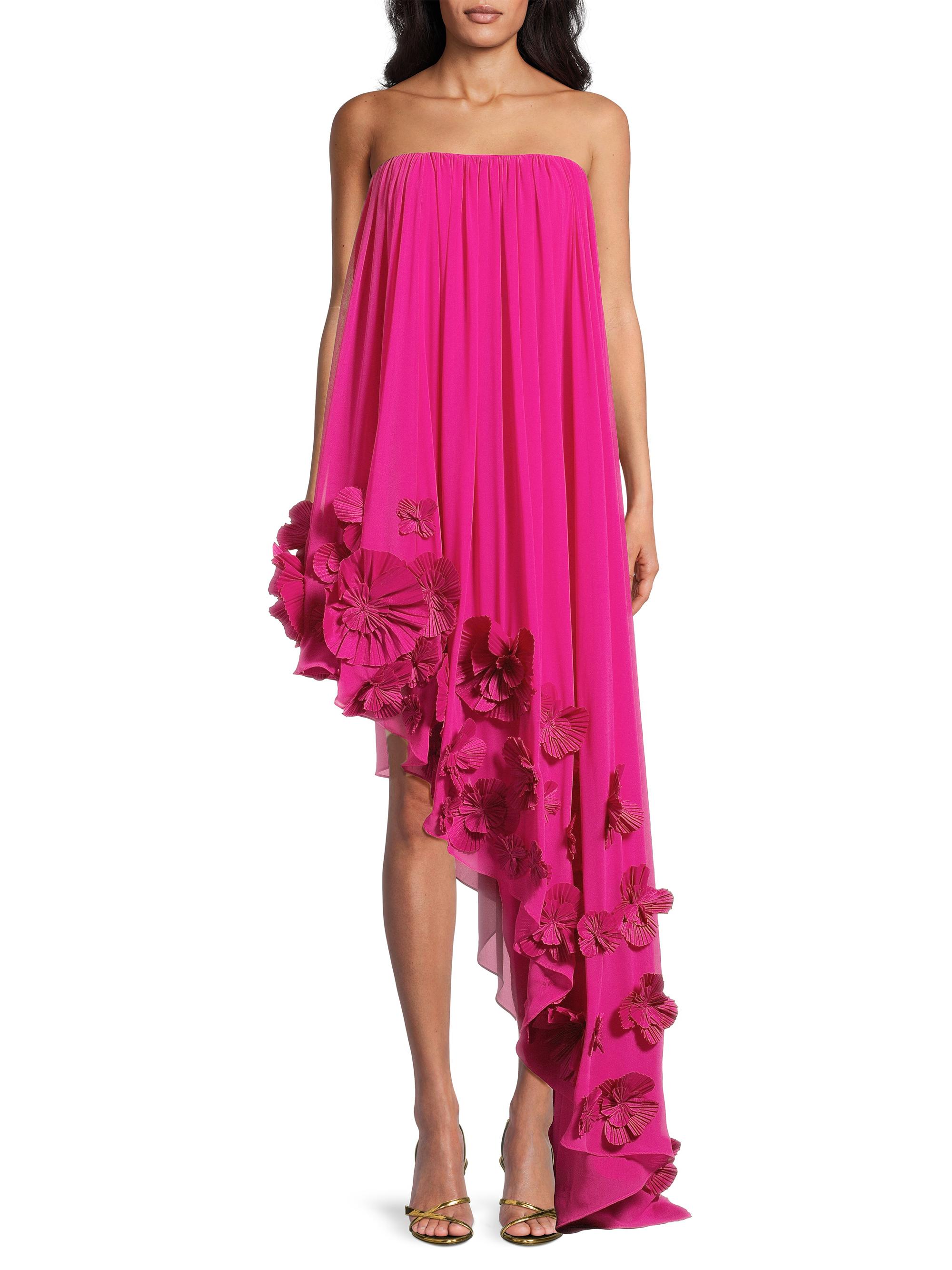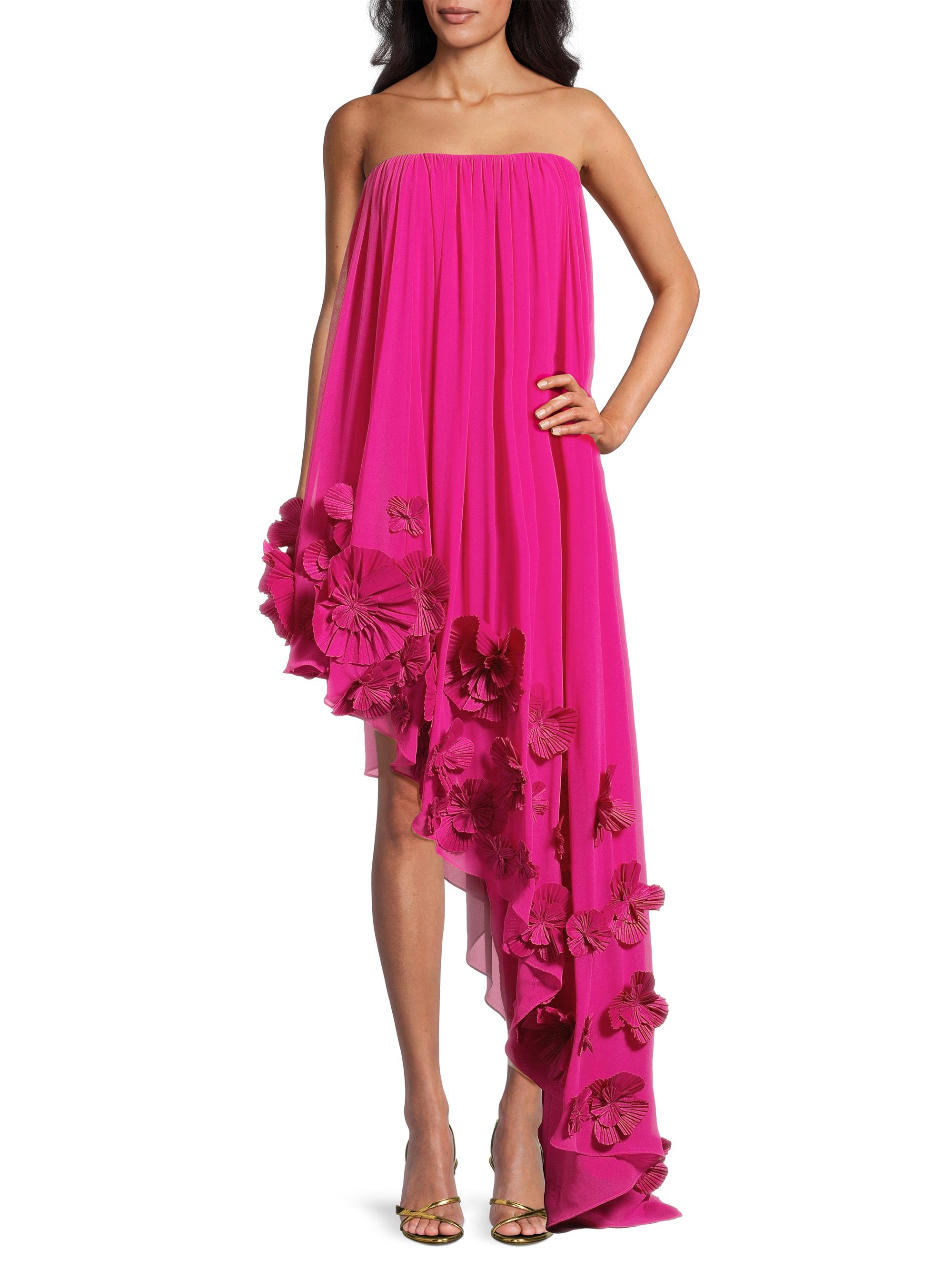 One33 Social Floral Appliqued Asymmetric Chiffon & Taffeta Dress