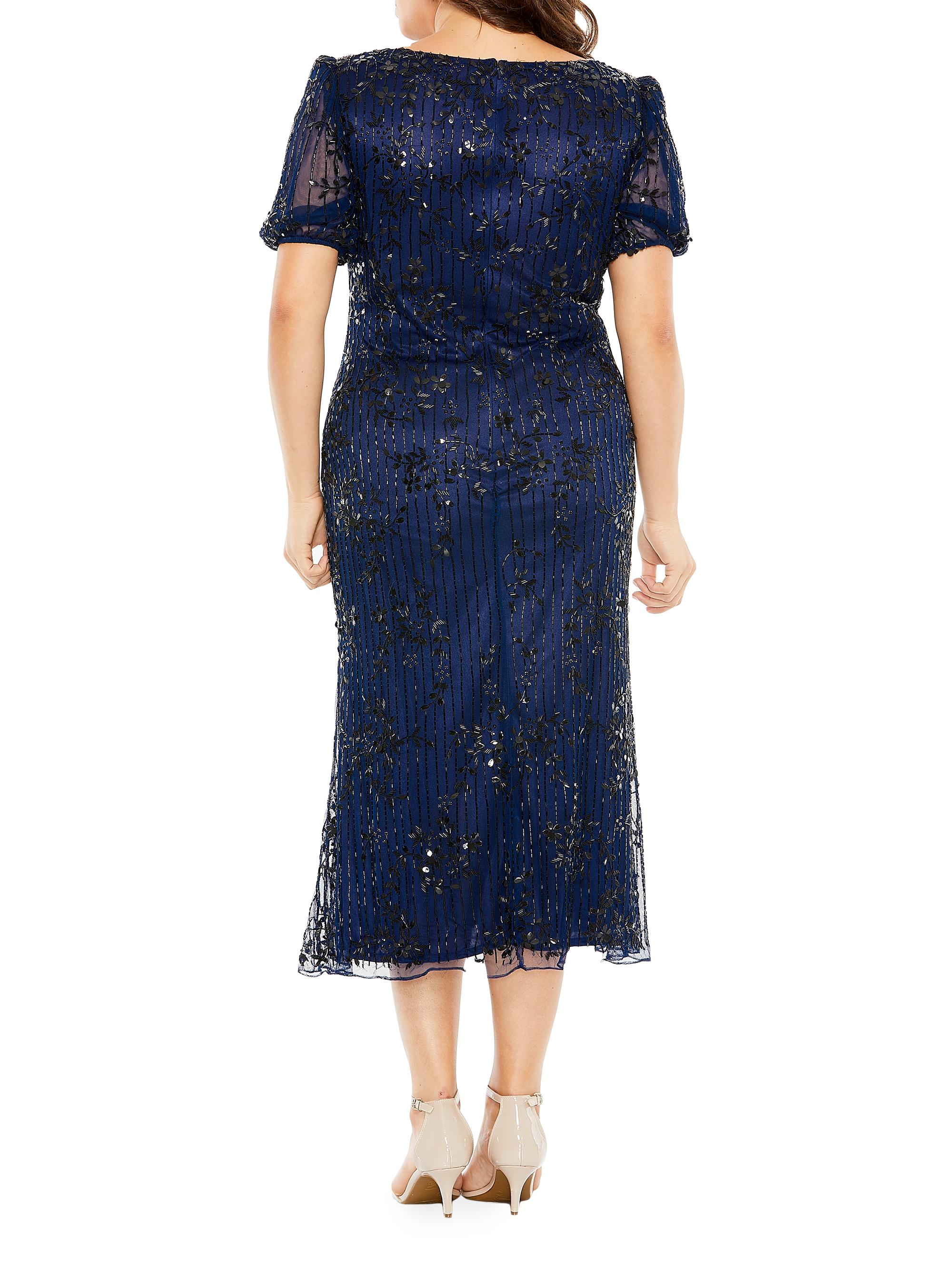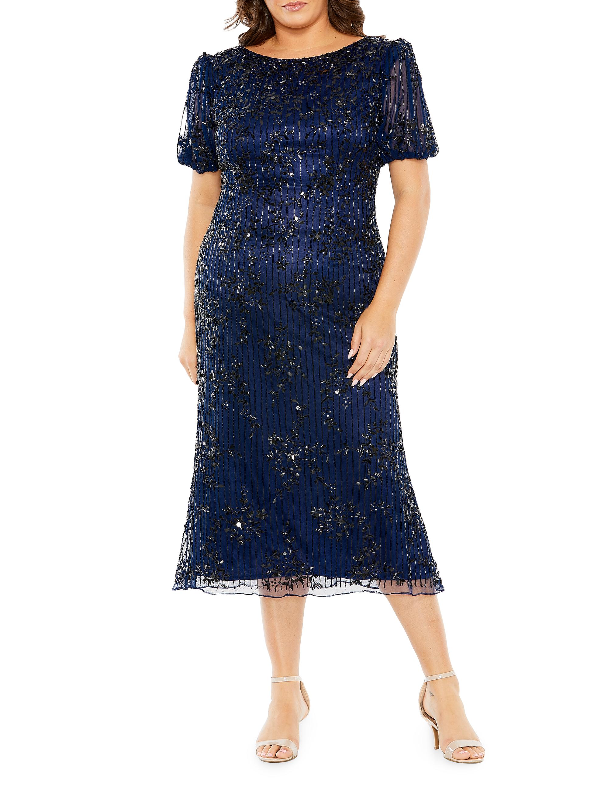 Mac Duggal Embellished Tulle Puff-Sleeve Midi-Dress MIDNIGHT
