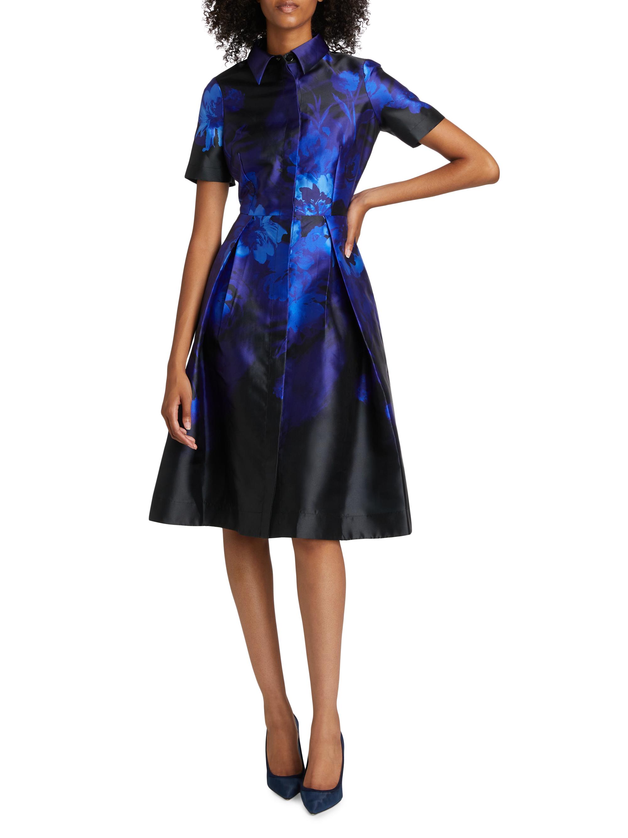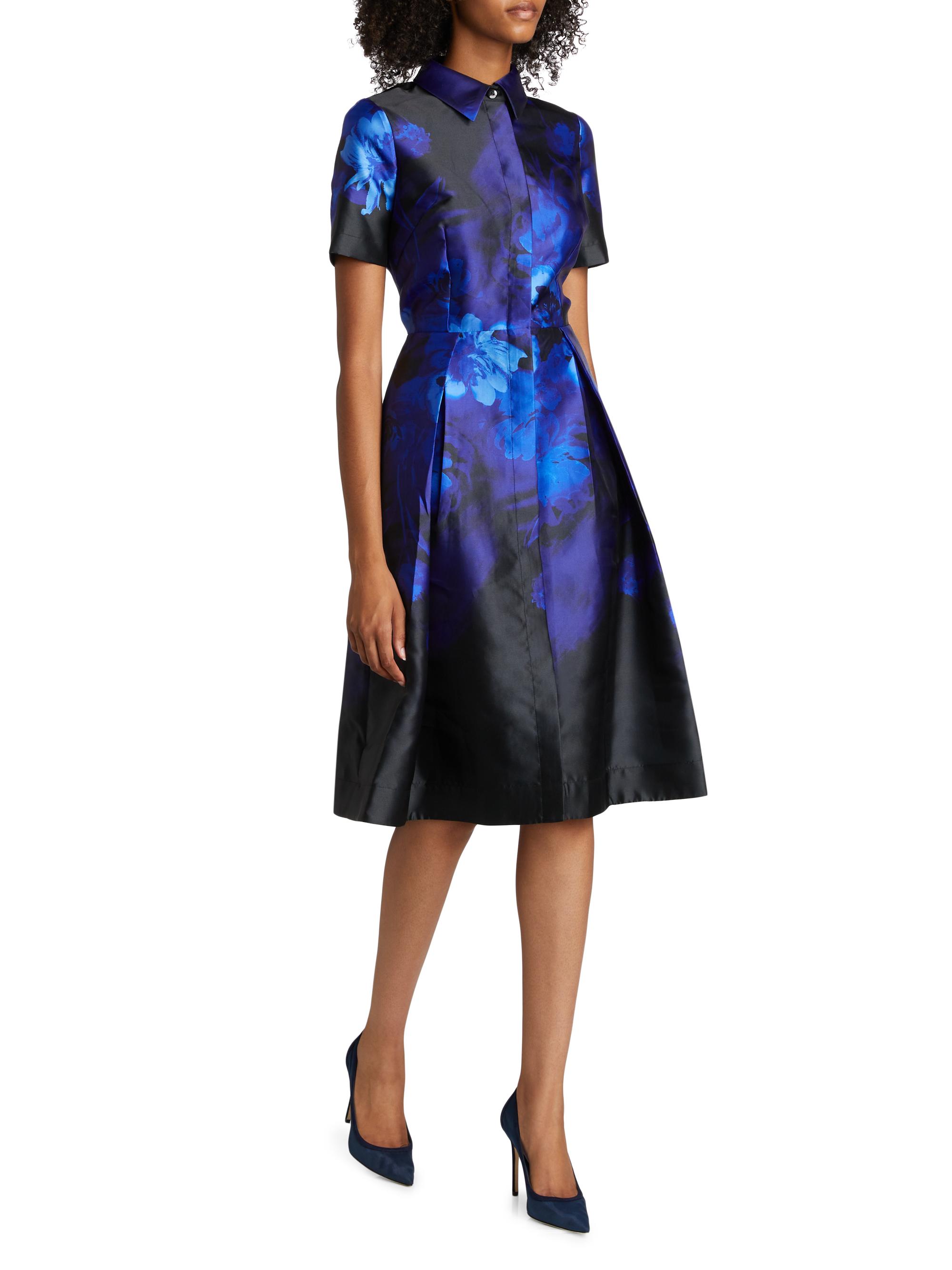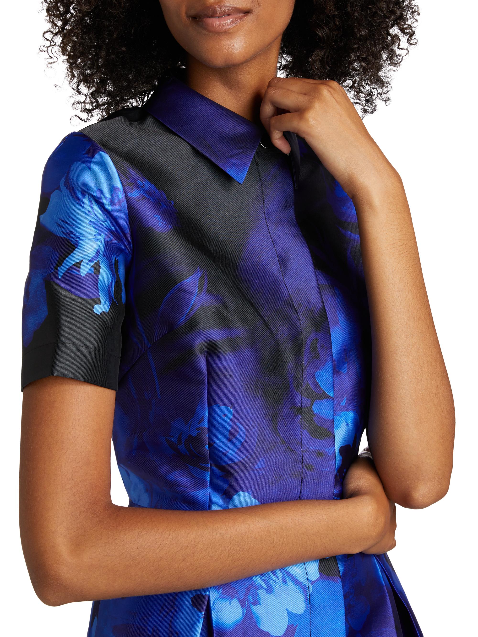 Teri Jon by Rickie Freeman Floral Satin Inverted Pleat Shirtdress