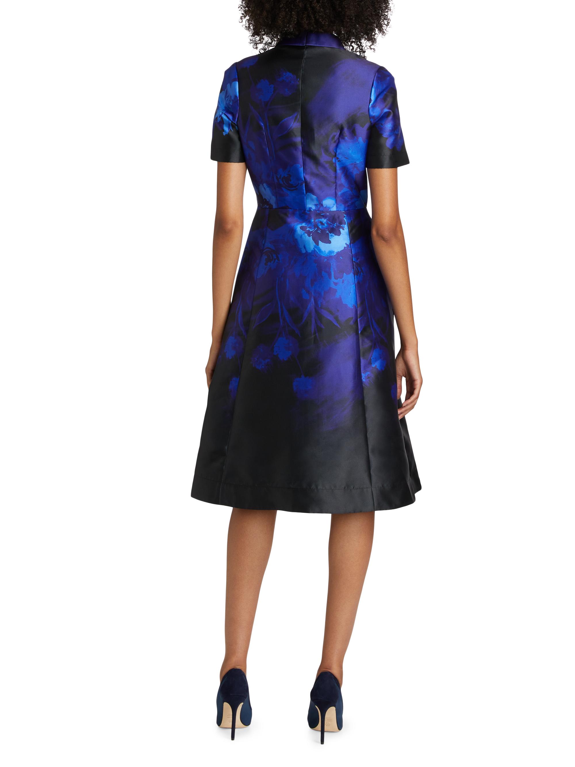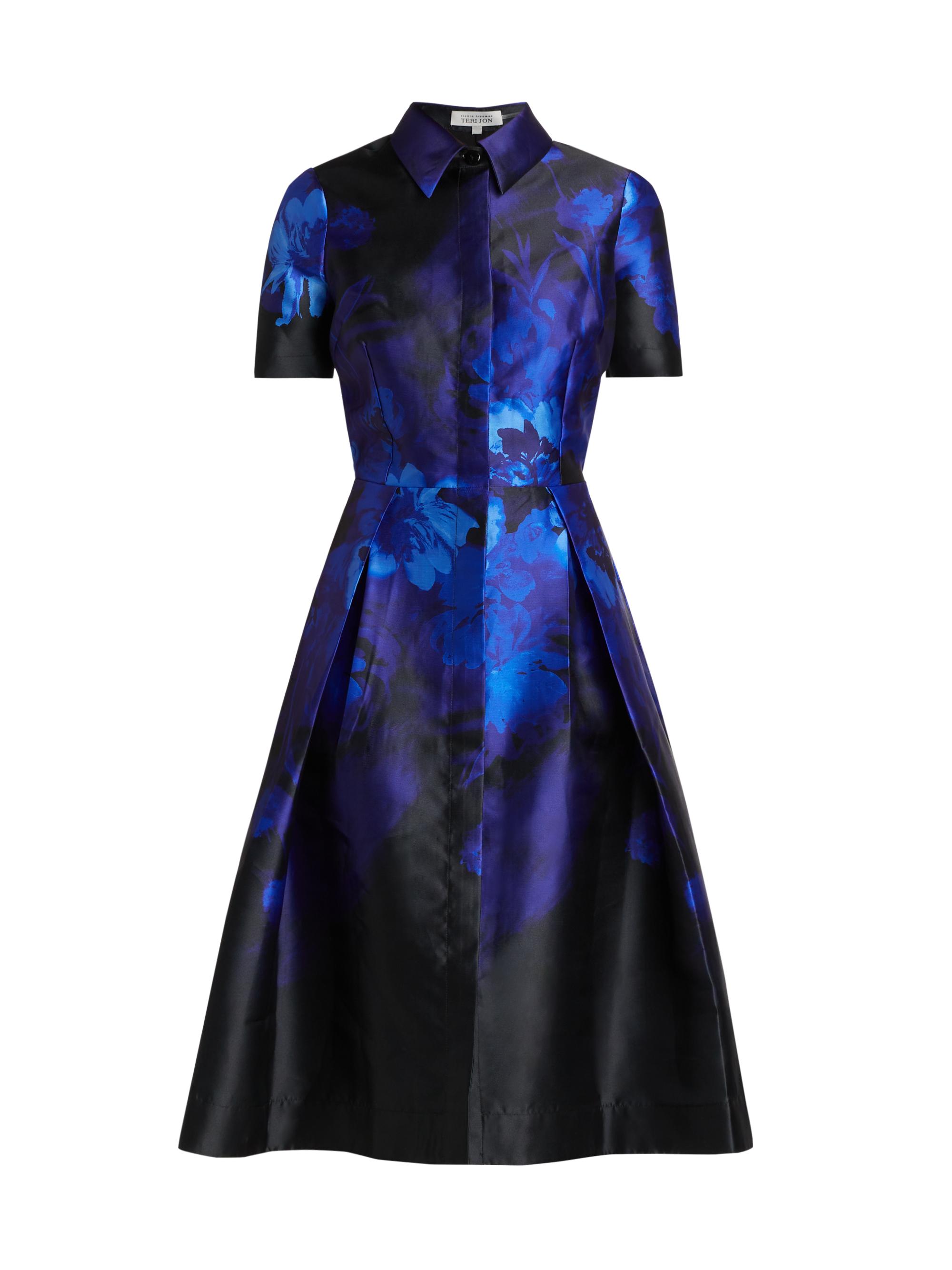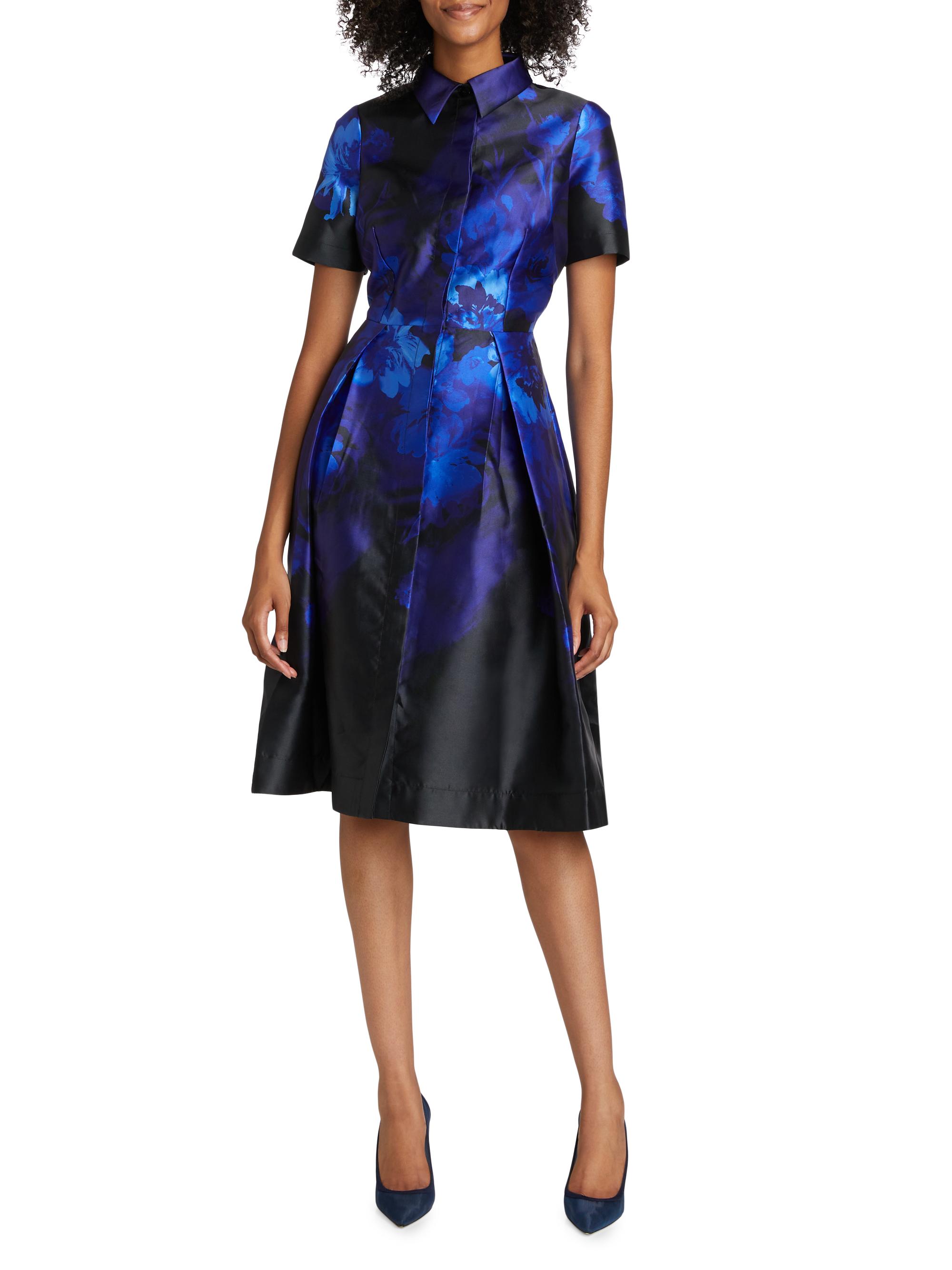 Teri Jon by Rickie Freeman Floral Satin Inverted Pleat Shirtdress