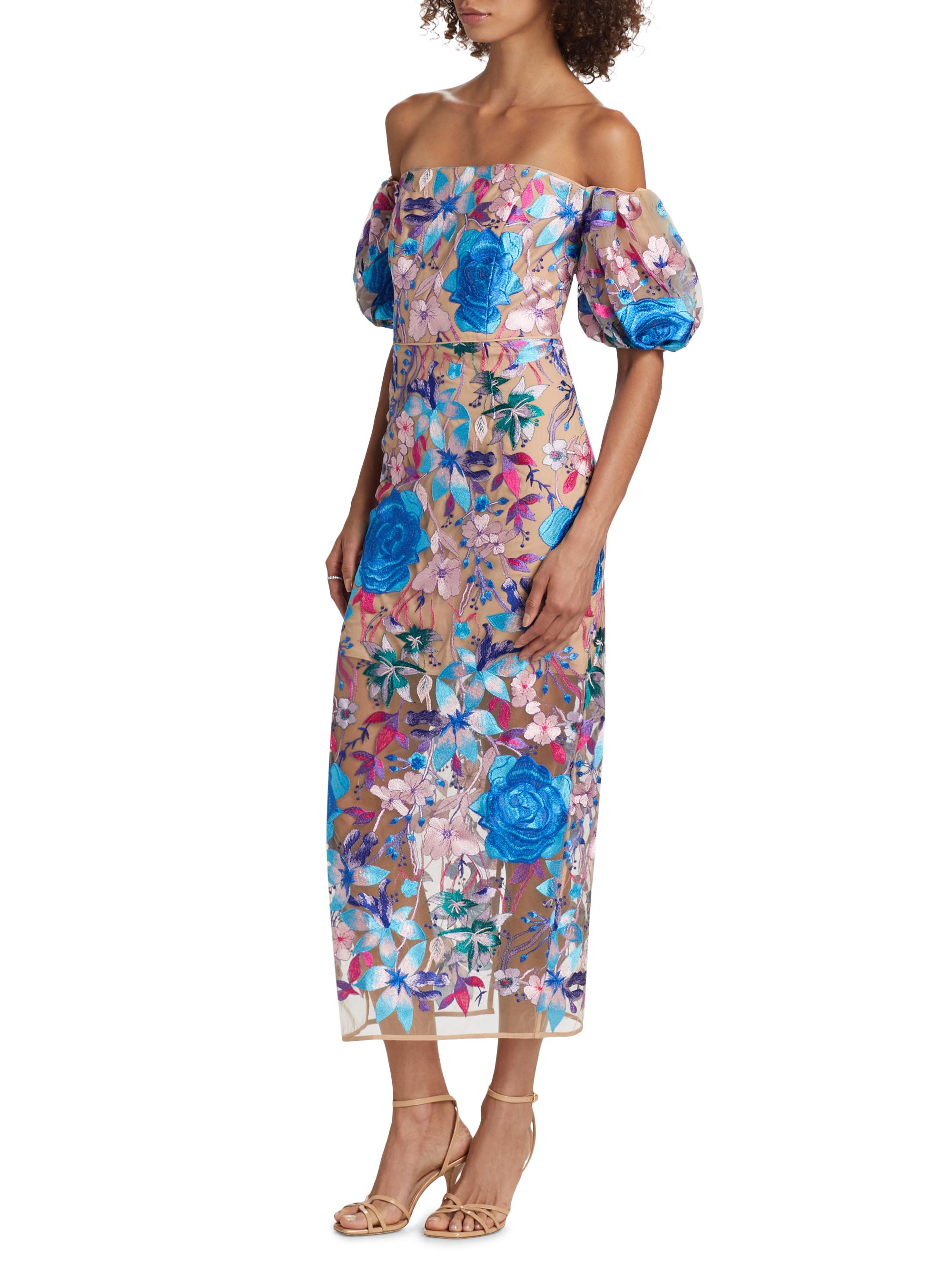 Milly Nira Floral Embroidered Off-the-Shoulder Midi-Dress