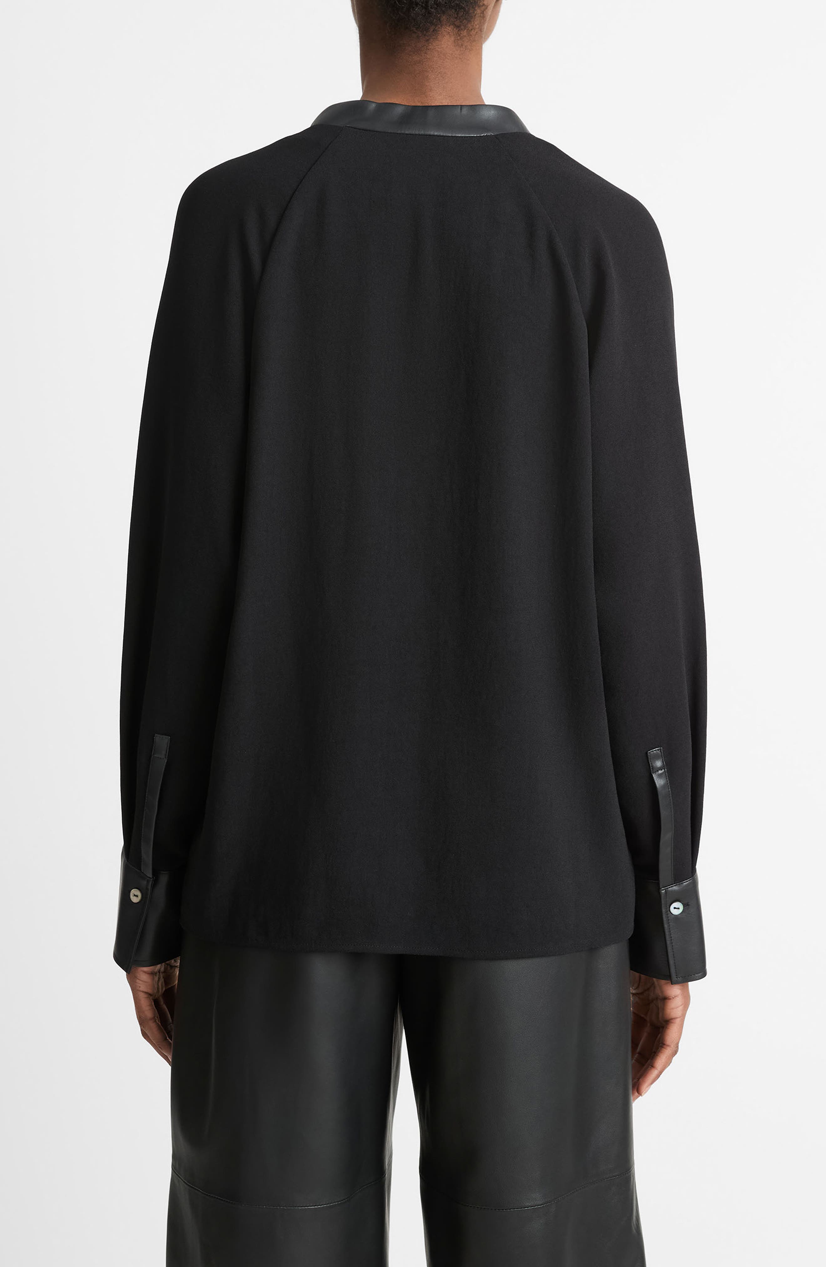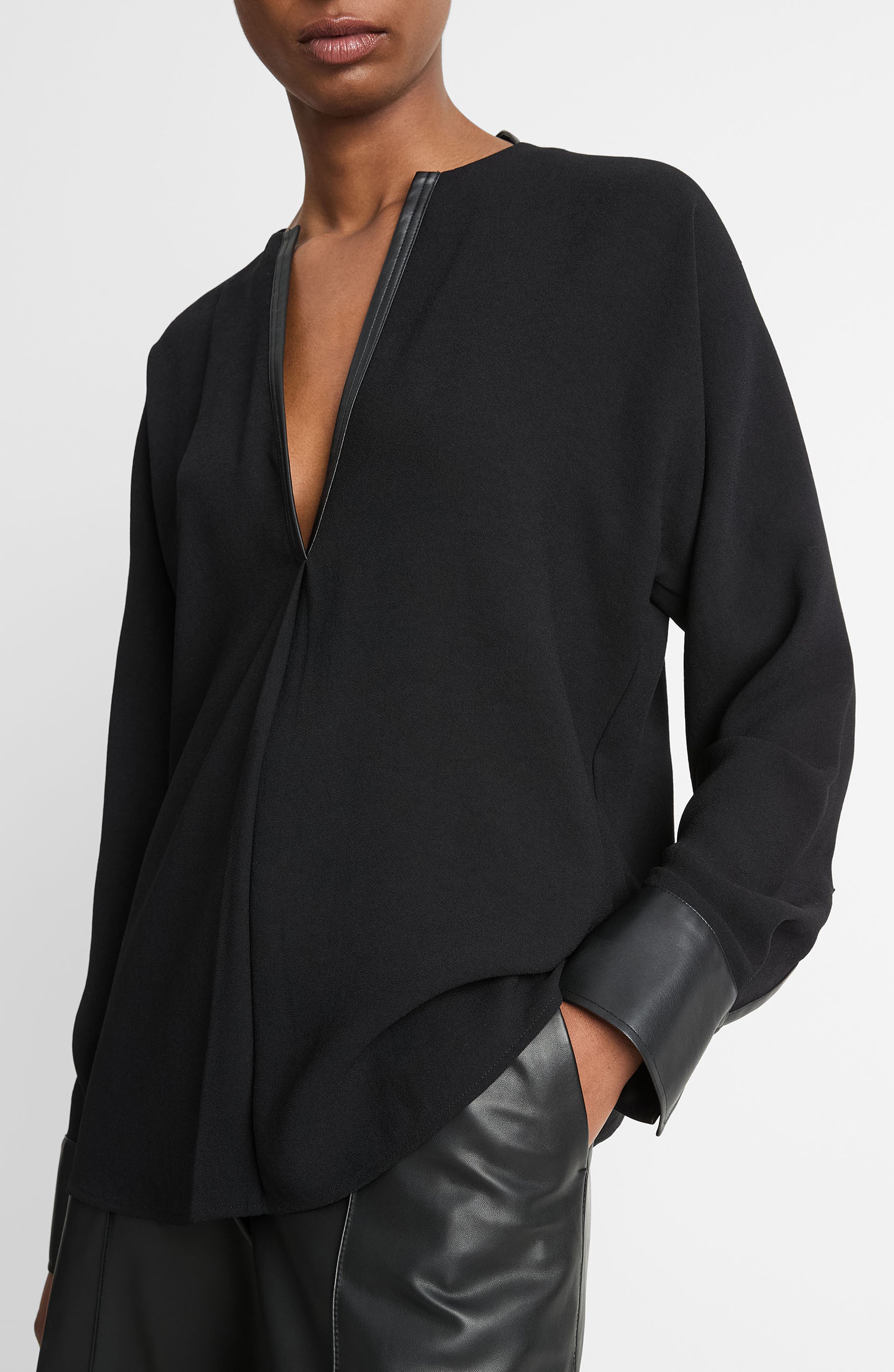 Vince Faux Leather Trim Dolman Sleeve Top_Black