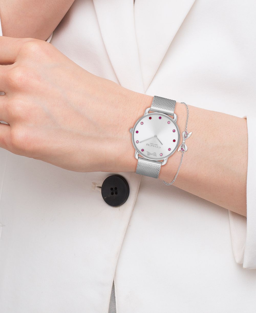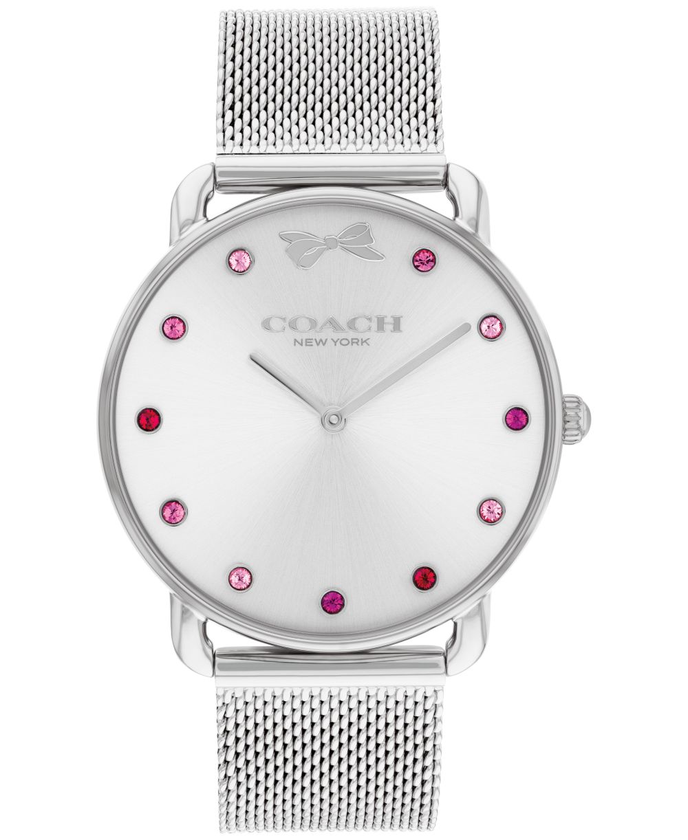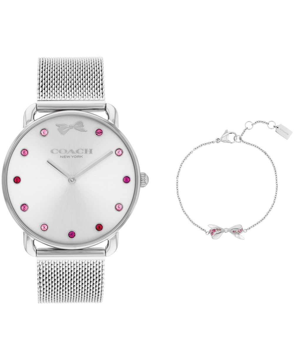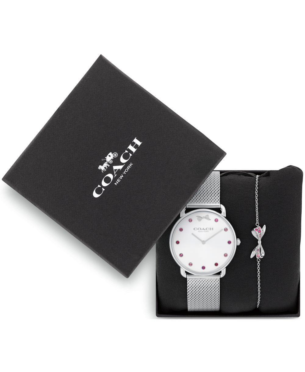 COACH Womens Elliot Silver Tone Stainless Steel Mesh Bracelet Watch 36mm Gift Set
