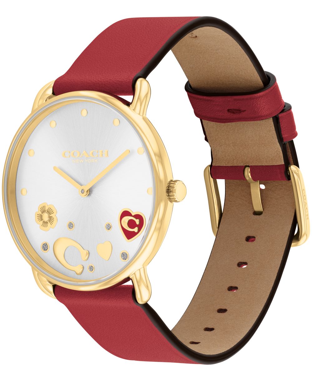COACH Womens Elliot Red Leather Strap Watch 36mm