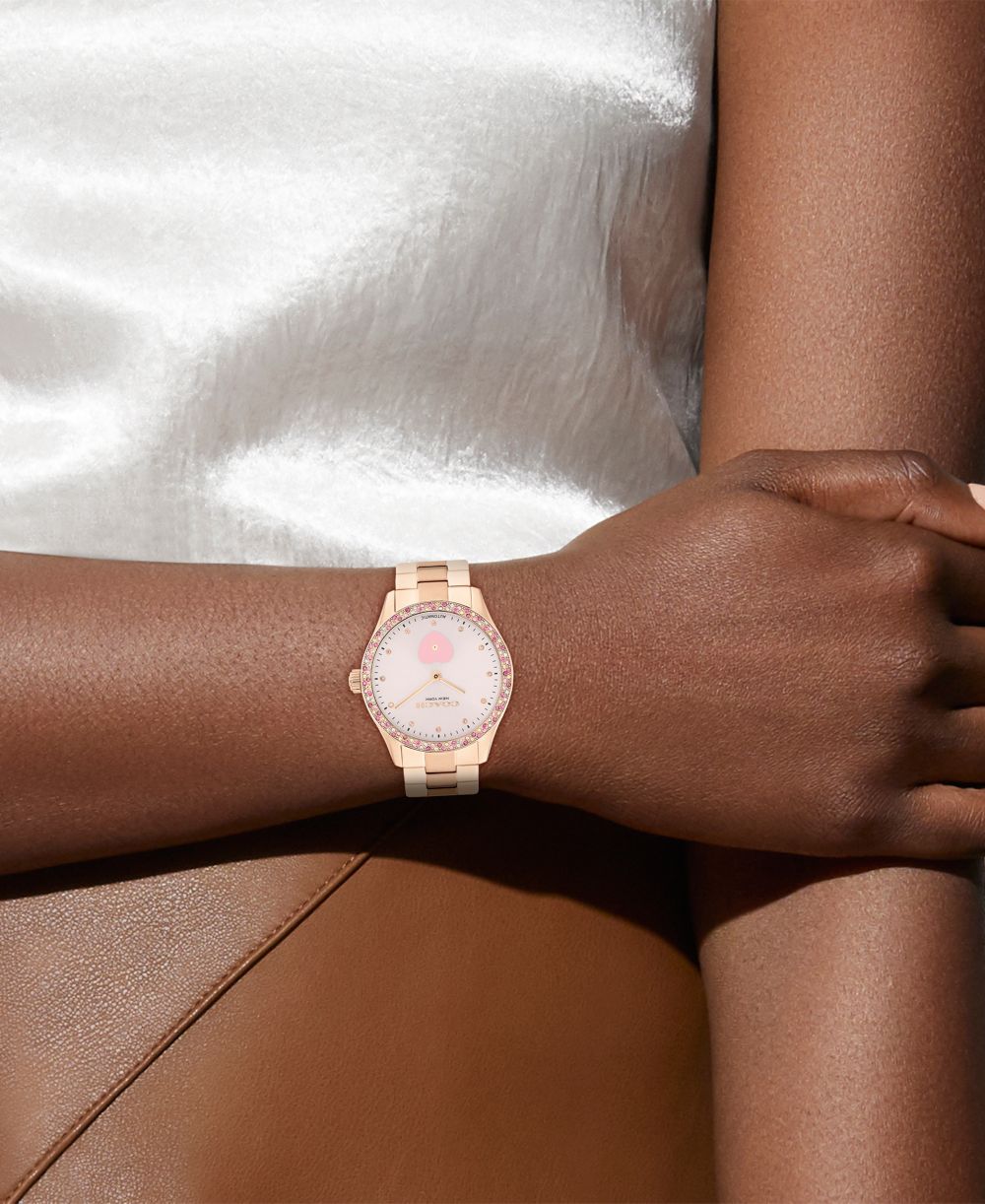 COACH Womens Brooks Automatic Rose Gold Tone Stainless Steel Bracelet Watch 38mm